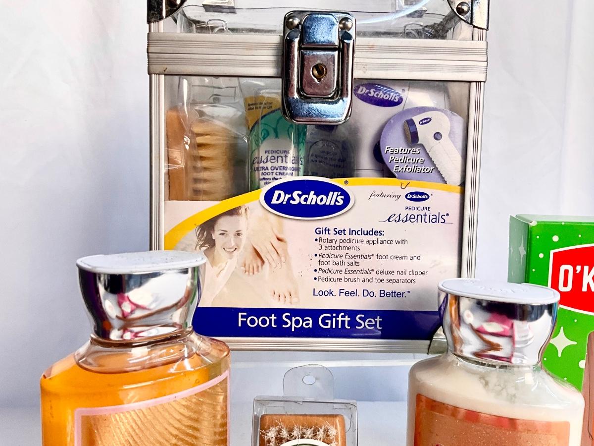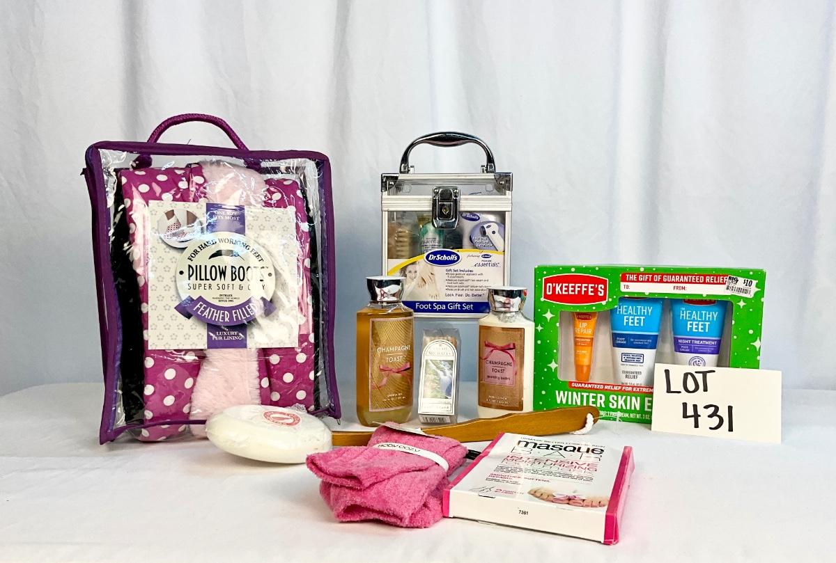 All items in this lot are brand new. There is everything you would need to treat your feet to a spa day. Brands included are Dr.Scholl’s, O’Keefe’s, Bath & Body Works. There are socks, pillow slippers, winter feet repair, foot mask, pedicure kit and lotions.