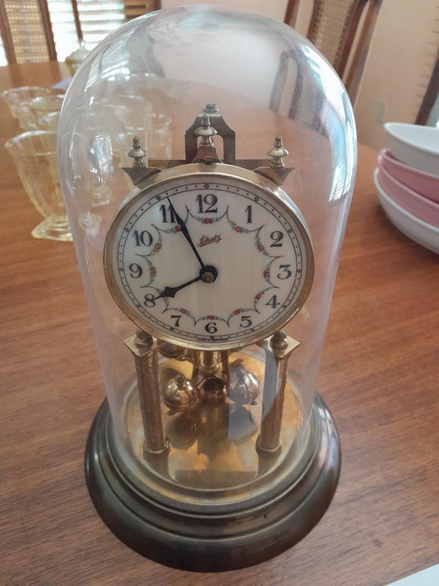 SCHATZ GERMAN BRASS CLOCK WITH GLASS DOME AND TORSIONAL PENDULUM