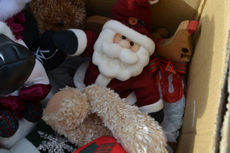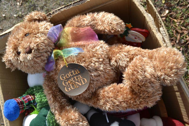 LOT 432 BOX OF HOLIDAY DECOR, CABBAGE PATCH DOLL AND GUND BEAR