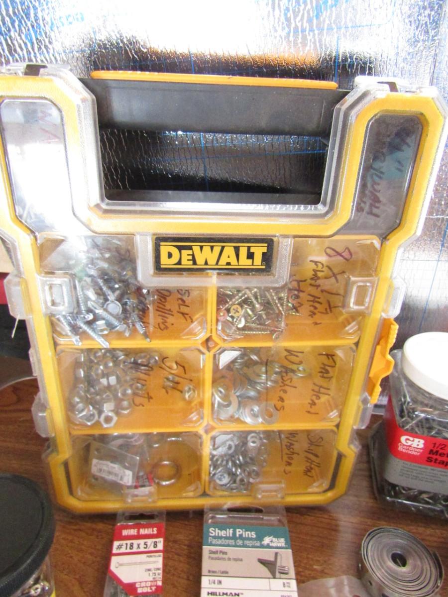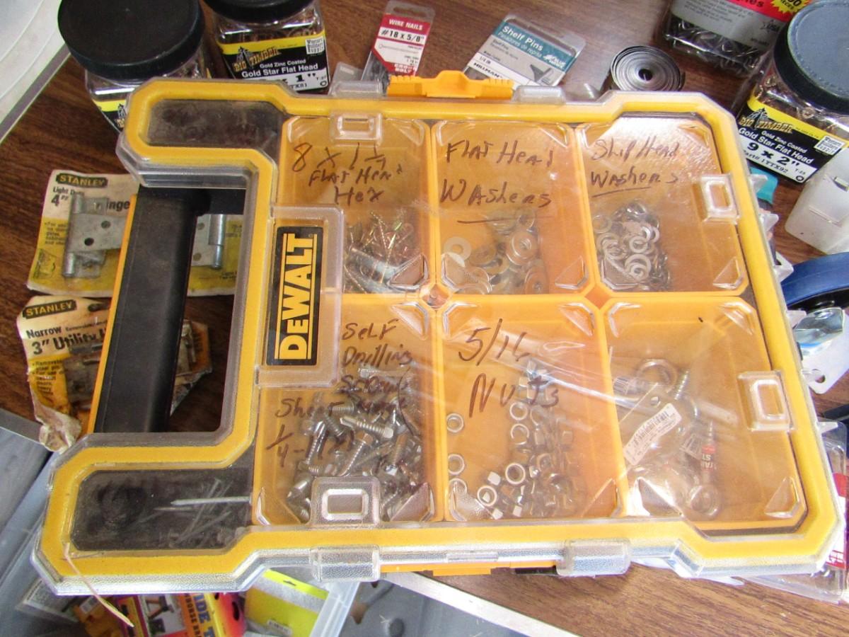 DEWALT HARDWARE ORGANIZER AND VARIETY OF HARDWARE