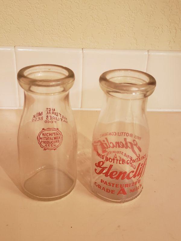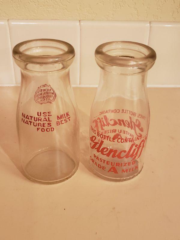 Lot 433: (2) Small Milk Bottles with Red Graphics
