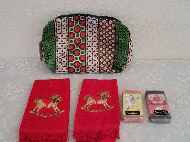 Lot 433: New Holiday Make Up Bag, Handtowels and Kleenex