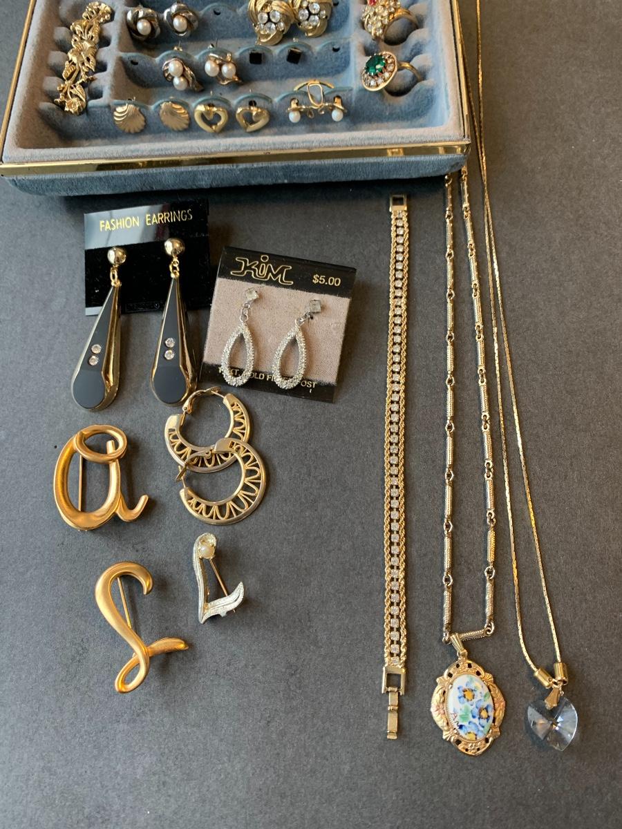 Rings, Pins, Earrings, Necklaces & bracelet make up this wearable jewelry lot.