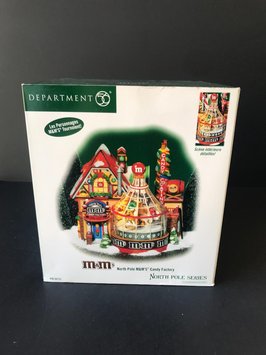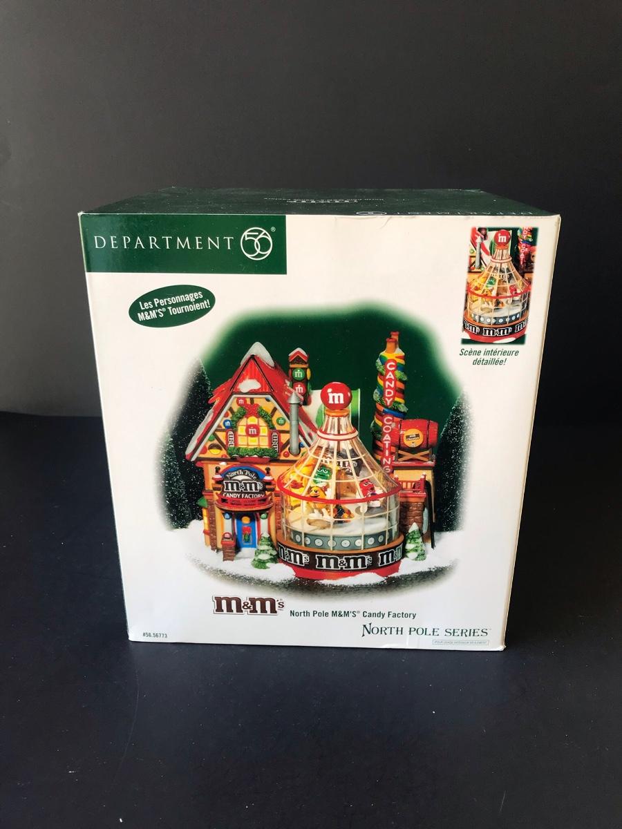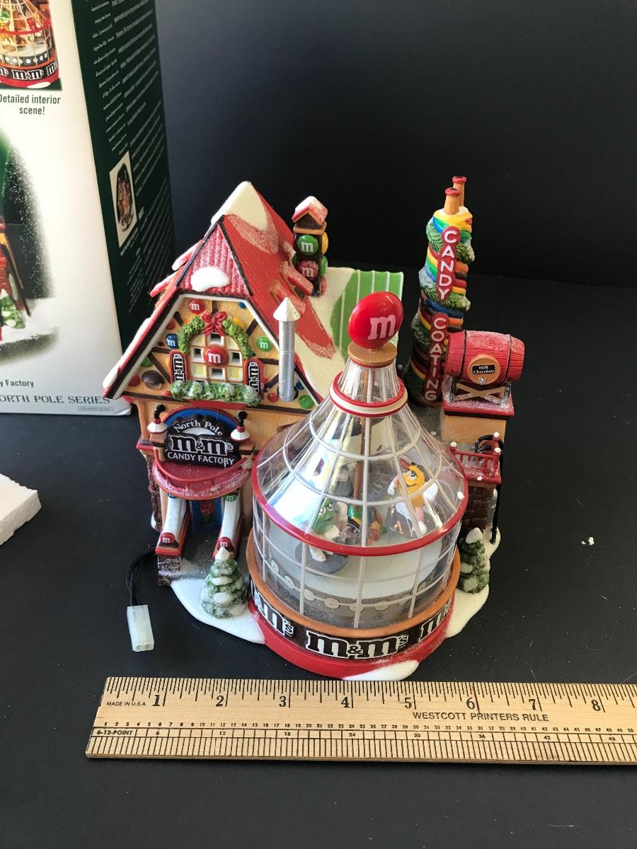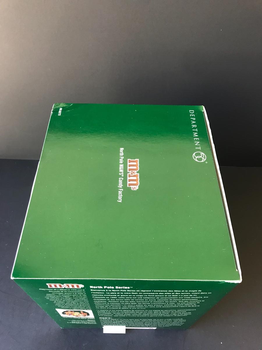 North Pole M&Ms Candy Factory - Department 56 - Christmas Decoration. All Holiday items in this auction are as-seen. The client collected a lot of holiday pieces and some are new in box, some were displayed once and come with original box, and some have been displayed and come with no box. They are all pre-owned in some fashion and have been stored in an attic or on shelf in library. Please see all pictures. The pictures show condition, measurements if taken, and what is included in the lot. Due to the large amount that we photograph and the time frame, we are not always able to take measurements. All items unless noted, are pre-owned and have been used. Thank you