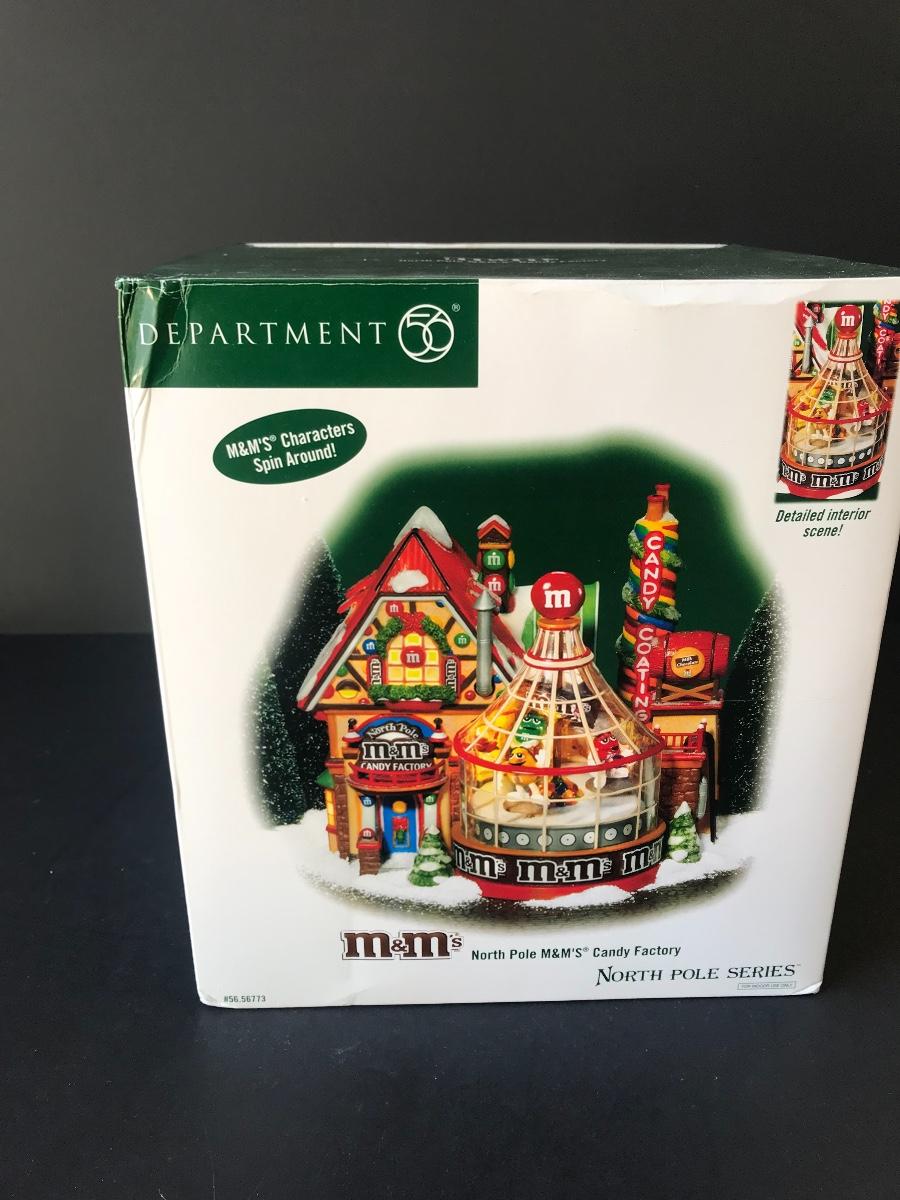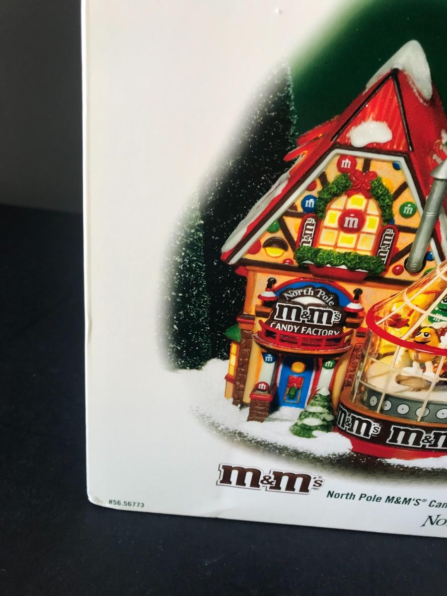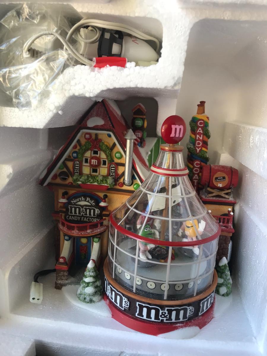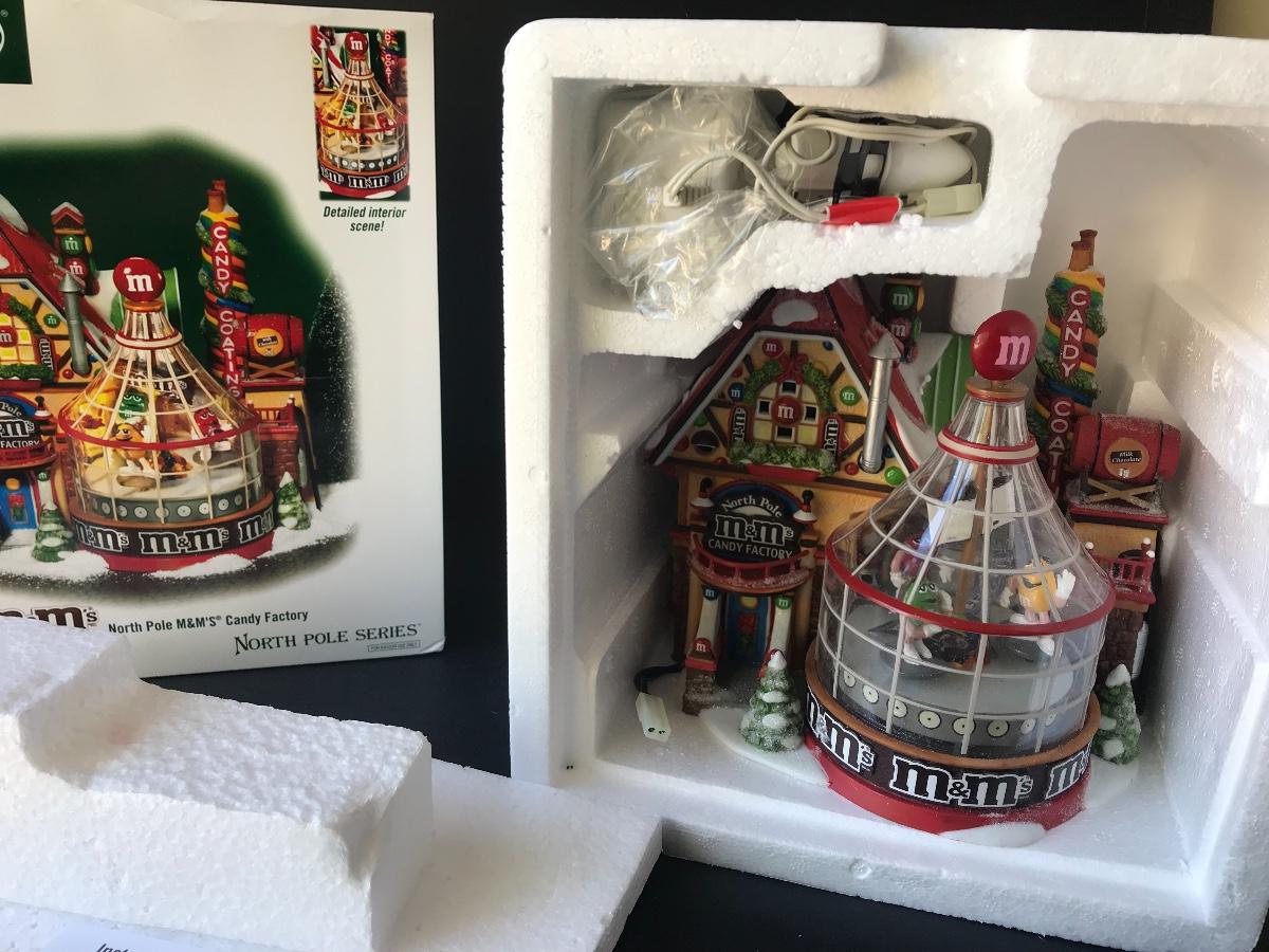 North Pole M&Ms Candy Factory - Department 56 - Christmas Decoration. All Holiday items in this auction are as-seen. The client collected a lot of holiday pieces and some are new in box, some were displayed once and come with original box, and some have been displayed and come with no box. They are all pre-owned in some fashion and have been stored in an attic or on shelf in library. Please see all pictures. The pictures show condition, measurements if taken, and what is included in the lot. Due to the large amount that we photograph and the time frame, we are not always able to take measurements. All items unless noted, are pre-owned and have been used. Thank you