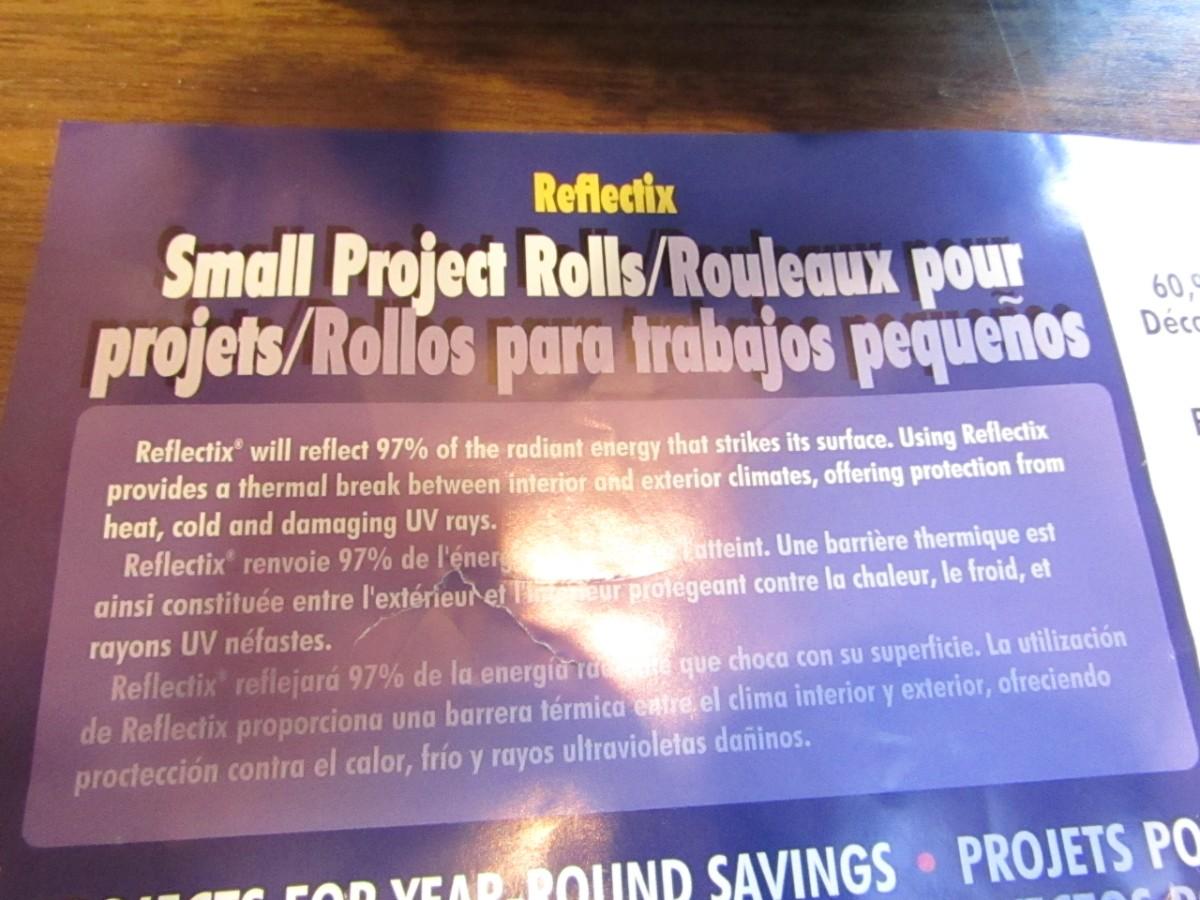 ROLL OF REFLECTIX (REFLECTS 97% OF THE RADIANT ENERGY THAT STRIKES ITS SURFACE)