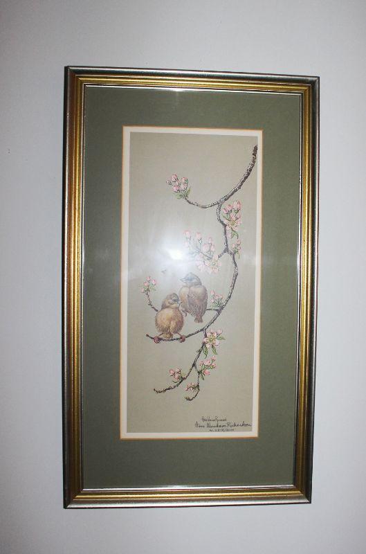 2 Brown Birds in excellent condition. No fading Double signed and numbered 2814/3000 16" x 7" framed to 27" x 14"