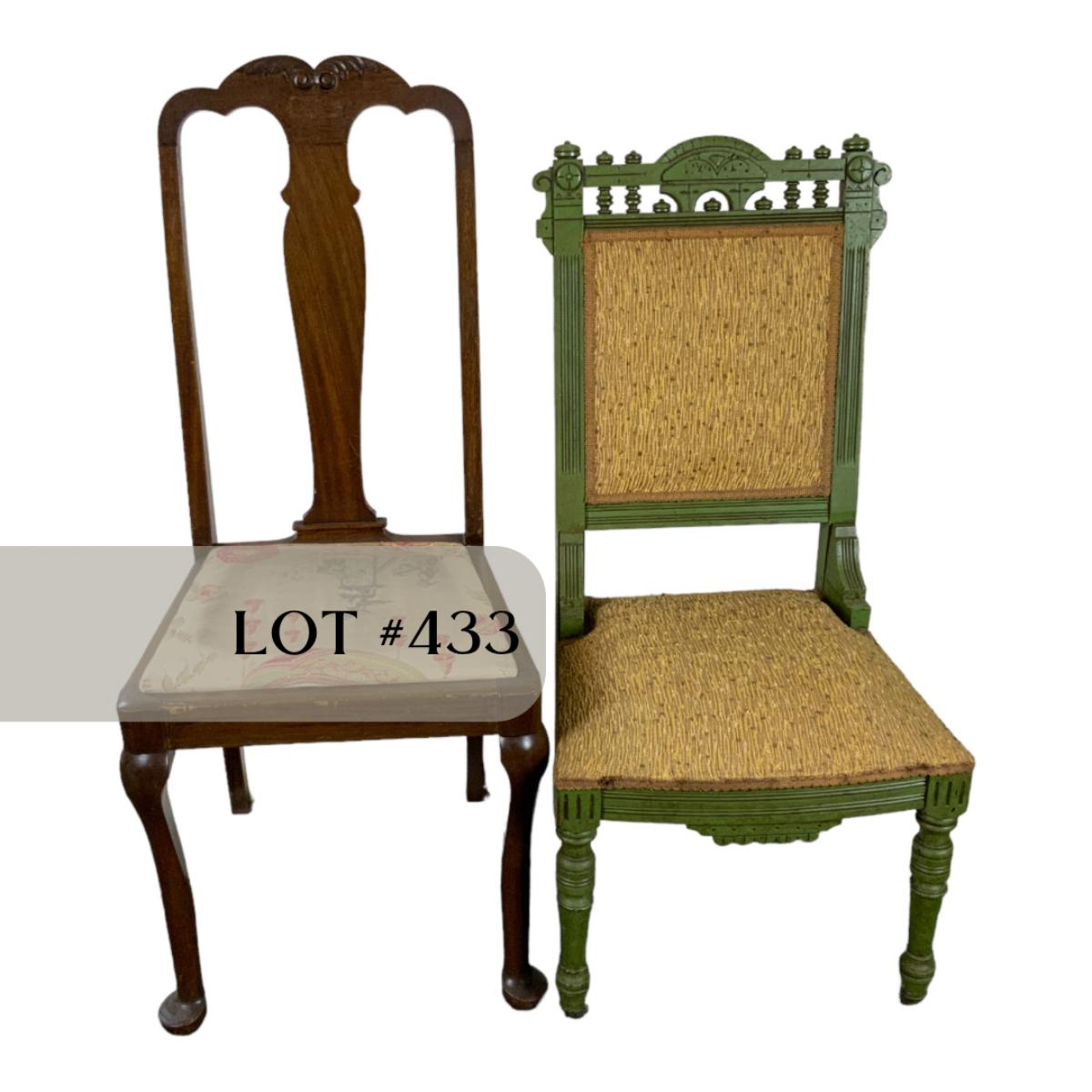 Lot 433 | Mis-Matched Chair Set | Green Parlor Chair