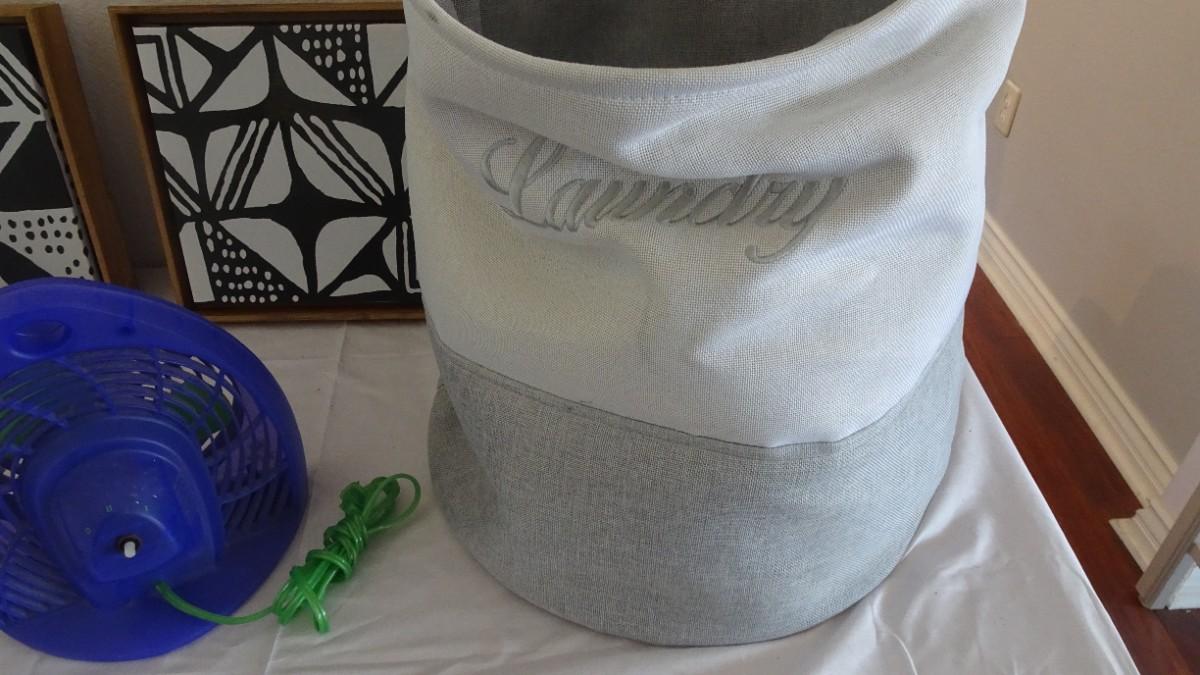LOT 434 HOME DECOR LUNDRY HAMPER AND FAN