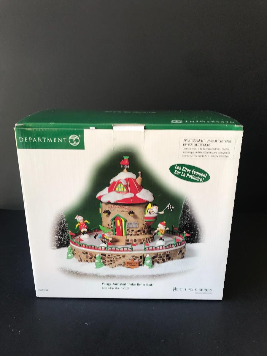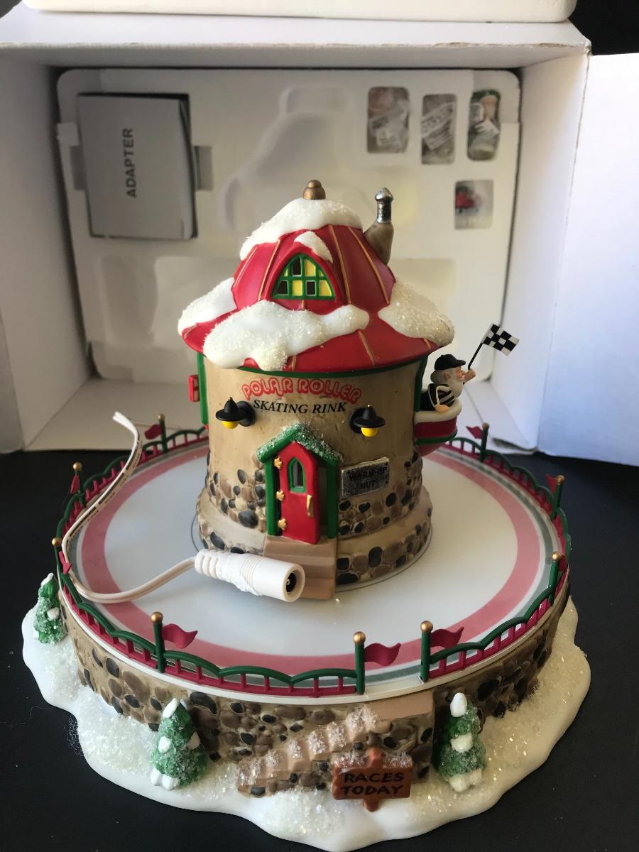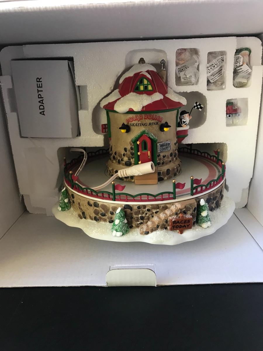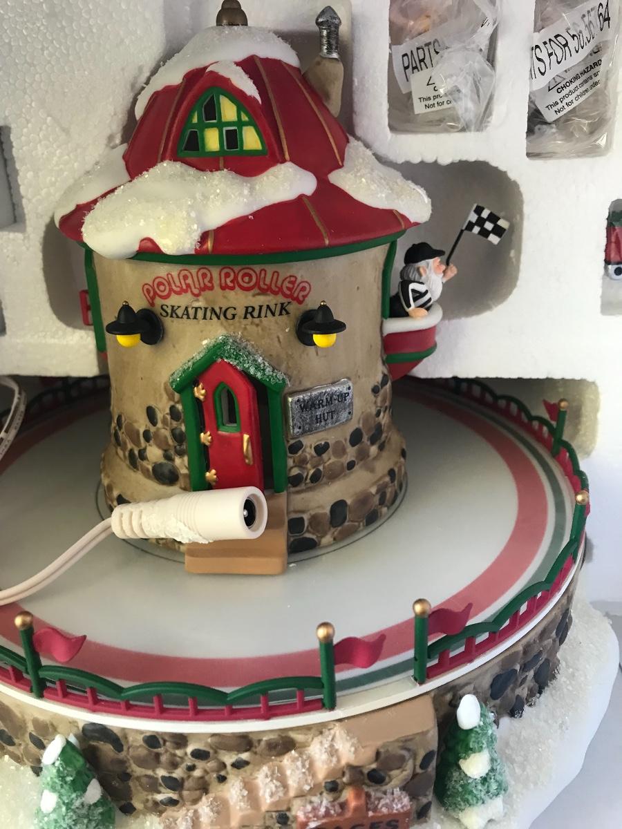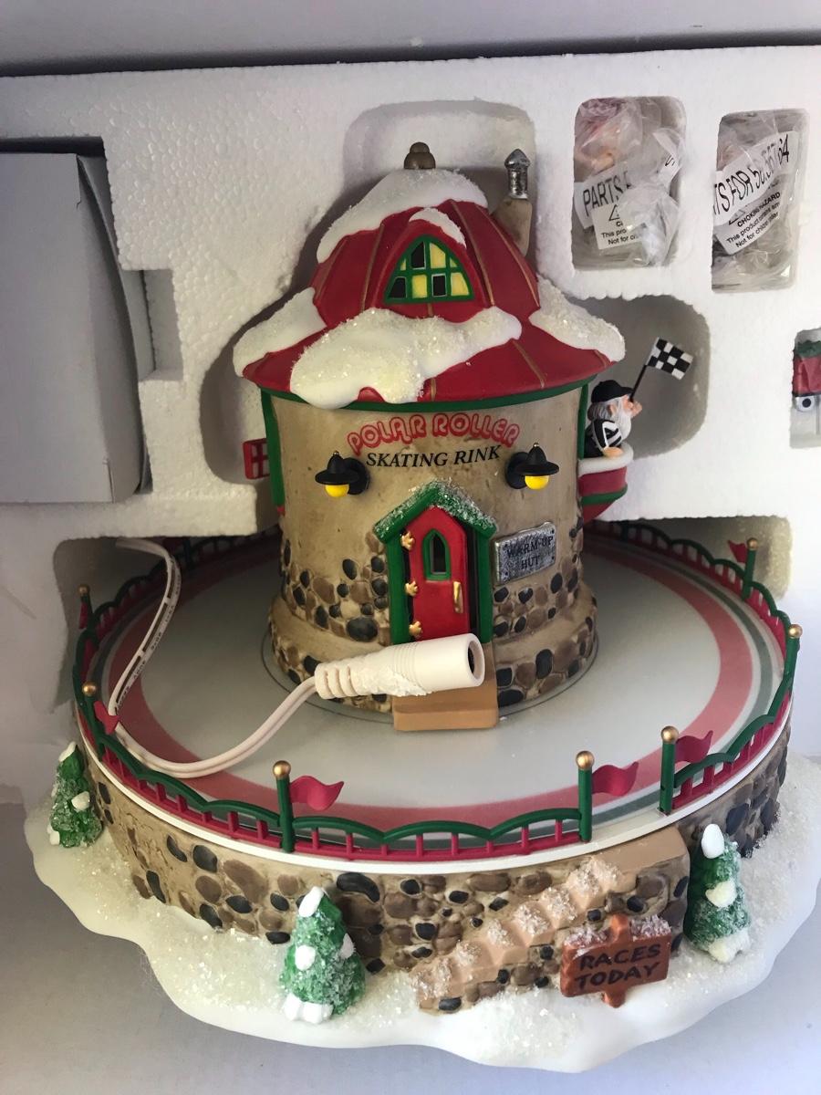 Polar Roller Rink - Department 56 - Christmas Decoration. All Holiday items in this auction are as-seen. The client collected a lot of holiday pieces and some are new in box, some were displayed once and come with original box, and some have been displayed and come with no box. They are all pre-owned in some fashion and have been stored in an attic or on shelf in library. Please see all pictures. The pictures show condition, measurements if taken, and what is included in the lot. Due to the large amount that we photograph and the time frame, we are not always able to take measurements. All items unless noted, are pre-owned and have been used. Thank you