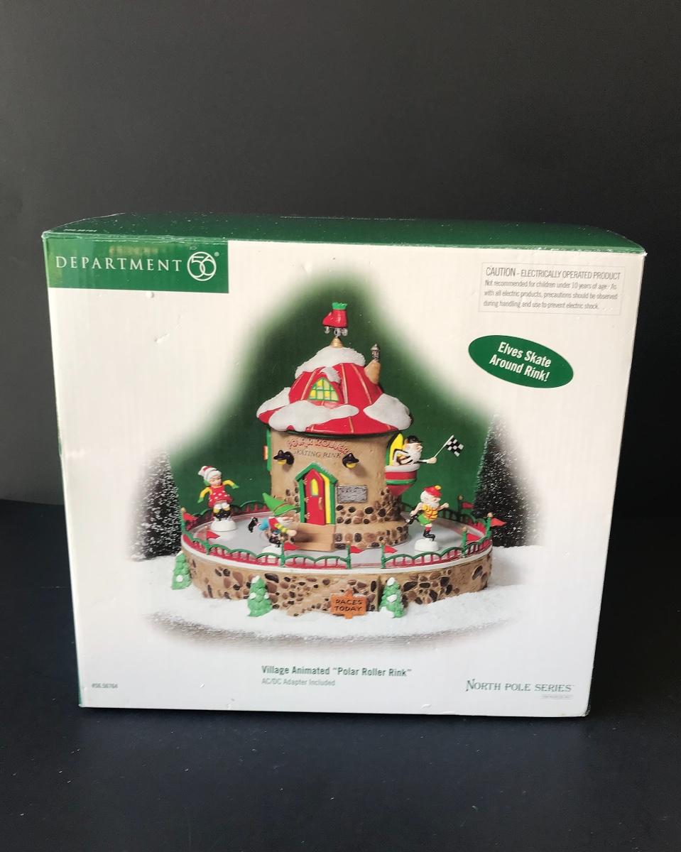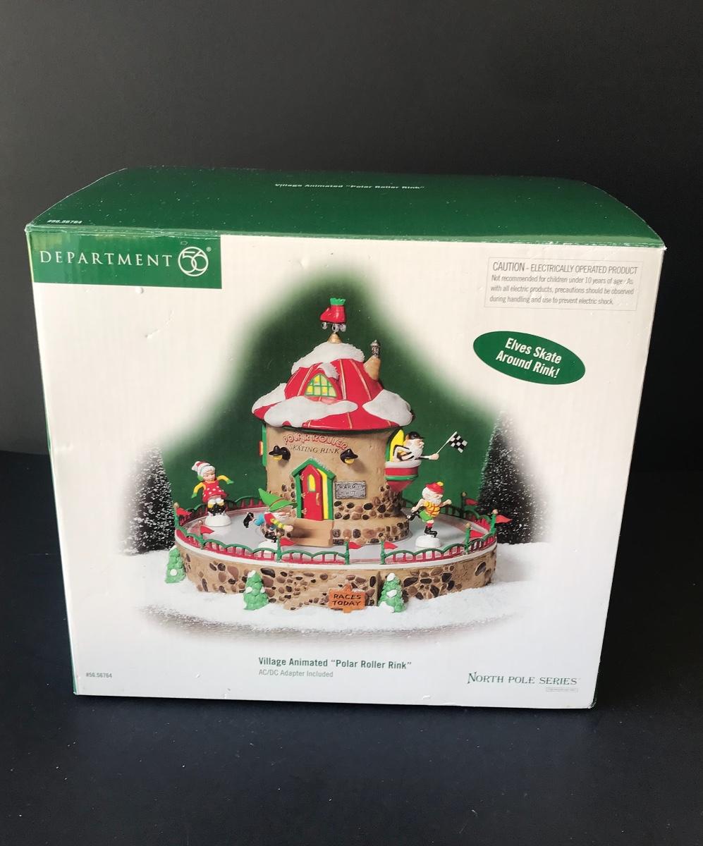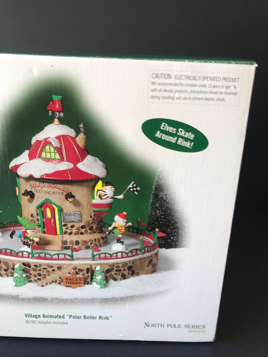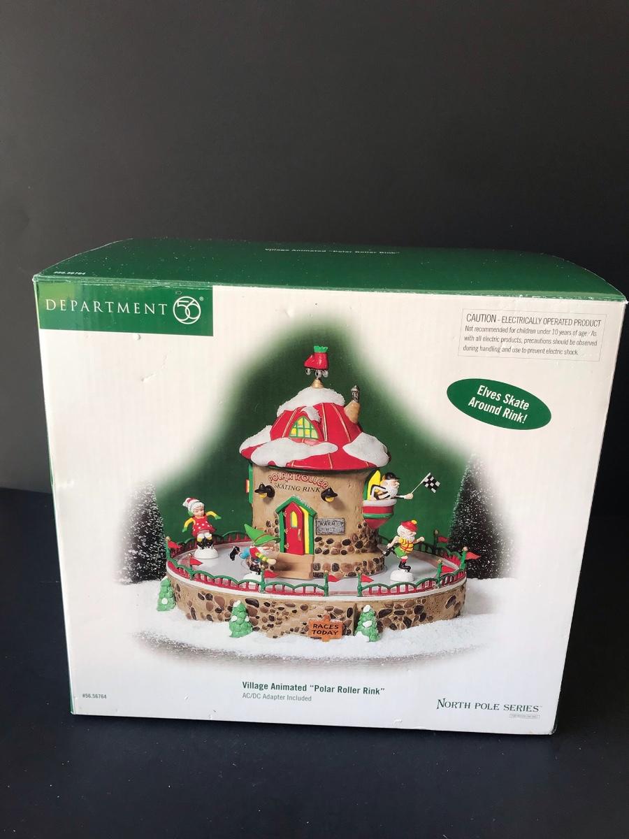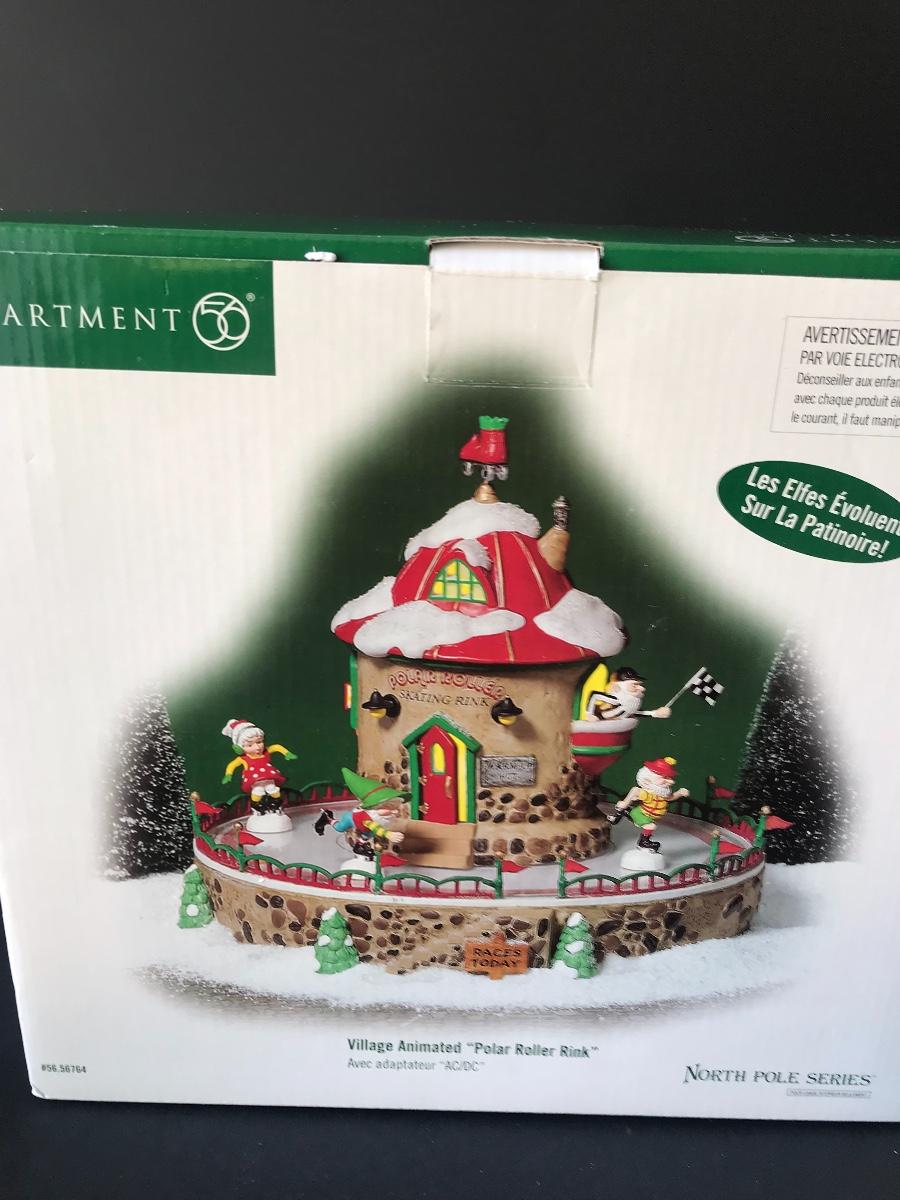 Polar Roller Rink - Department 56 - Christmas Decoration. All Holiday items in this auction are as-seen. The client collected a lot of holiday pieces and some are new in box, some were displayed once and come with original box, and some have been displayed and come with no box. They are all pre-owned in some fashion and have been stored in an attic or on shelf in library. Please see all pictures. The pictures show condition, measurements if taken, and what is included in the lot. Due to the large amount that we photograph and the time frame, we are not always able to take measurements. All items unless noted, are pre-owned and have been used. Thank you