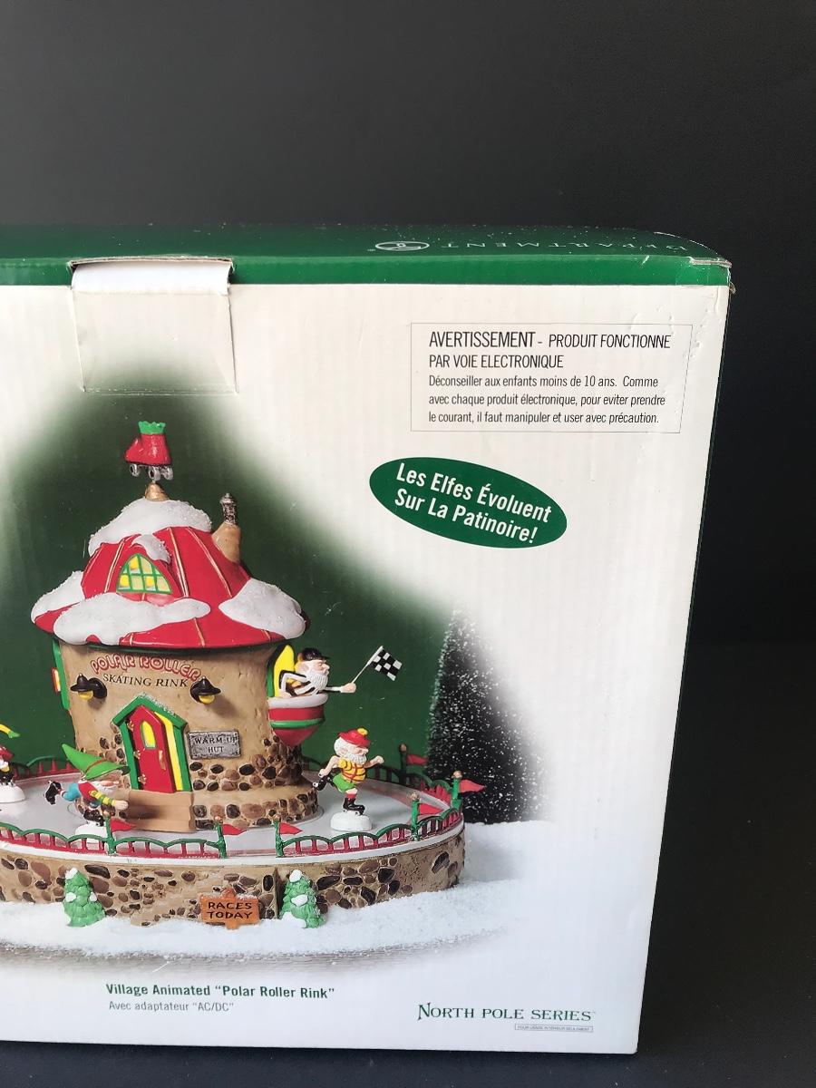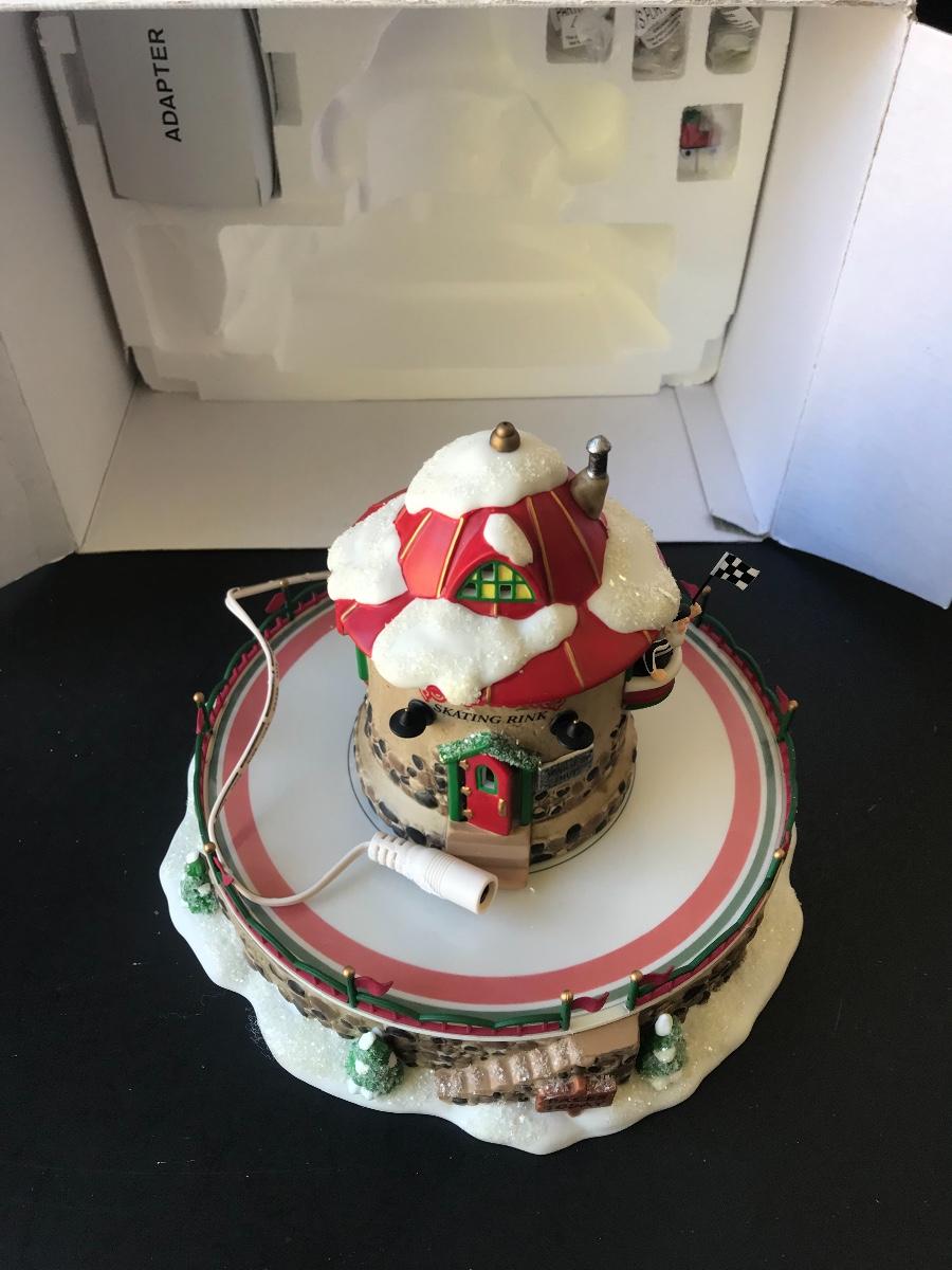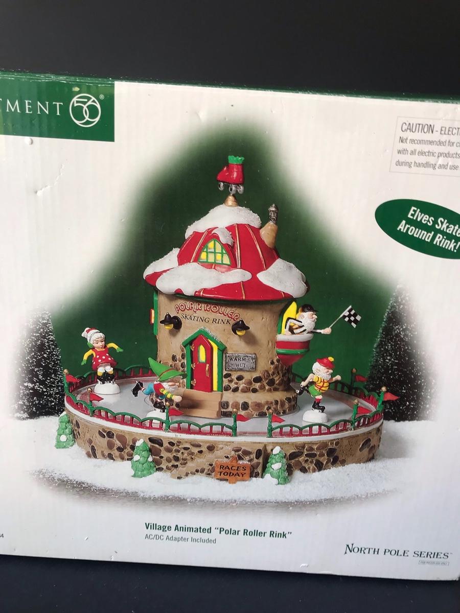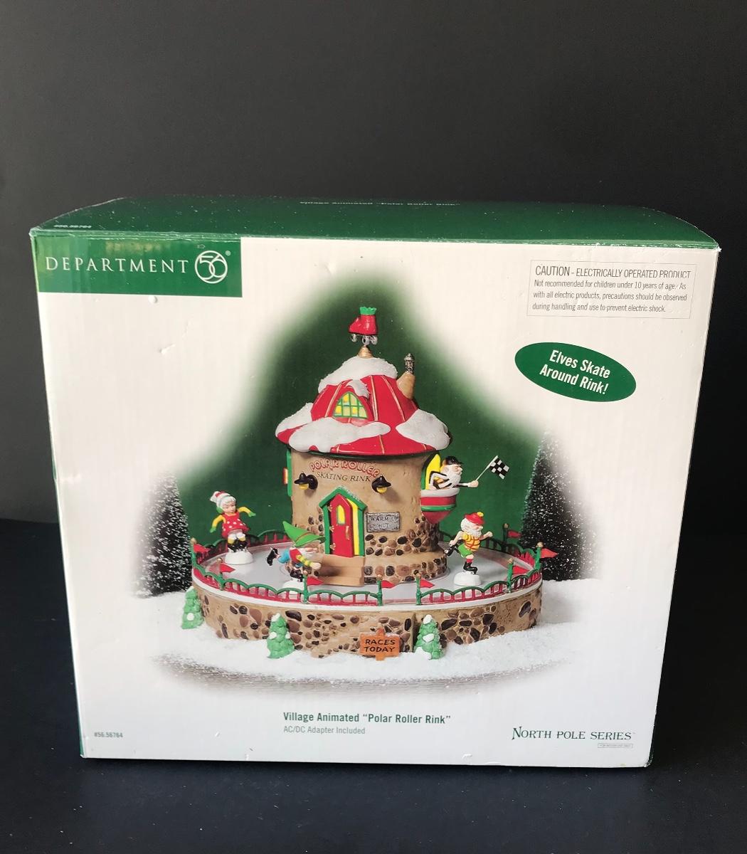 Polar Roller Rink - Department 56 - Christmas Decoration. All Holiday items in this auction are as-seen. The client collected a lot of holiday pieces and some are new in box, some were displayed once and come with original box, and some have been displayed and come with no box. They are all pre-owned in some fashion and have been stored in an attic or on shelf in library. Please see all pictures. The pictures show condition, measurements if taken, and what is included in the lot. Due to the large amount that we photograph and the time frame, we are not always able to take measurements. All items unless noted, are pre-owned and have been used. Thank you