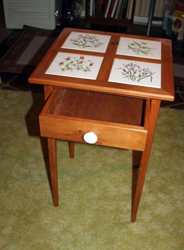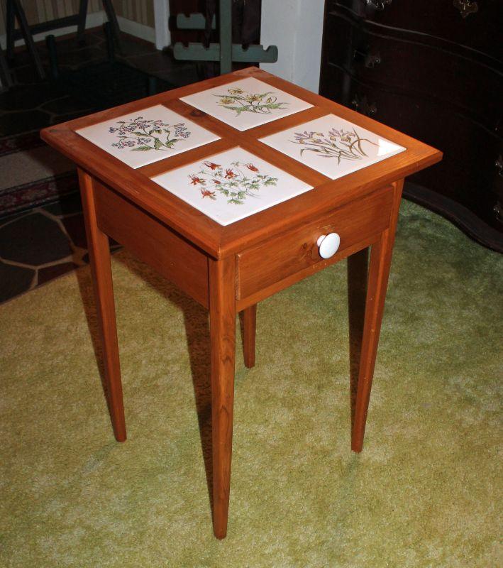 Accent table with 4 floral tiles and single drawer. Excellent condition 17" x 17" x 25" tall
