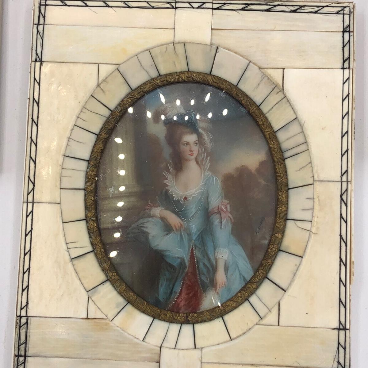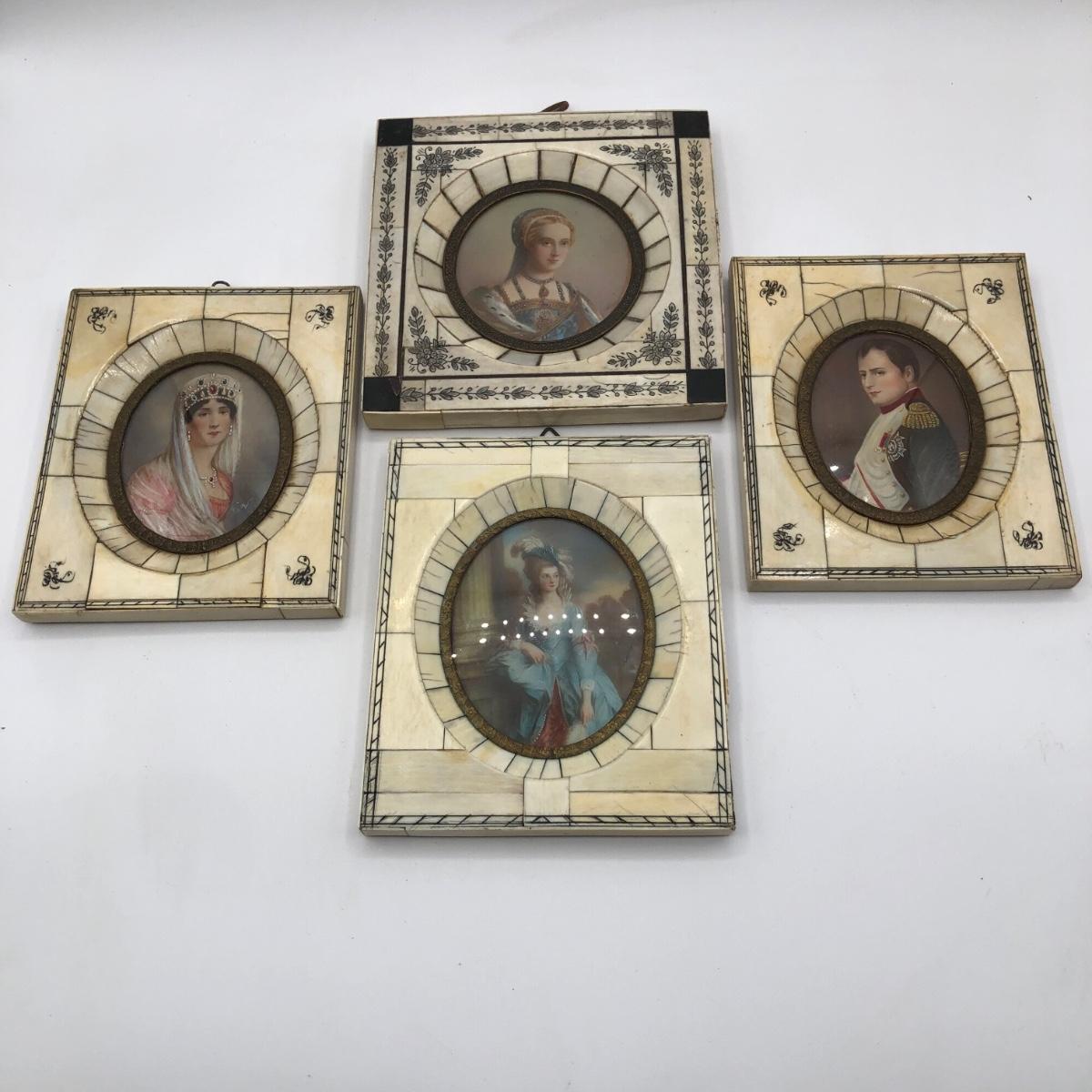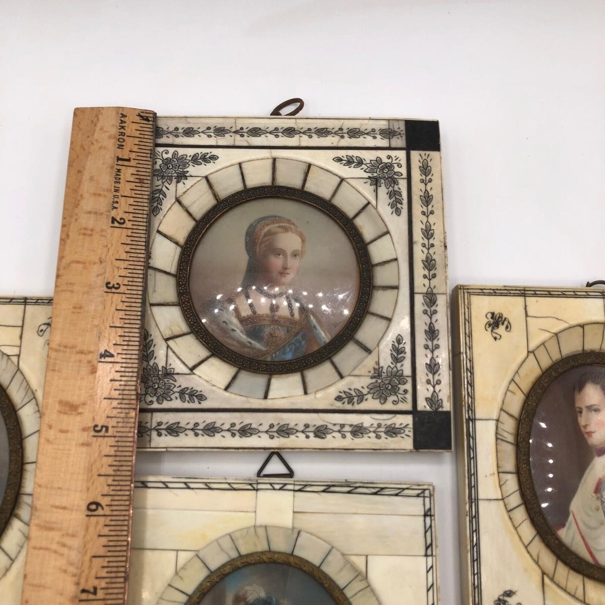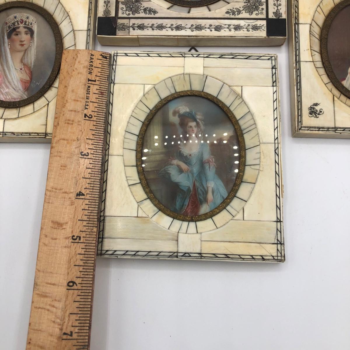 LOT 434K: Antique Miniature Hand Painted French Portraits w/ Beautiful Framing Ox Bone