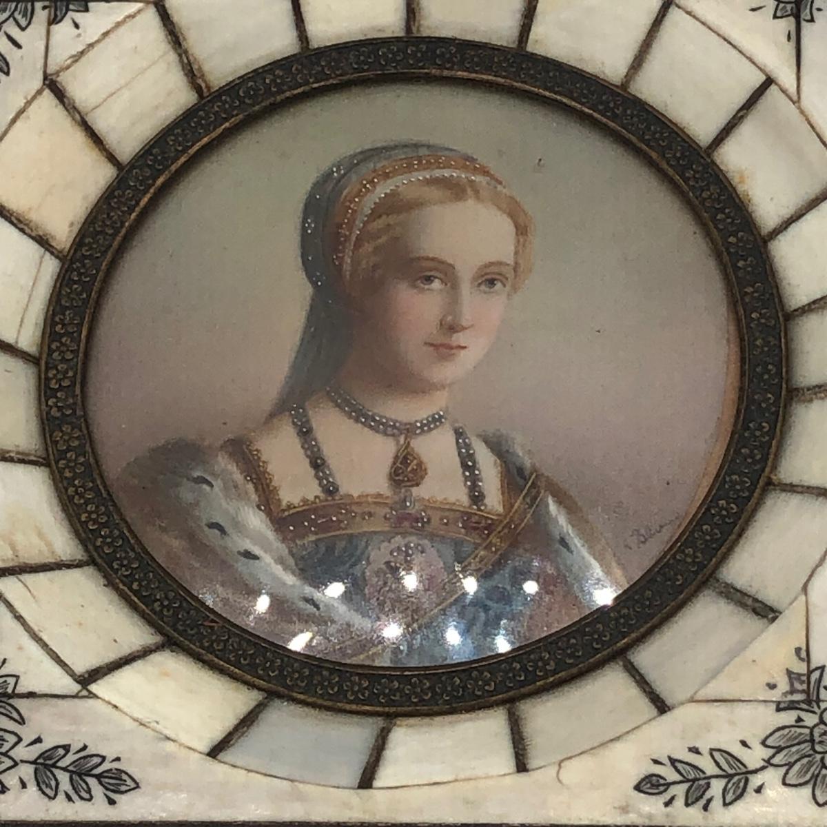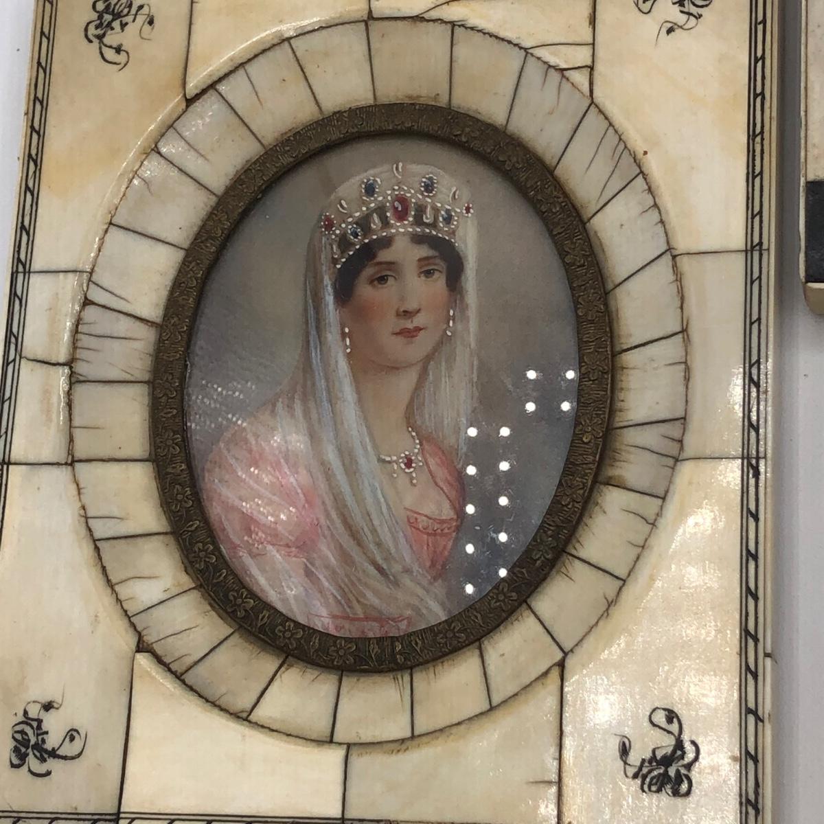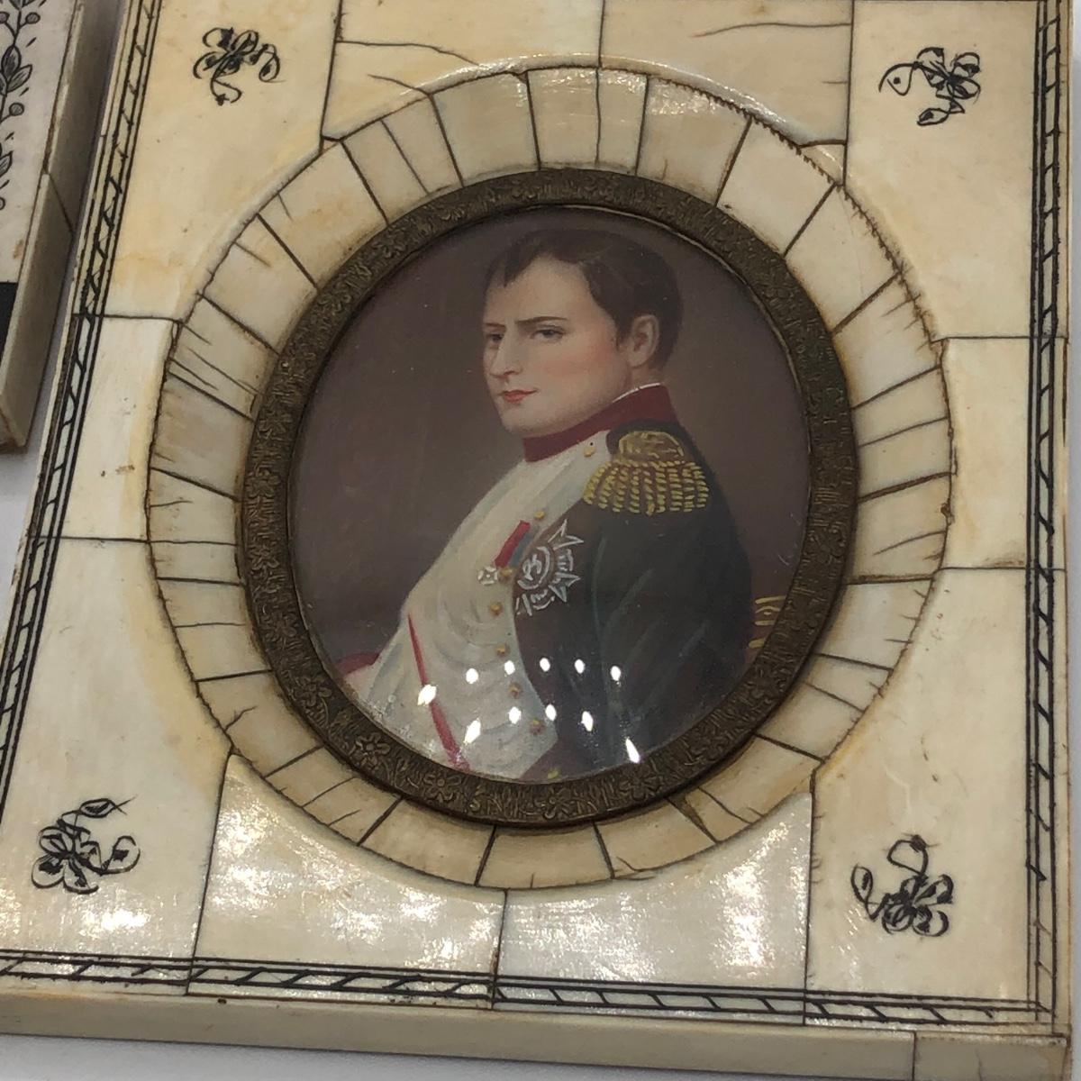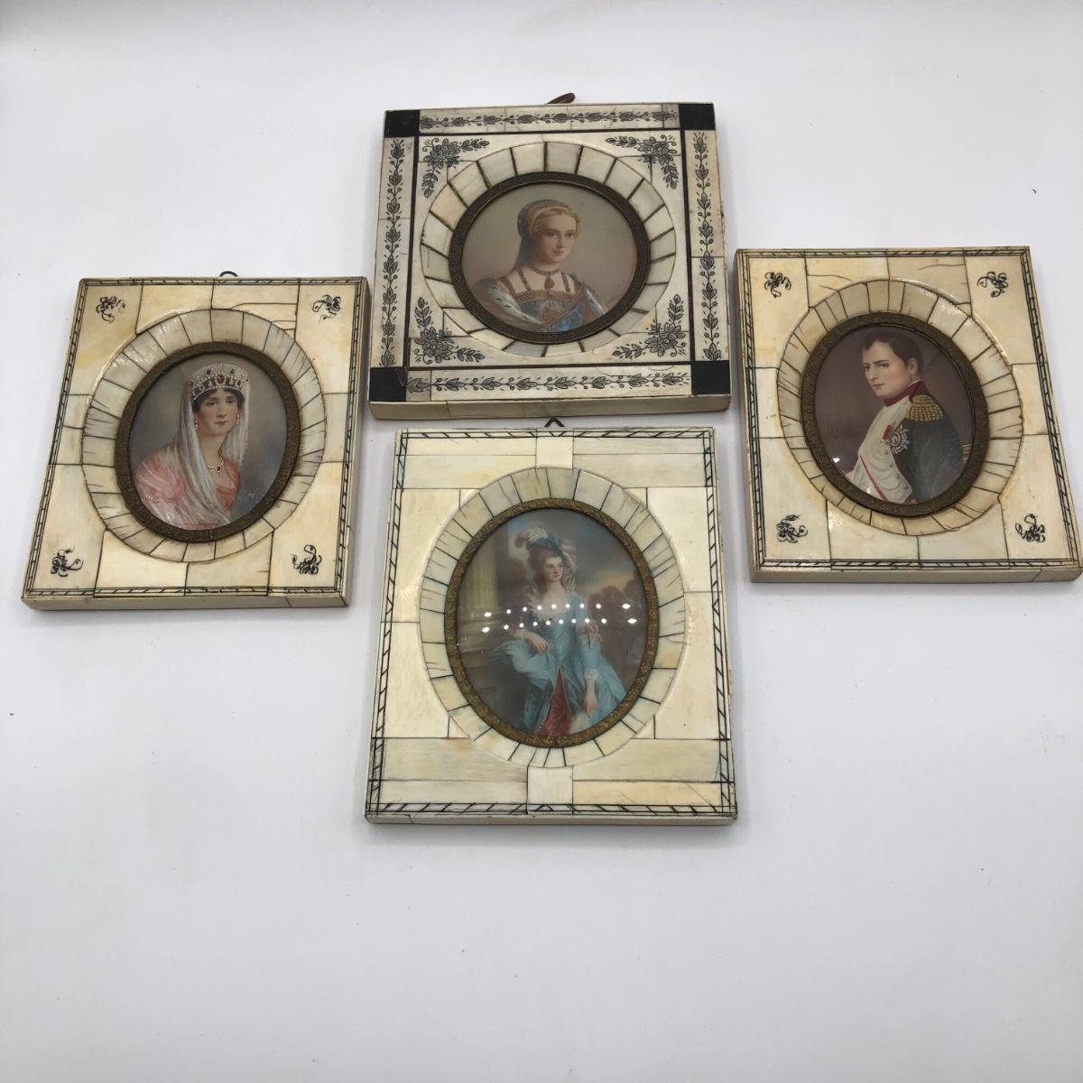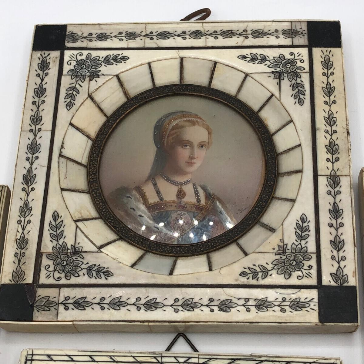 LOT 434K: Antique Miniature Hand Painted French Portraits w/ Beautiful Framing Ox Bone
