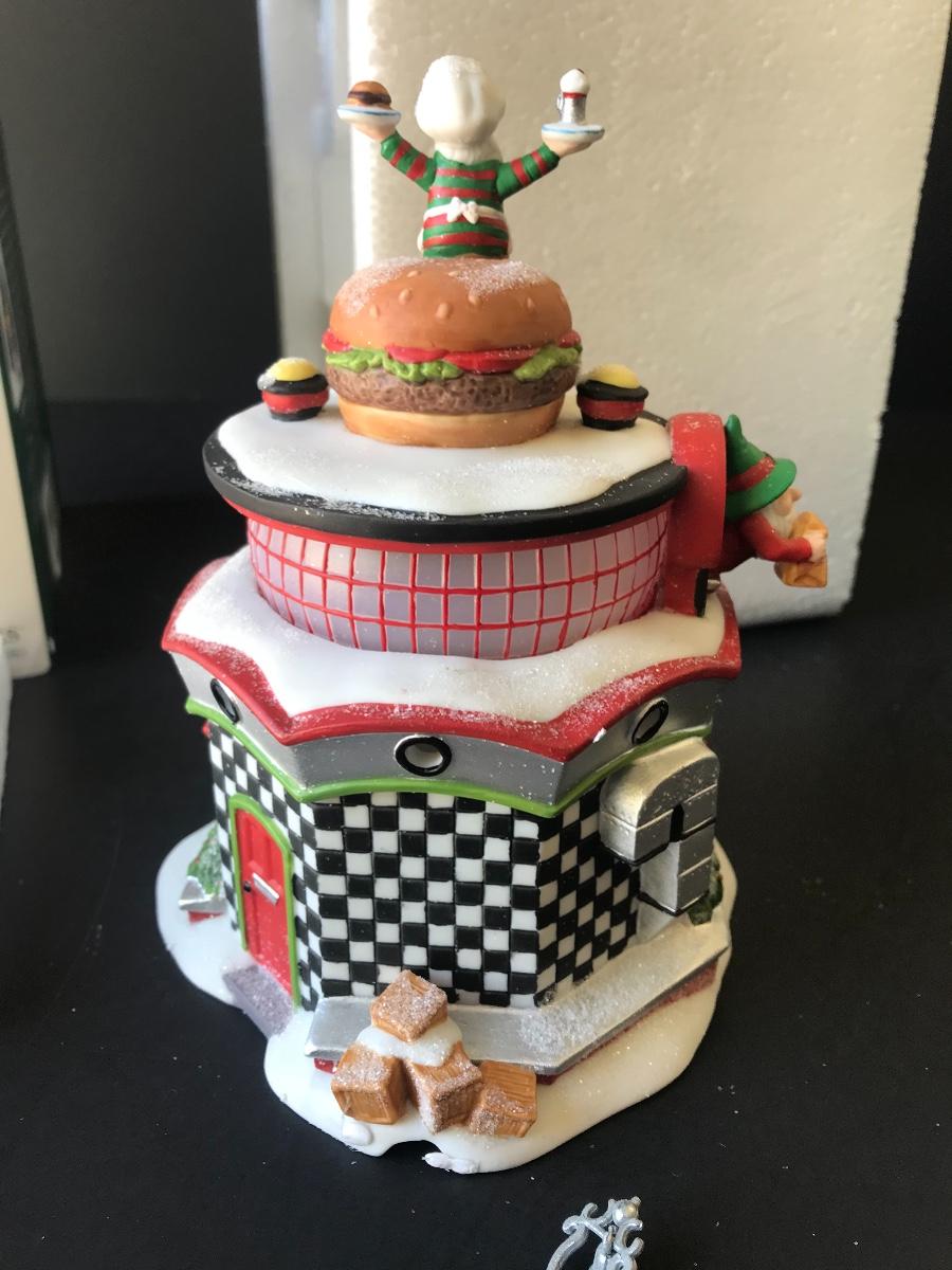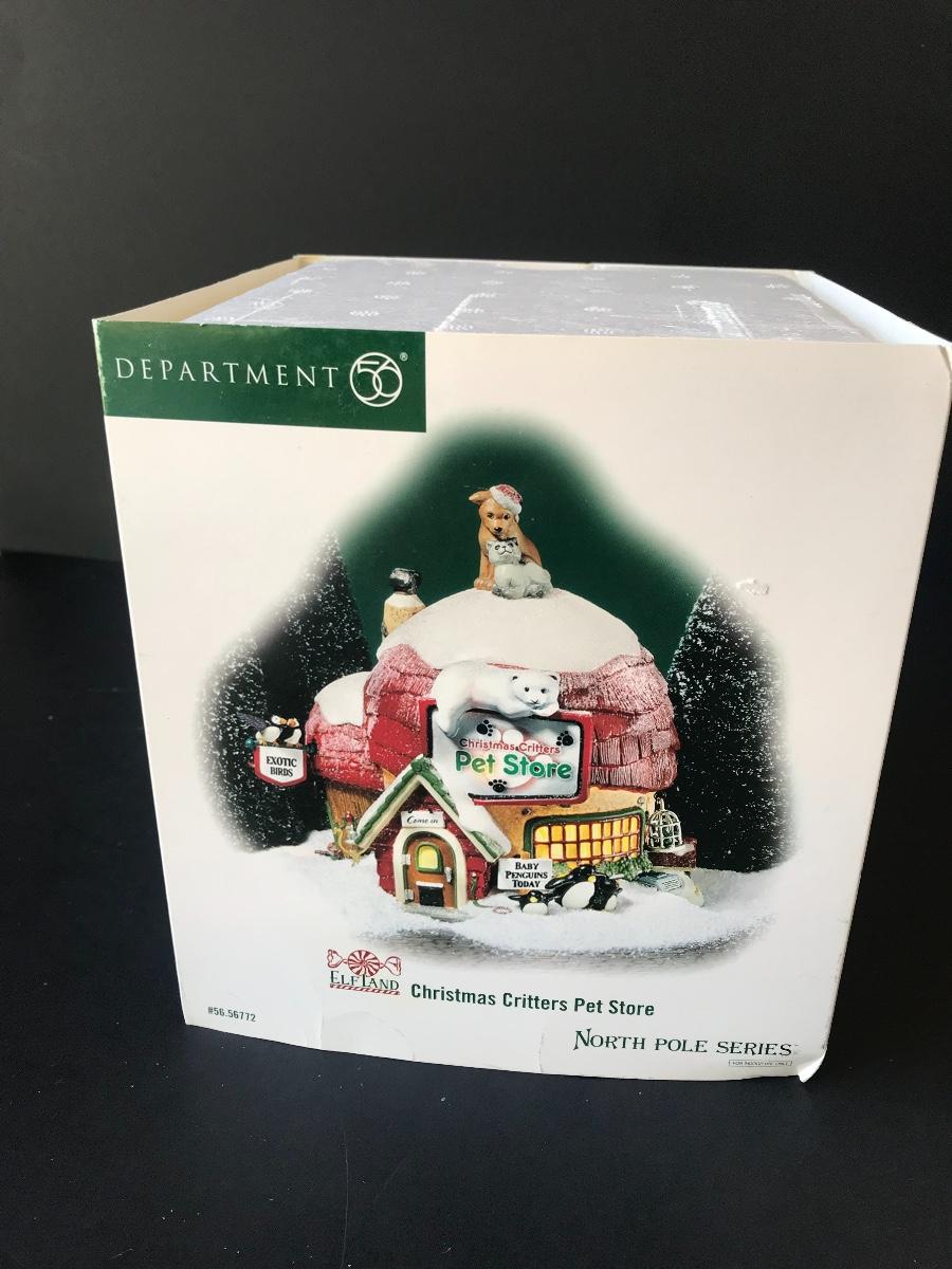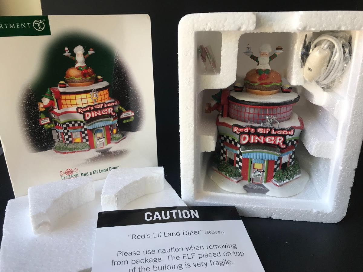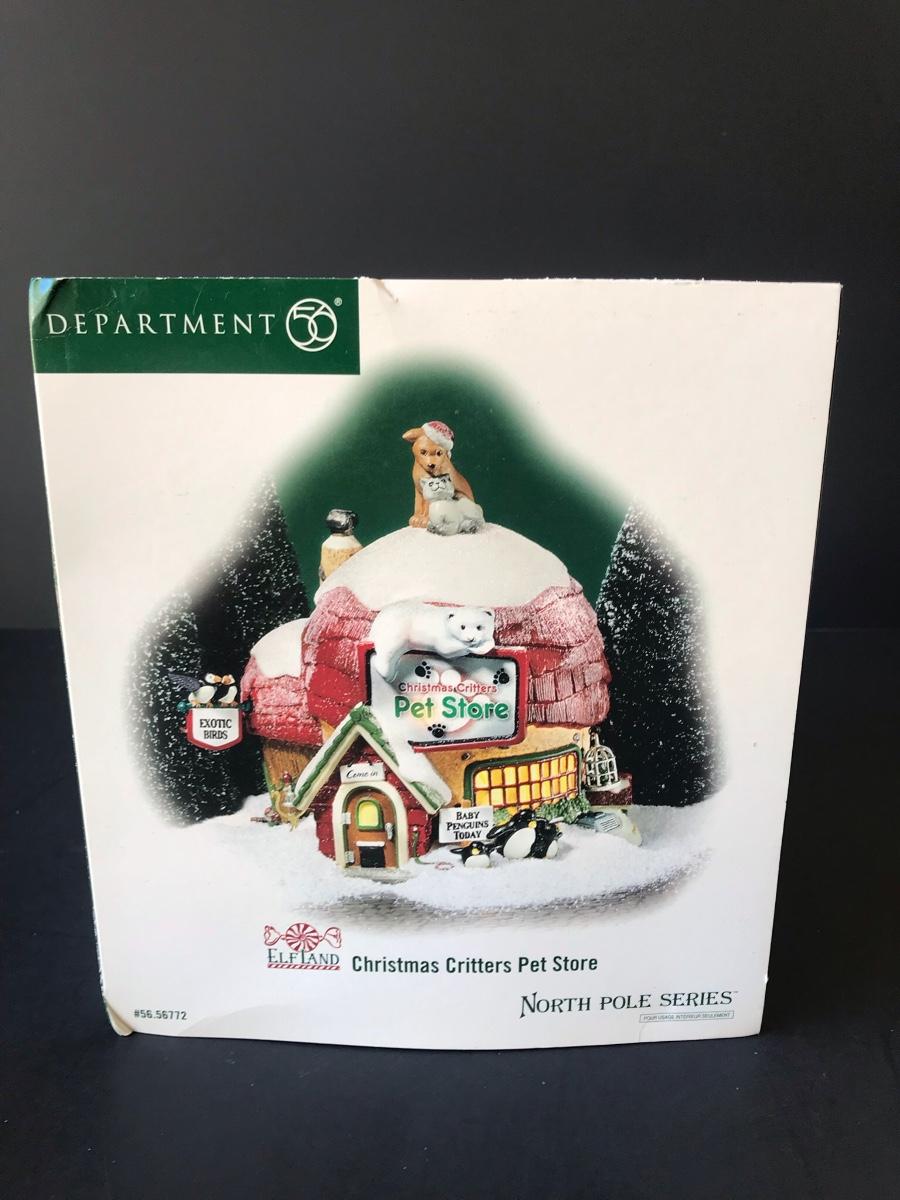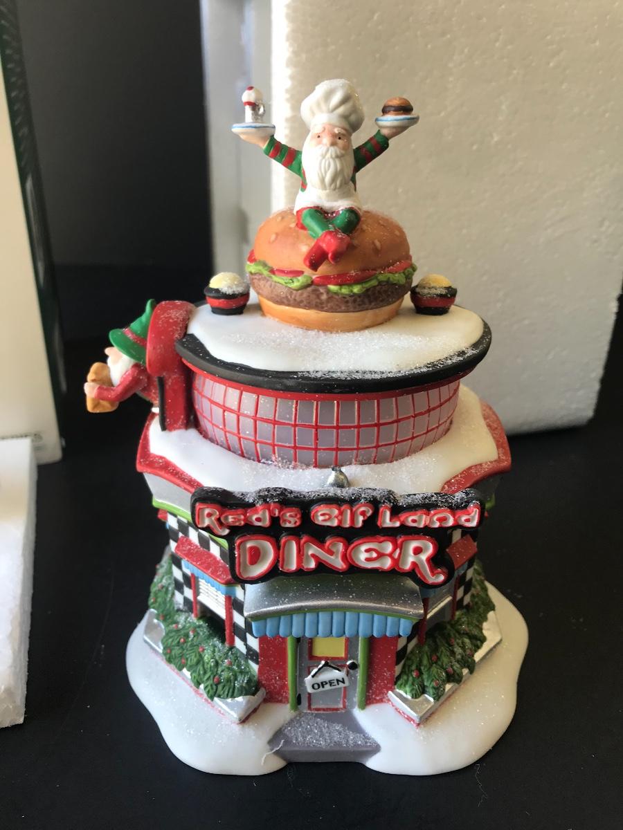 Department 56 Christmas Collectibles - Lot Of 4 - S'Mores & Hot Chocolate, Candy Cane Shack, Red's Elf Land Diner, and Christmas Critters Pet Store. Red's Elf Land Diner has a broken piece, seen in photos. All Holiday items in this auction are as-seen. The client collected a lot of holiday pieces and some are new in box, some were displayed once and come with original box, and some have been displayed and come with no box. They are all pre-owned in some fashion and have been stored in an attic or on shelf in library. Please see all pictures. The pictures show condition, measurements if taken, and what is included in the lot. Due to the large amount that we photograph and the time frame, we are not always able to take measurements. All items unless noted, are pre-owned and have been used. Thank you