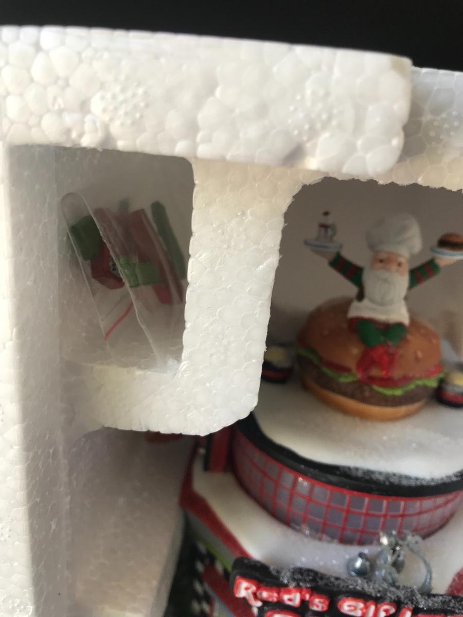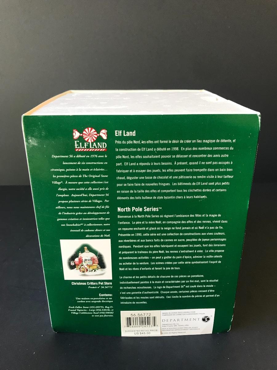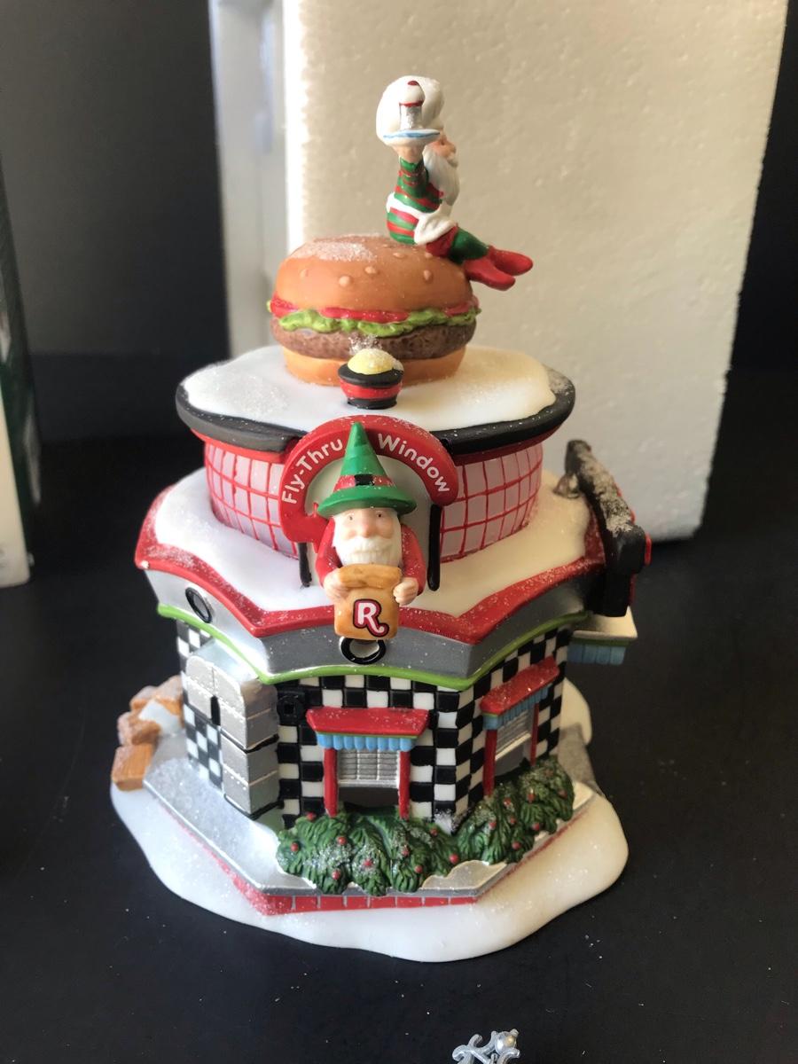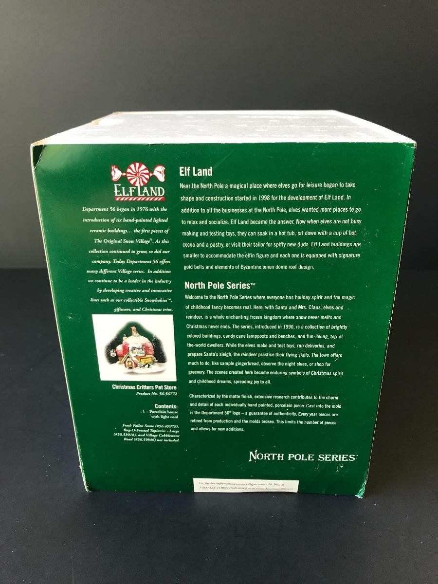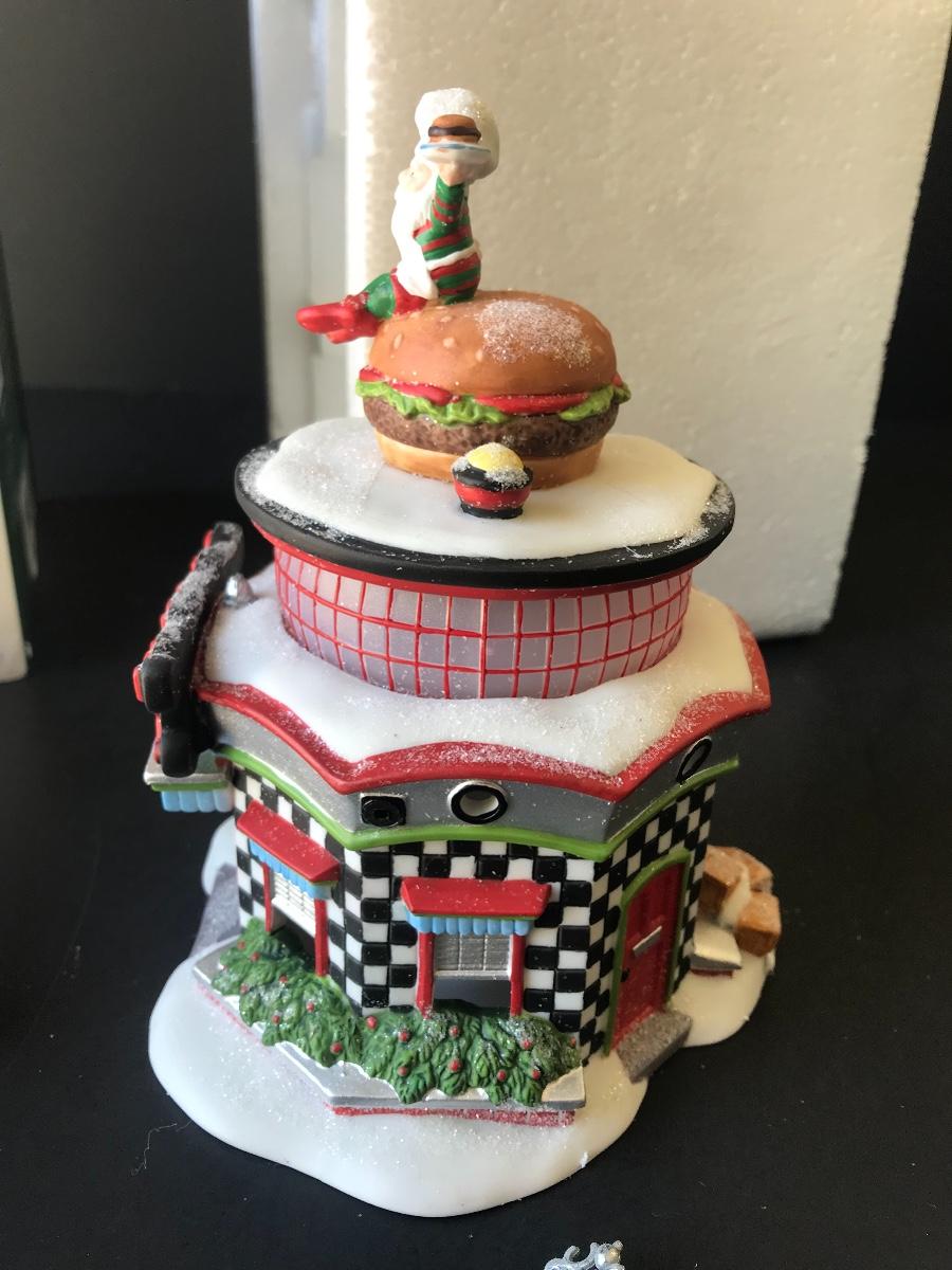 Department 56 Christmas Collectibles - Lot Of 4 - S'Mores & Hot Chocolate, Candy Cane Shack, Red's Elf Land Diner, and Christmas Critters Pet Store. Red's Elf Land Diner has a broken piece, seen in photos. All Holiday items in this auction are as-seen. The client collected a lot of holiday pieces and some are new in box, some were displayed once and come with original box, and some have been displayed and come with no box. They are all pre-owned in some fashion and have been stored in an attic or on shelf in library. Please see all pictures. The pictures show condition, measurements if taken, and what is included in the lot. Due to the large amount that we photograph and the time frame, we are not always able to take measurements. All items unless noted, are pre-owned and have been used. Thank you