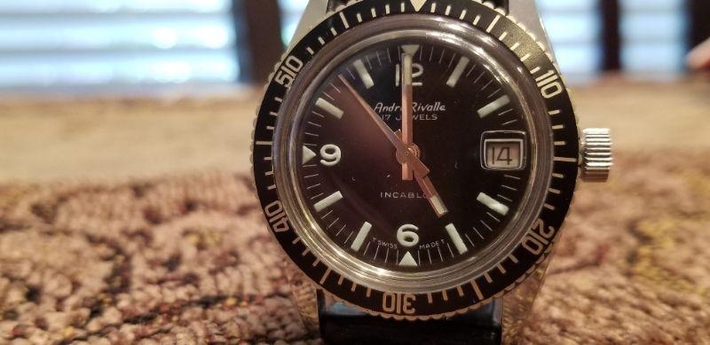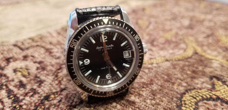 LOT #435: Vintage André Rivalle Swiss Manual Wind Movement Divers Watch 17 Jewel - TESTED A+