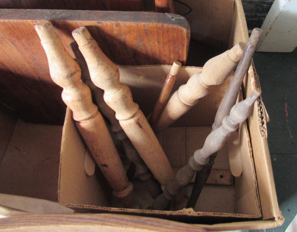 Lot 435:  Box of Old Wood Parts For Repair or Repurpose