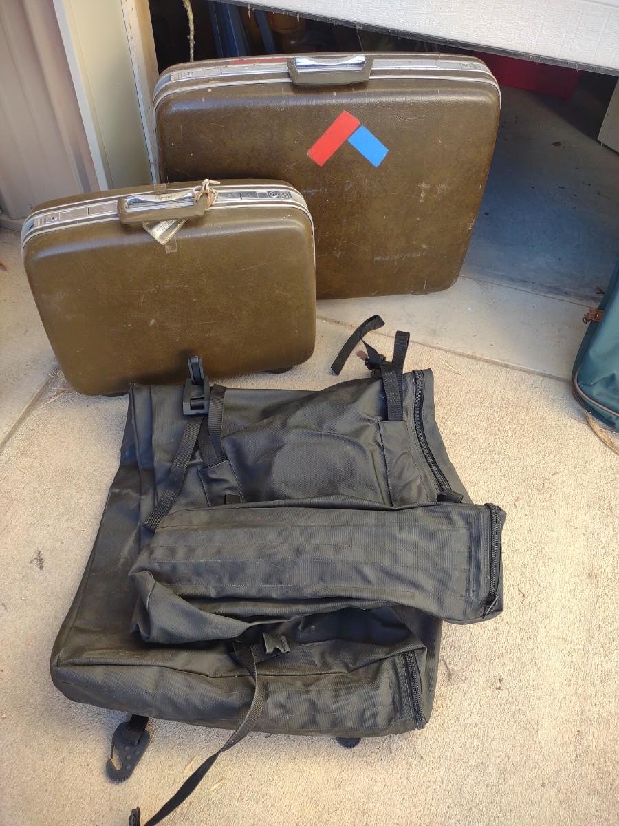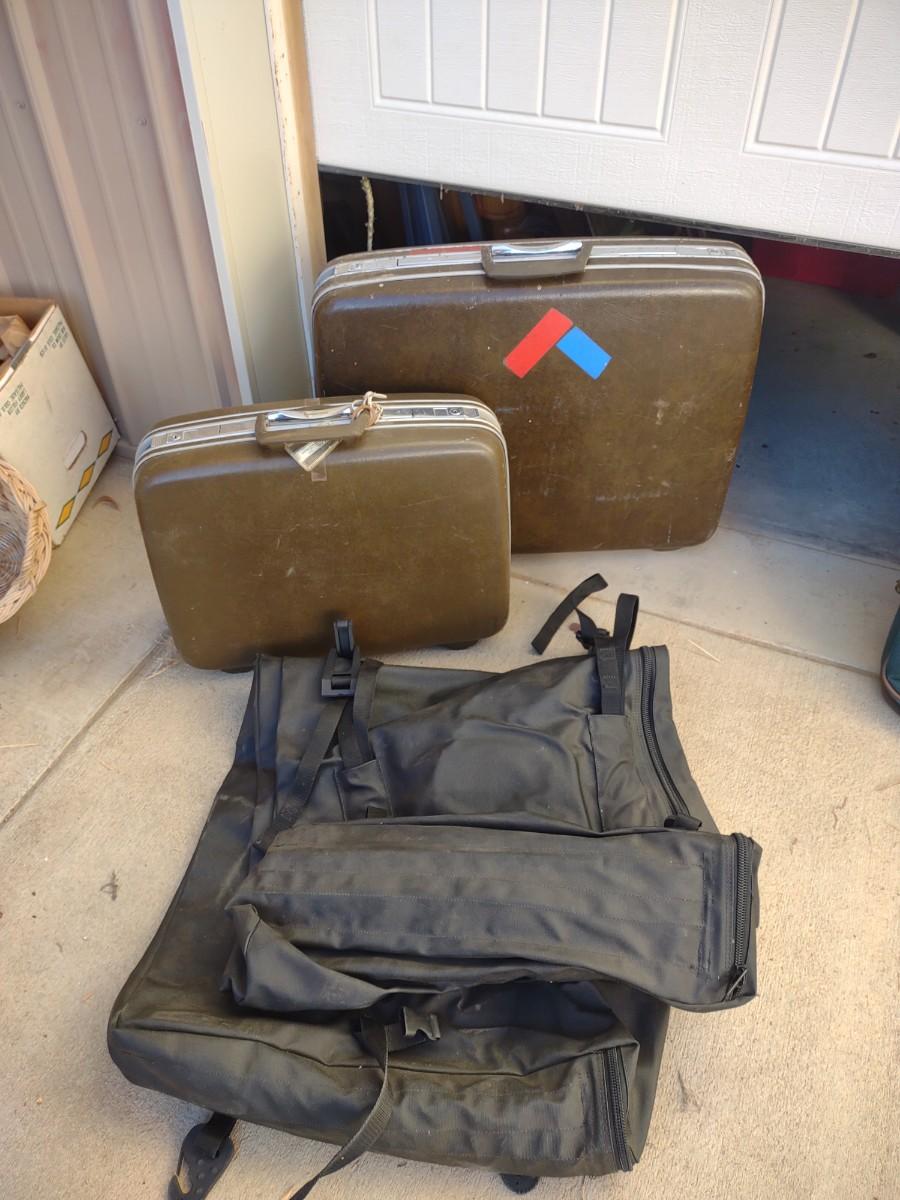 VINTAGE SAMSONITE LUGGAGE AND A GARMENT BAG