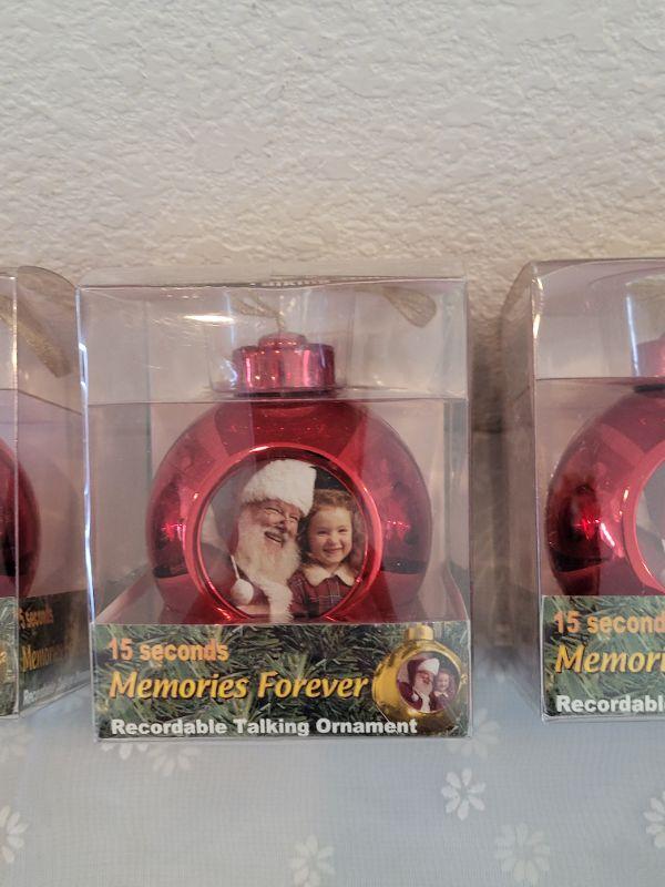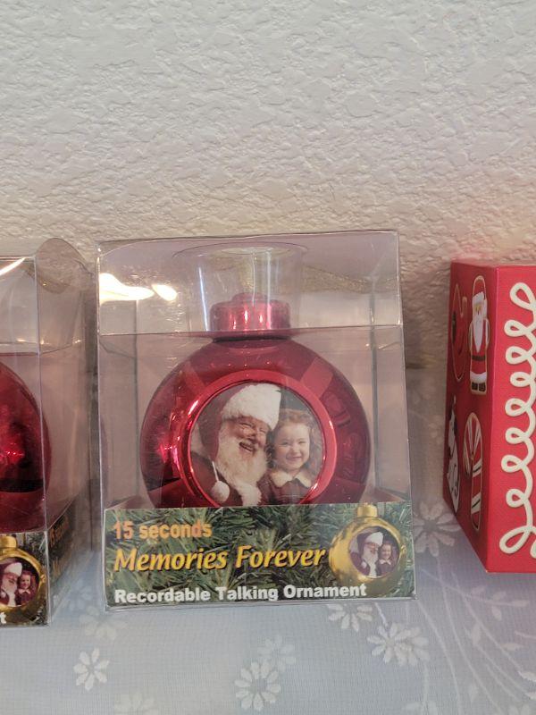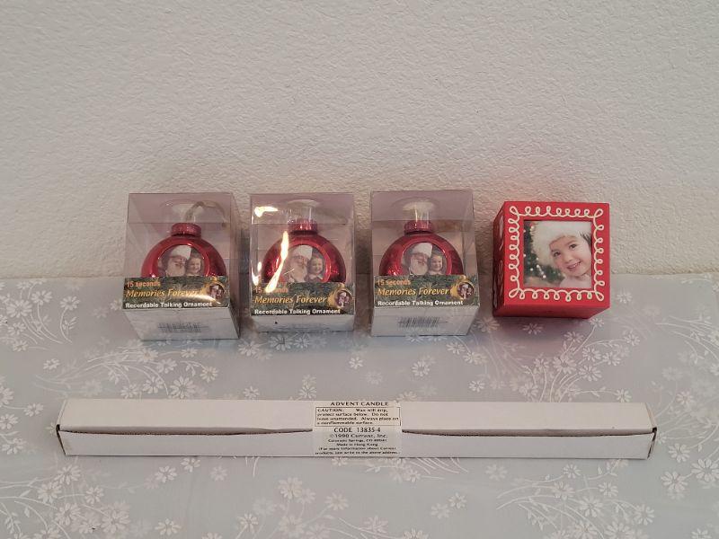 Lot 436: New (3) Recordable Christmas Ornaments and Picture Deco and Advent Candle