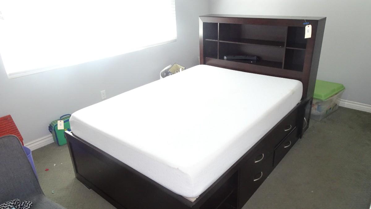 LOT 436 FULL SIZE BED AND HEADBOARD WITH STORAGE DRAWERS