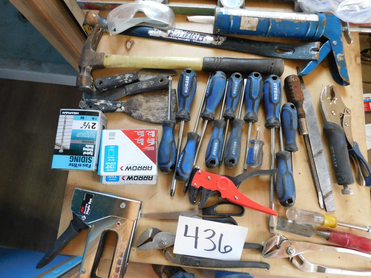 LOT 436 NICE VARIETY OF HAND TOOLS AND A TOOL BUCKET