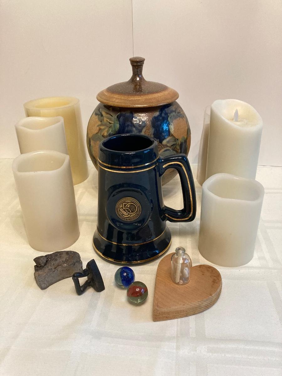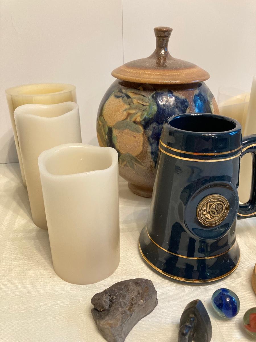 LOT 436F: Pottery, Electric Candles, Vintage Marbles and More