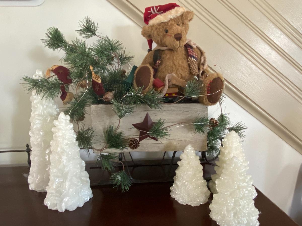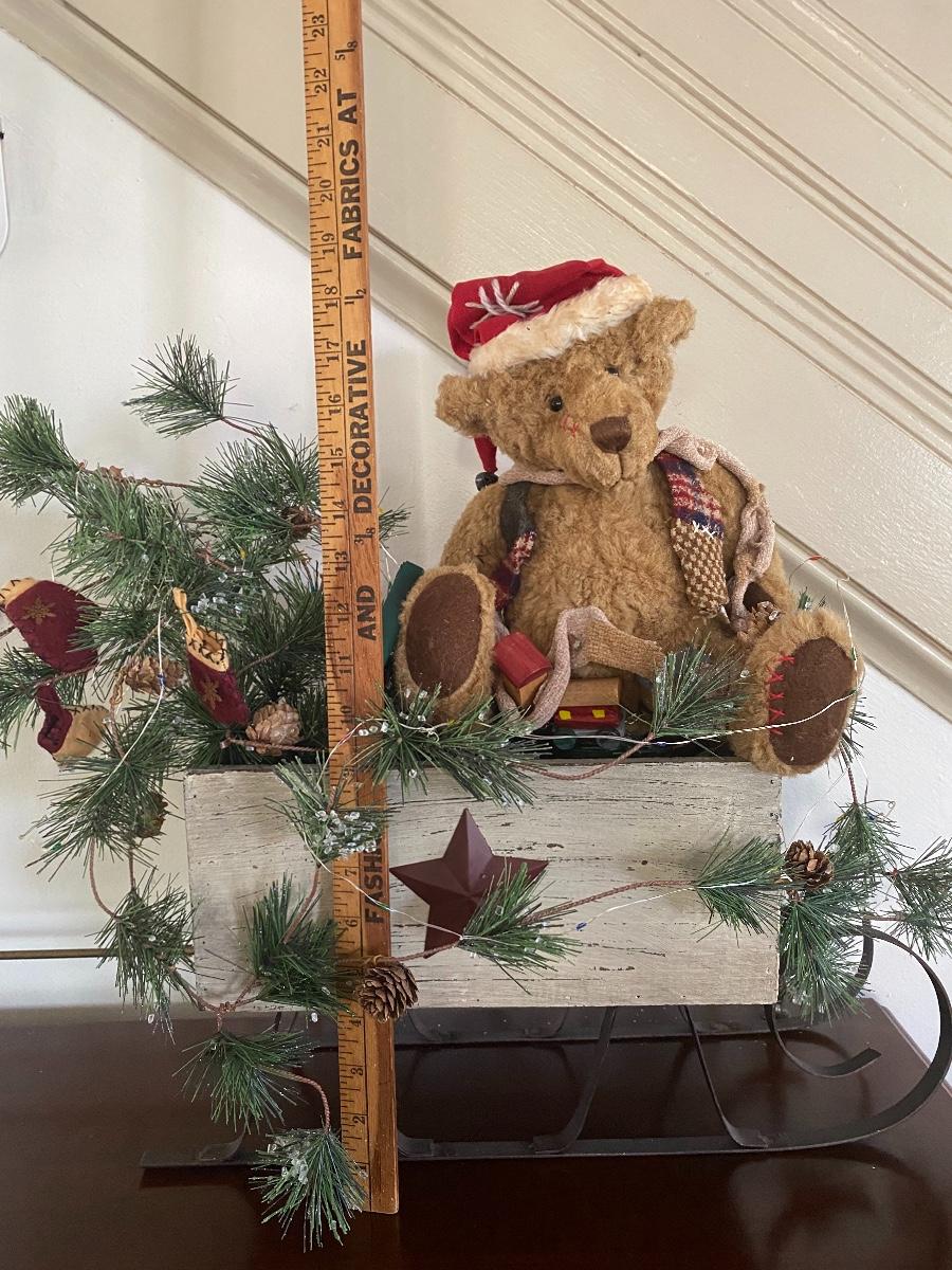 Christmas Teddy in a sled and group of white Christmas tree candles. Please see all pictures as they are the best representation of the items. The pictures show condition, measurements if taken, and what is included in the lot. Due to the large amount that we photograph and the time frame, we are not always able to take measurements. All items unless noted, are pre-owned and have been used. If you purchased furniture, you must bring help. We do not allow one person to carry large furniture out on their own. Bring help, tools and a truck for the safety of our client’s homes, and your personal safety. Company policy. Thank you.