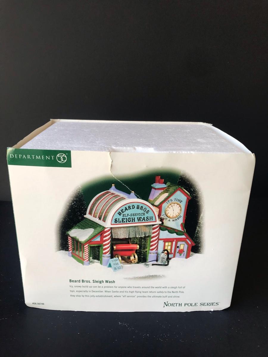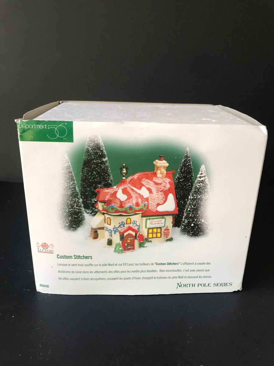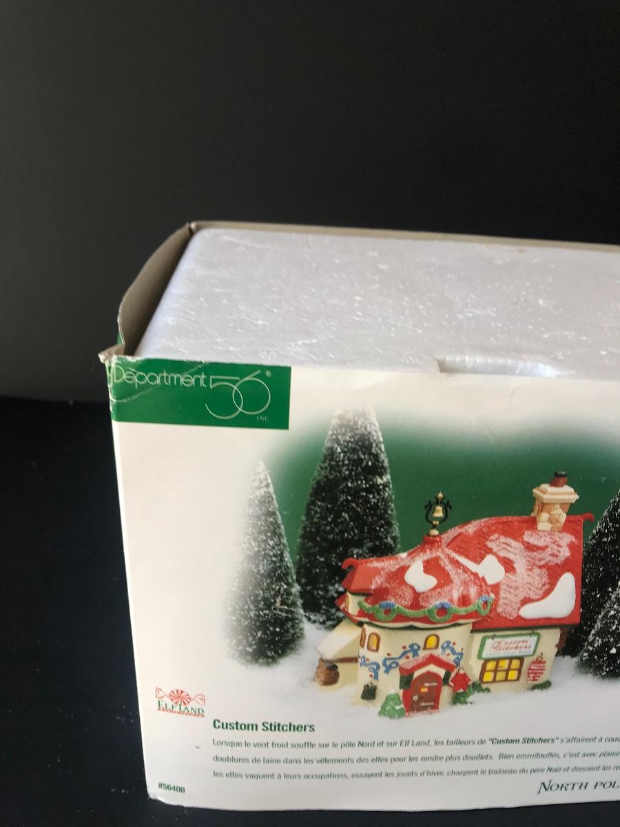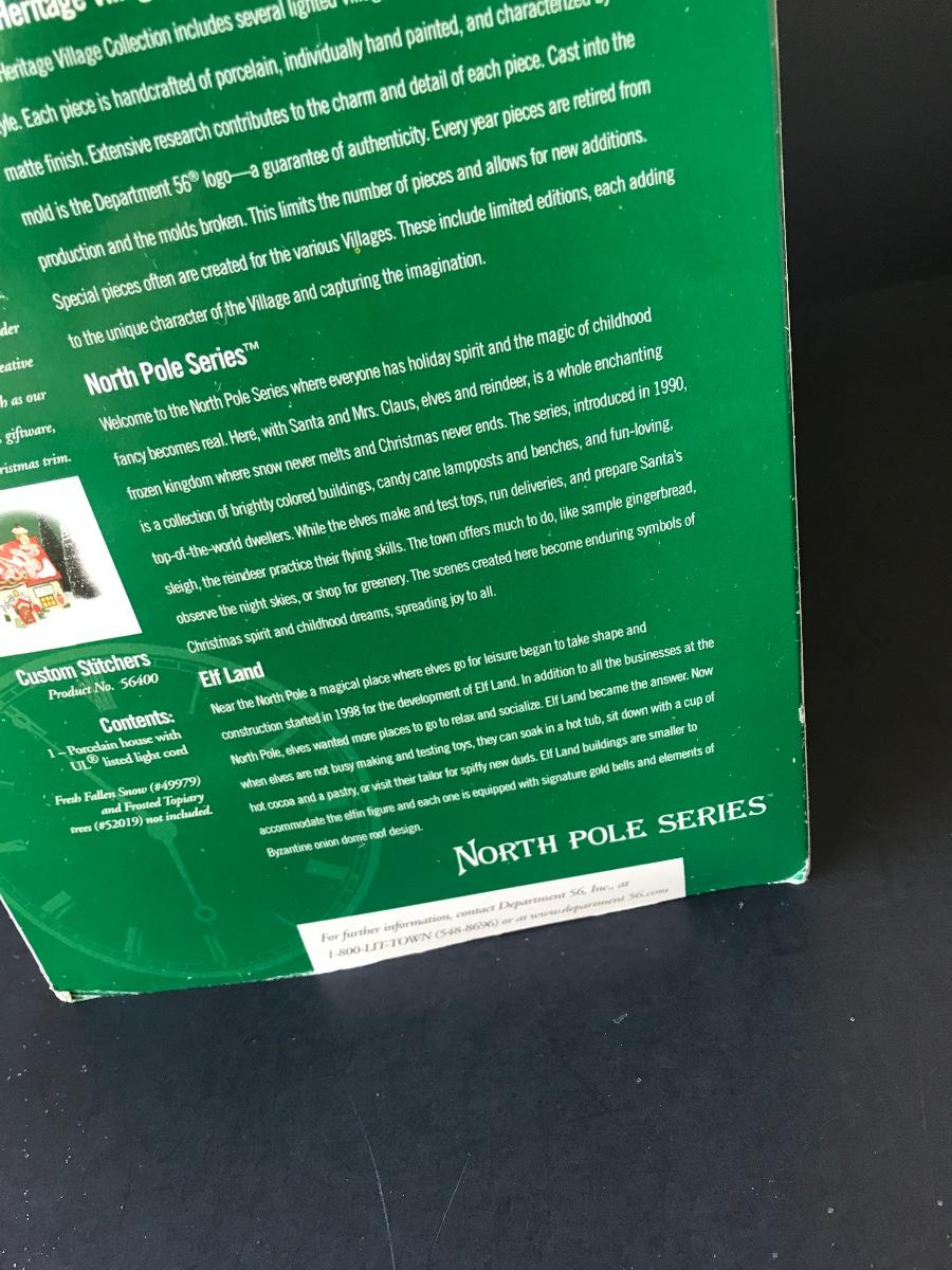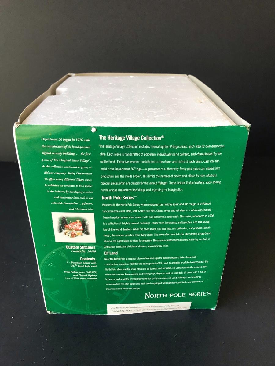 Four Department 56 Christmas Display Collectibles - Welcome to Elfland, Mitten Manor, Beard Bros. Sleigh Wash, and Custom Stitchers. All Holiday items in this auction are as-seen. The client collected a lot of holiday pieces and some are new in box, some were displayed once and come with original box, and some have been displayed and come with no box. They are all pre-owned in some fashion and have been stored in an attic or on shelf in library. Please see all pictures. The pictures show condition, measurements if taken, and what is included in the lot. Due to the large amount that we photograph and the time frame, we are not always able to take measurements. All items unless noted, are pre-owned and have been used. Thank you