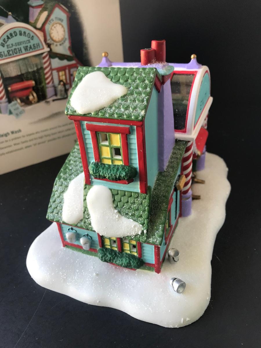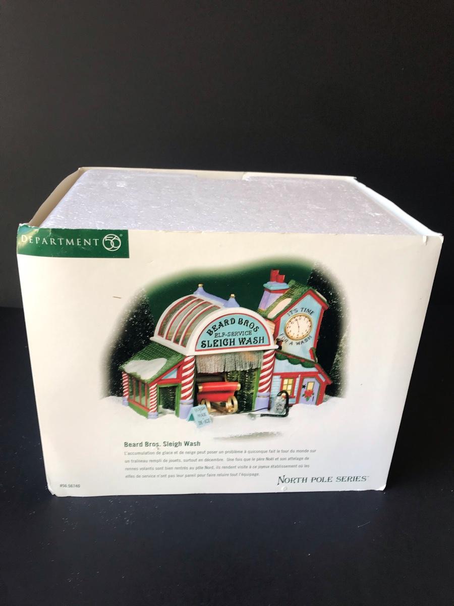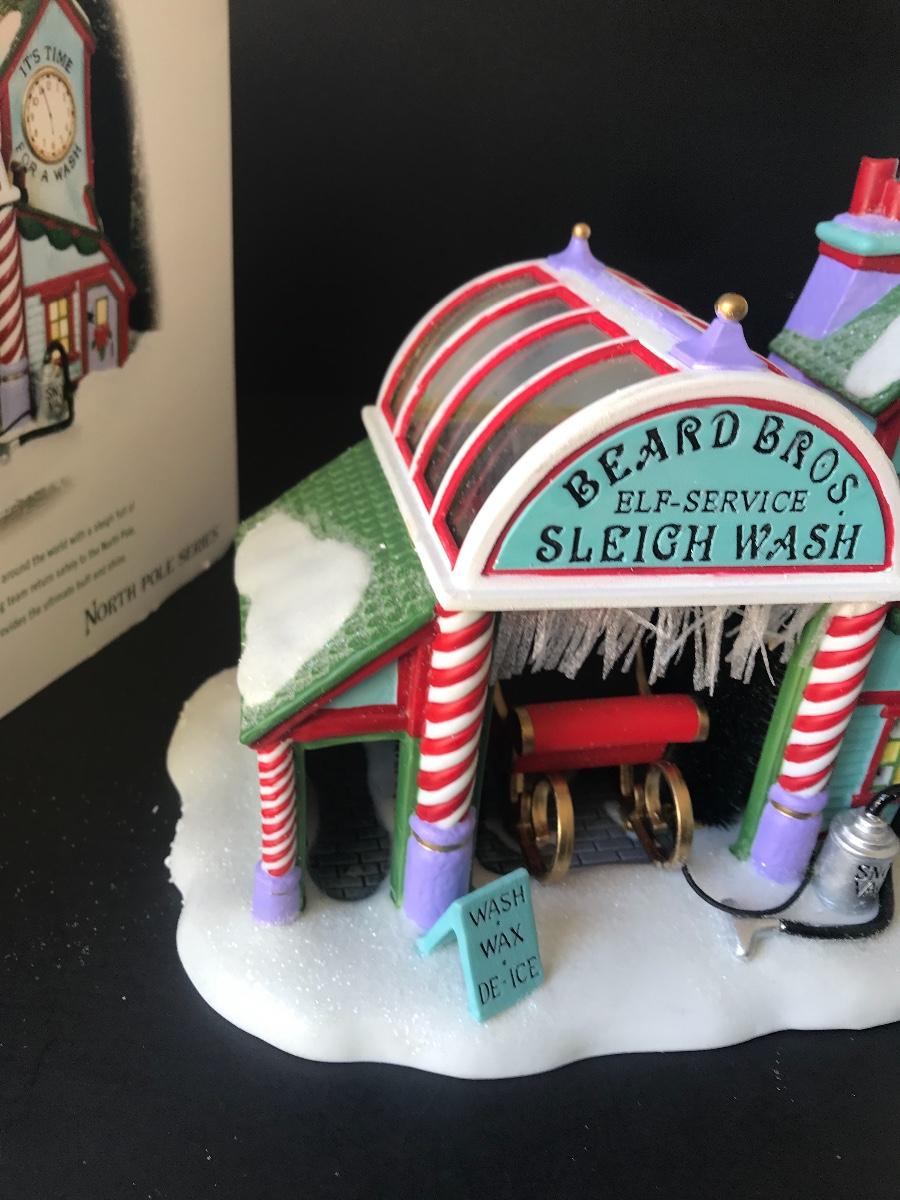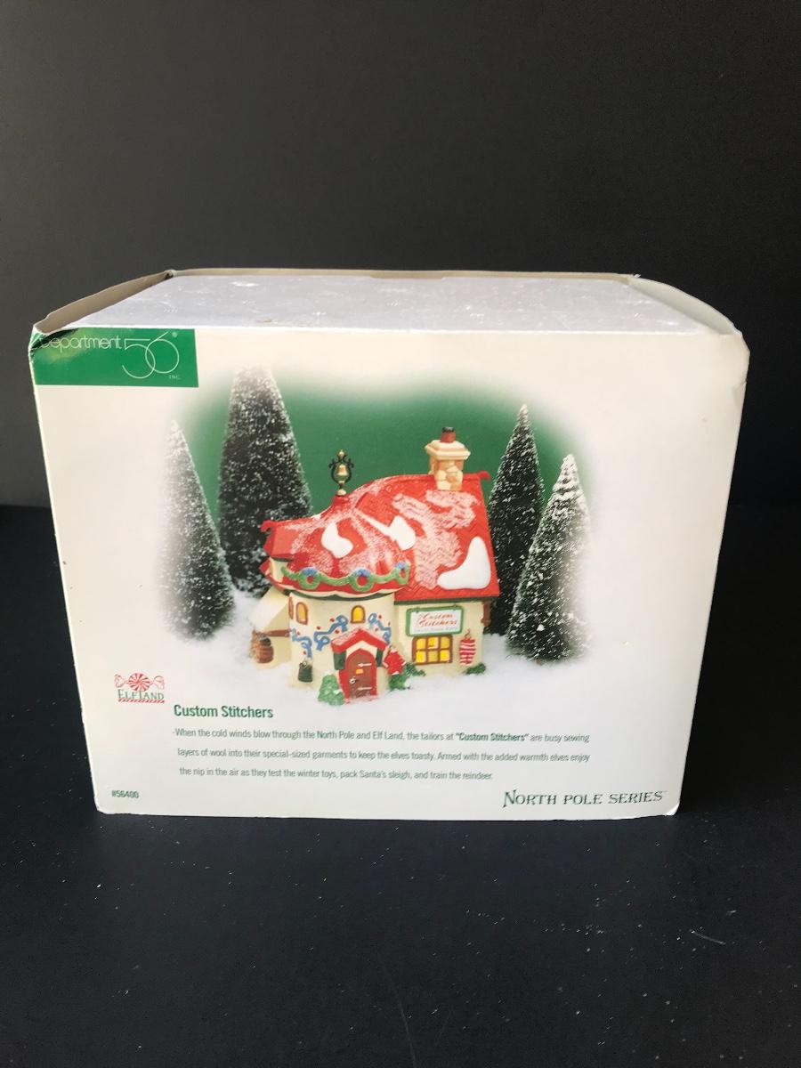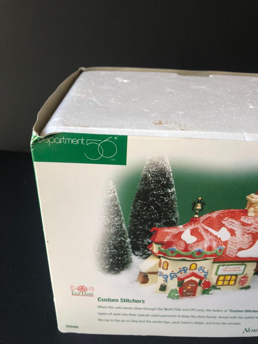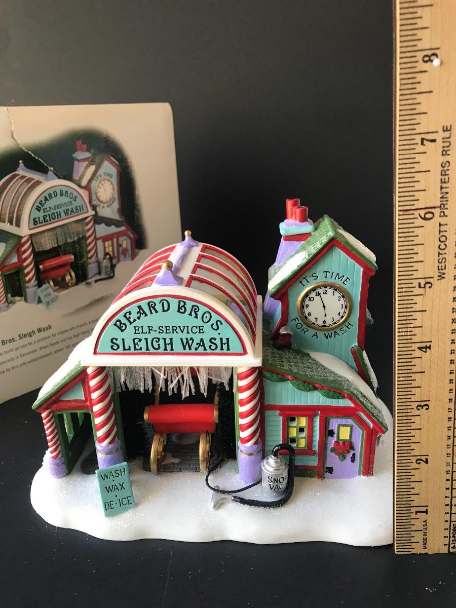 Four Department 56 Christmas Display Collectibles - Welcome to Elfland, Mitten Manor, Beard Bros. Sleigh Wash, and Custom Stitchers. All Holiday items in this auction are as-seen. The client collected a lot of holiday pieces and some are new in box, some were displayed once and come with original box, and some have been displayed and come with no box. They are all pre-owned in some fashion and have been stored in an attic or on shelf in library. Please see all pictures. The pictures show condition, measurements if taken, and what is included in the lot. Due to the large amount that we photograph and the time frame, we are not always able to take measurements. All items unless noted, are pre-owned and have been used. Thank you