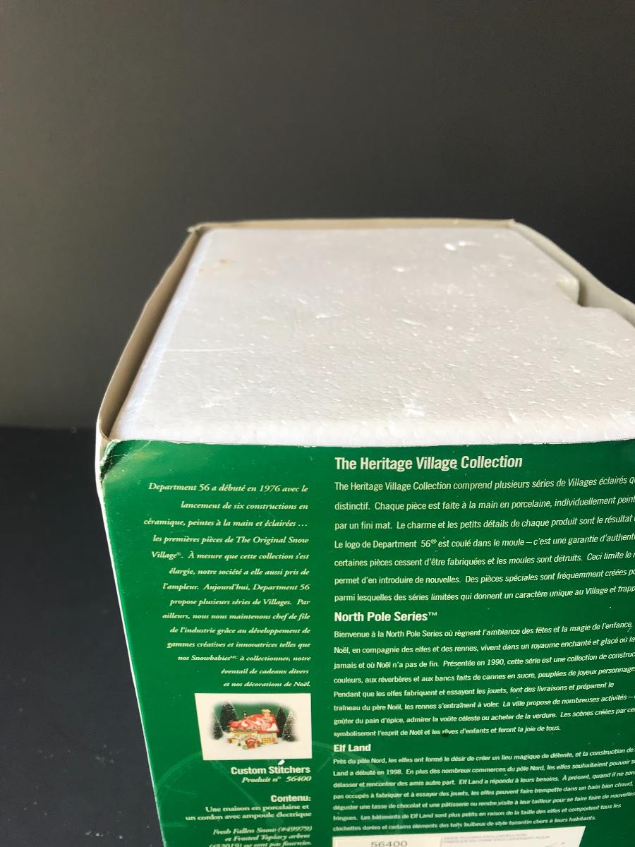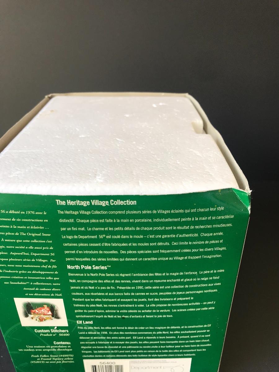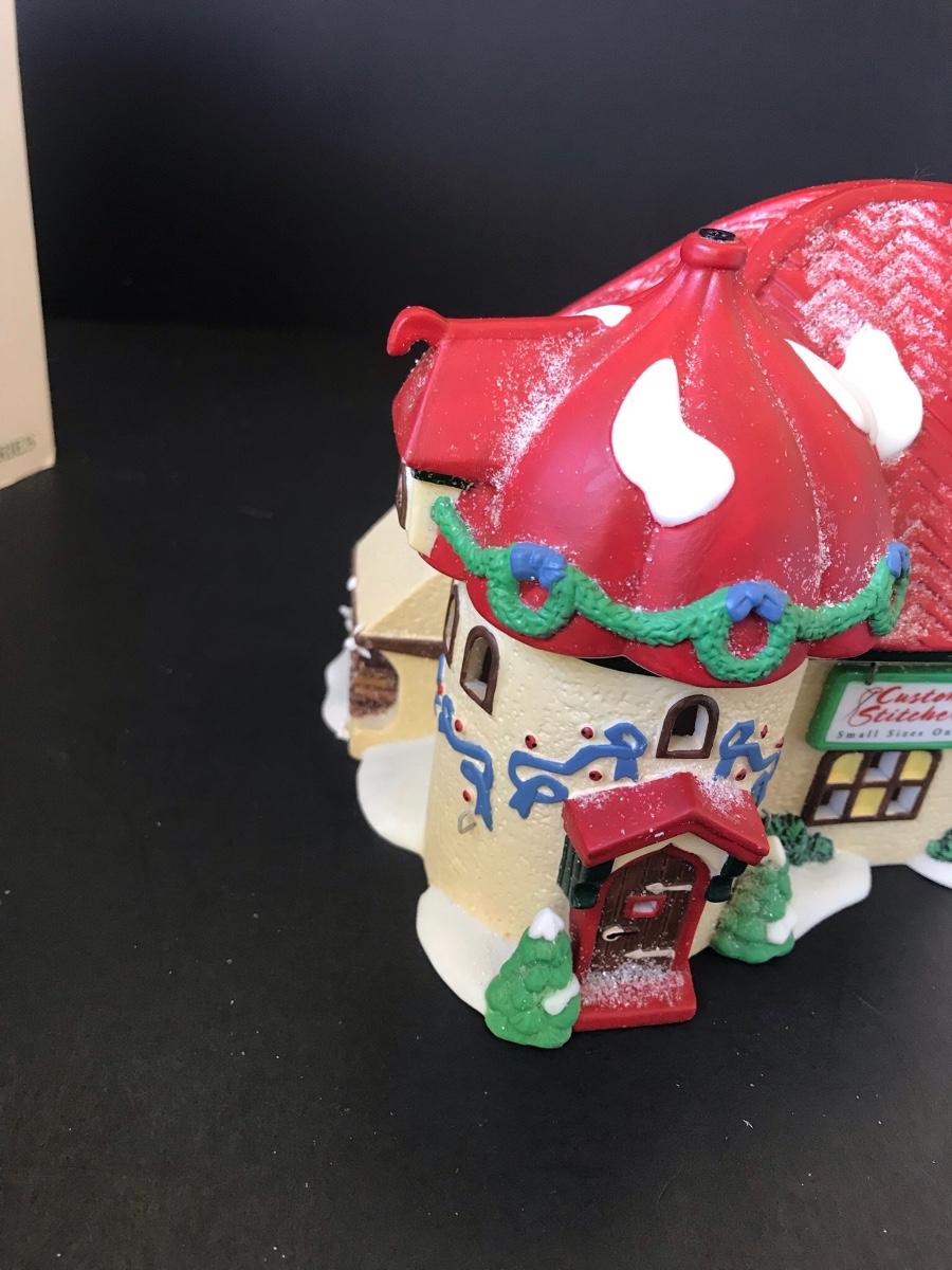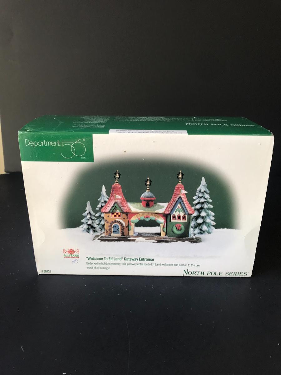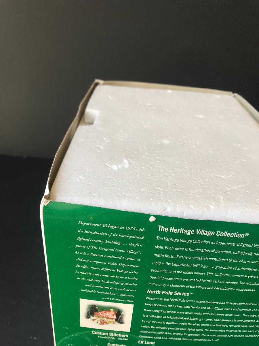 Four Department 56 Christmas Display Collectibles - Welcome to Elfland, Mitten Manor, Beard Bros. Sleigh Wash, and Custom Stitchers. All Holiday items in this auction are as-seen. The client collected a lot of holiday pieces and some are new in box, some were displayed once and come with original box, and some have been displayed and come with no box. They are all pre-owned in some fashion and have been stored in an attic or on shelf in library. Please see all pictures. The pictures show condition, measurements if taken, and what is included in the lot. Due to the large amount that we photograph and the time frame, we are not always able to take measurements. All items unless noted, are pre-owned and have been used. Thank you