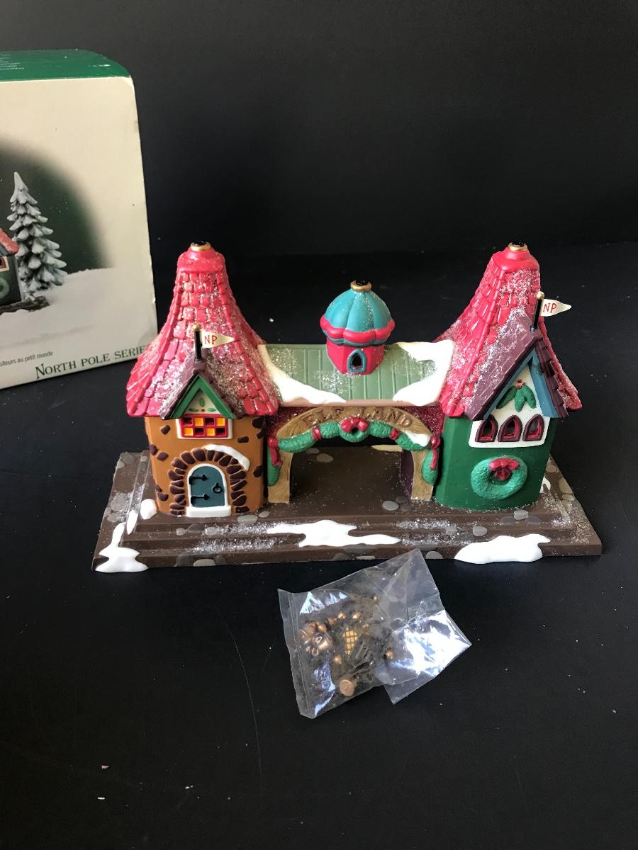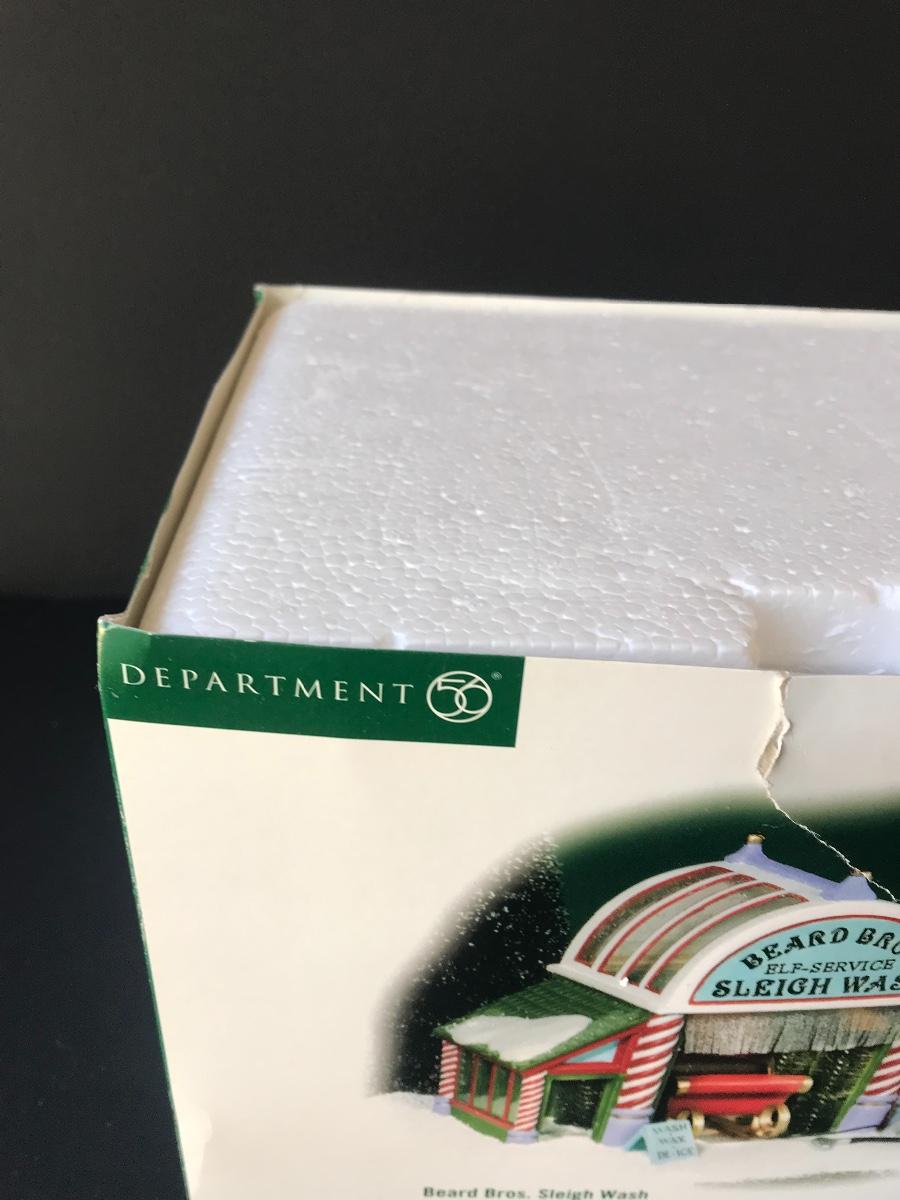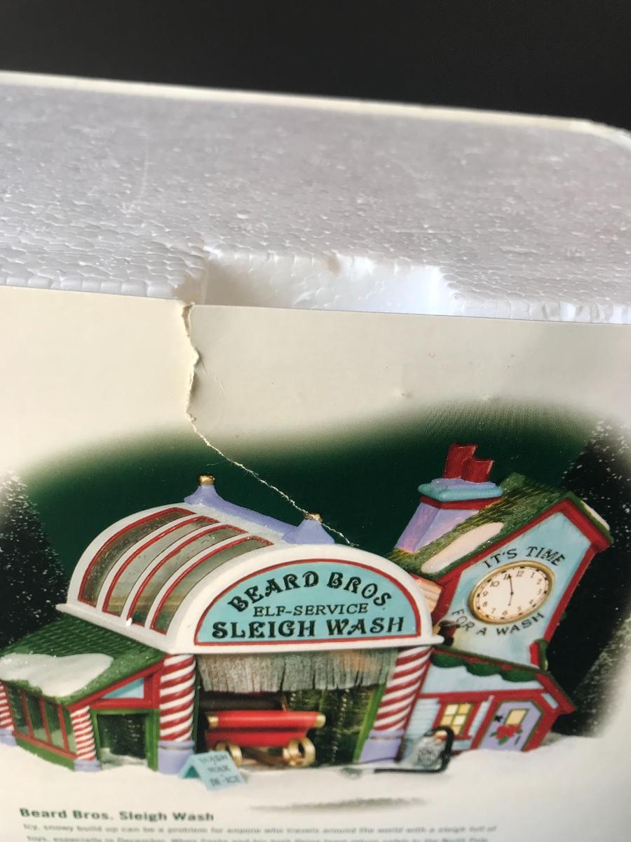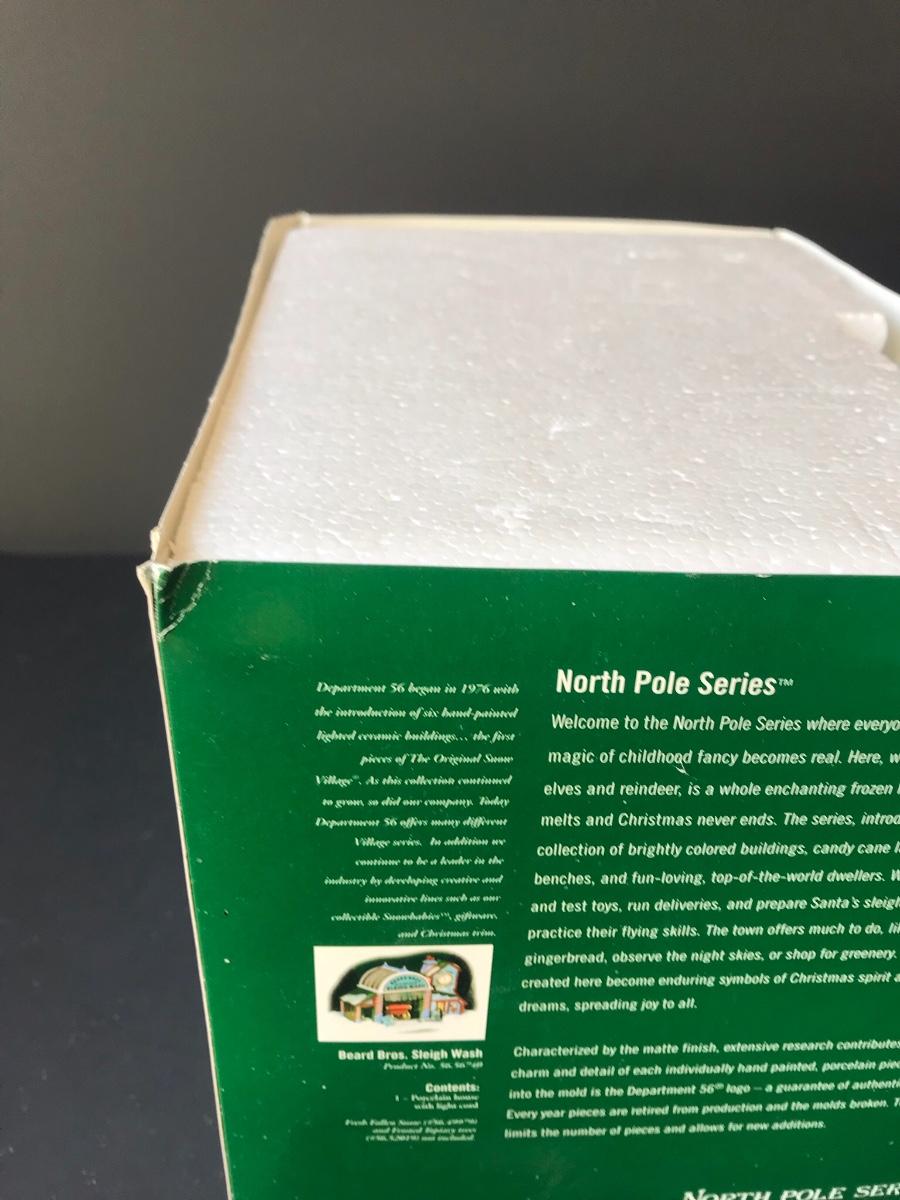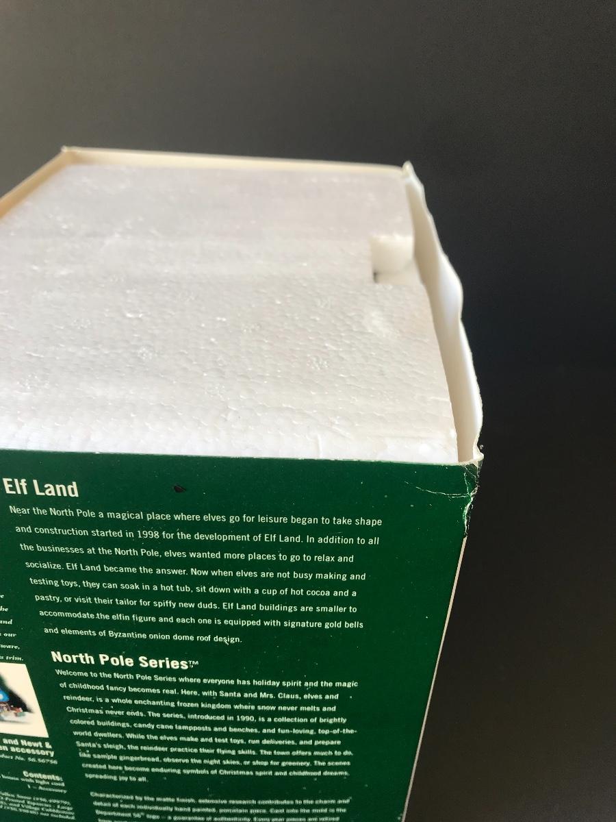 Four Department 56 Christmas Display Collectibles - Welcome to Elfland, Mitten Manor, Beard Bros. Sleigh Wash, and Custom Stitchers. All Holiday items in this auction are as-seen. The client collected a lot of holiday pieces and some are new in box, some were displayed once and come with original box, and some have been displayed and come with no box. They are all pre-owned in some fashion and have been stored in an attic or on shelf in library. Please see all pictures. The pictures show condition, measurements if taken, and what is included in the lot. Due to the large amount that we photograph and the time frame, we are not always able to take measurements. All items unless noted, are pre-owned and have been used. Thank you