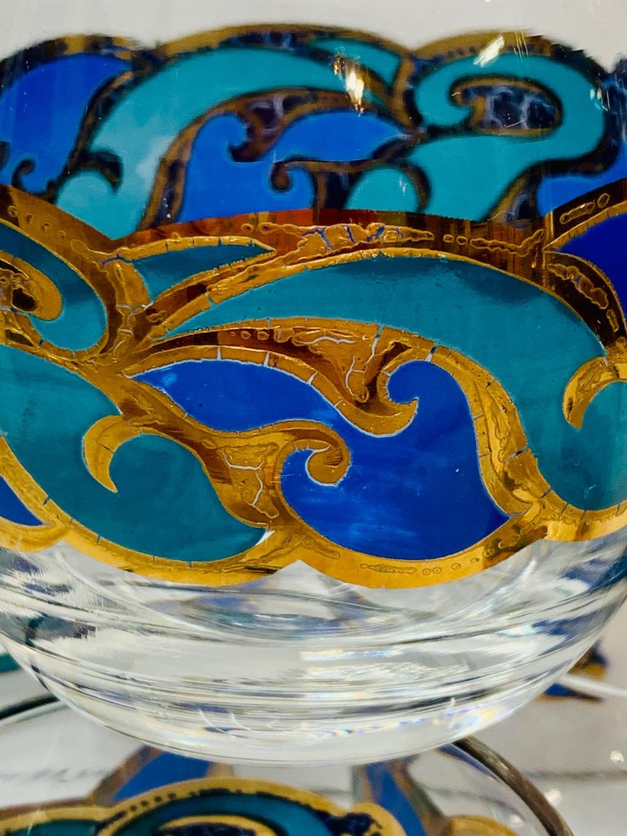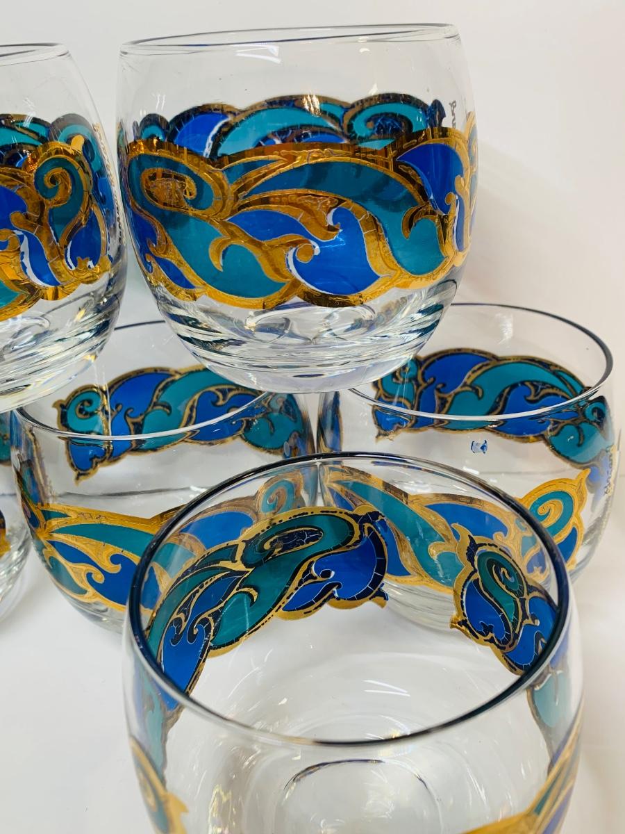 Gorgeous set of MCM glasses with nice and bright colors. They are in good overall condition, some cracking in the coloring/gold (see pictures). Please see all pictures as they are the best representation of the items. The pictures show condition, measurements if taken, and what is included in the lot. Due to the large amount that we photograph and the time frame, we are not always able to take measurements. All items unless noted, are pre-owned and have been used. If you purchased furniture, you must bring help. We do not allow one person to carry large furniture out on their own. Bring help, tools and a truck for the safety of our client’s homes, and your personal safety. Company policy. Thank you.