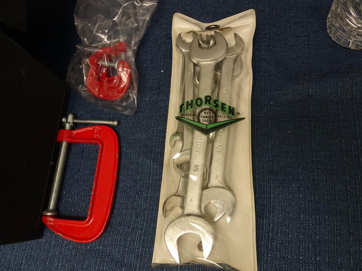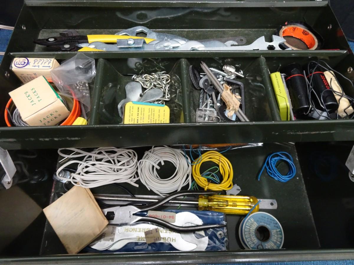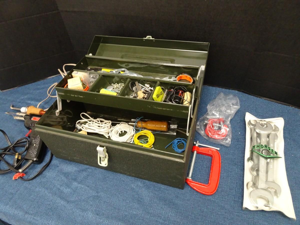 LOT 437  TOOL BOX, SOLDER GUN AND MISC TOOLS