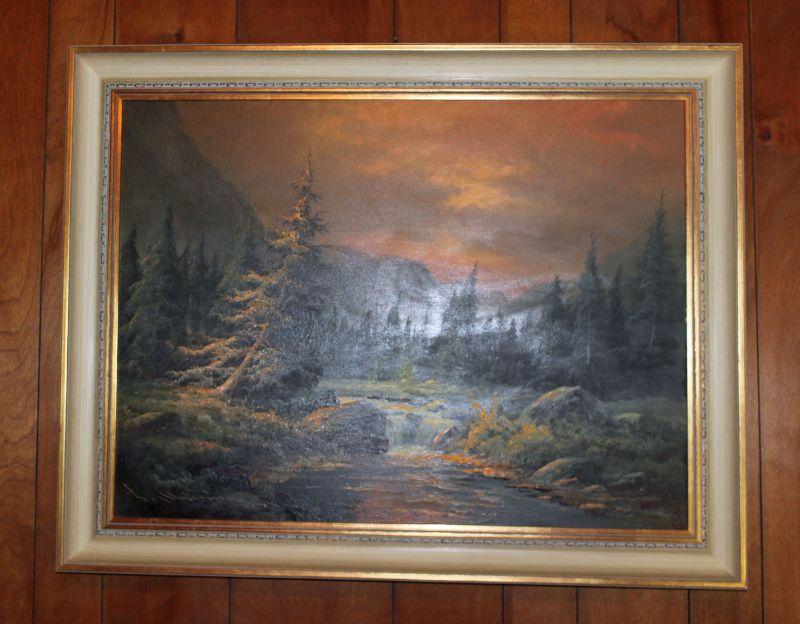 Probably European Mountain Scene oil on canvas 37" x 29"