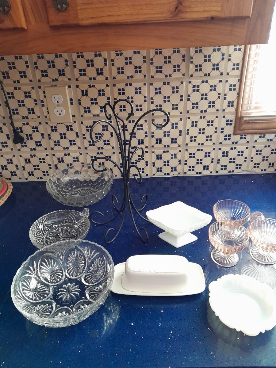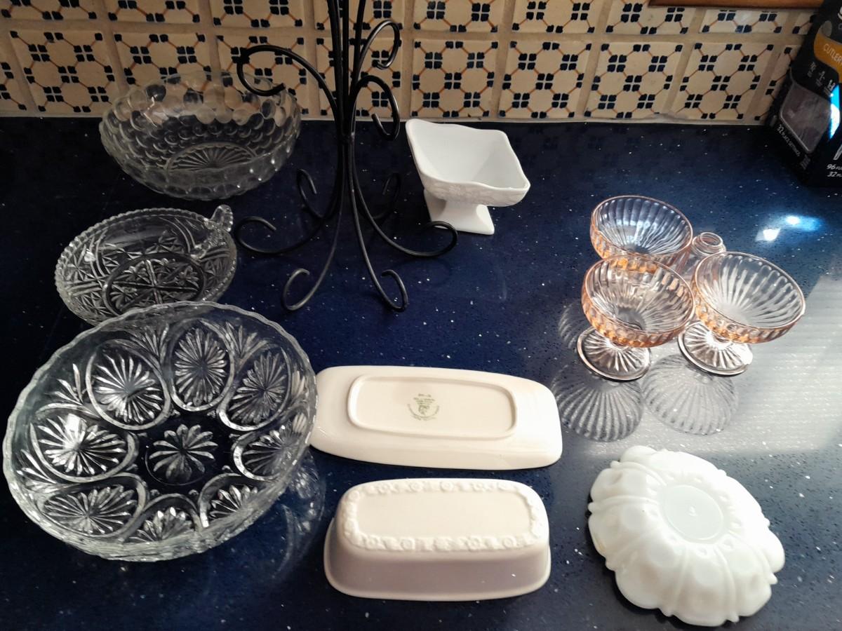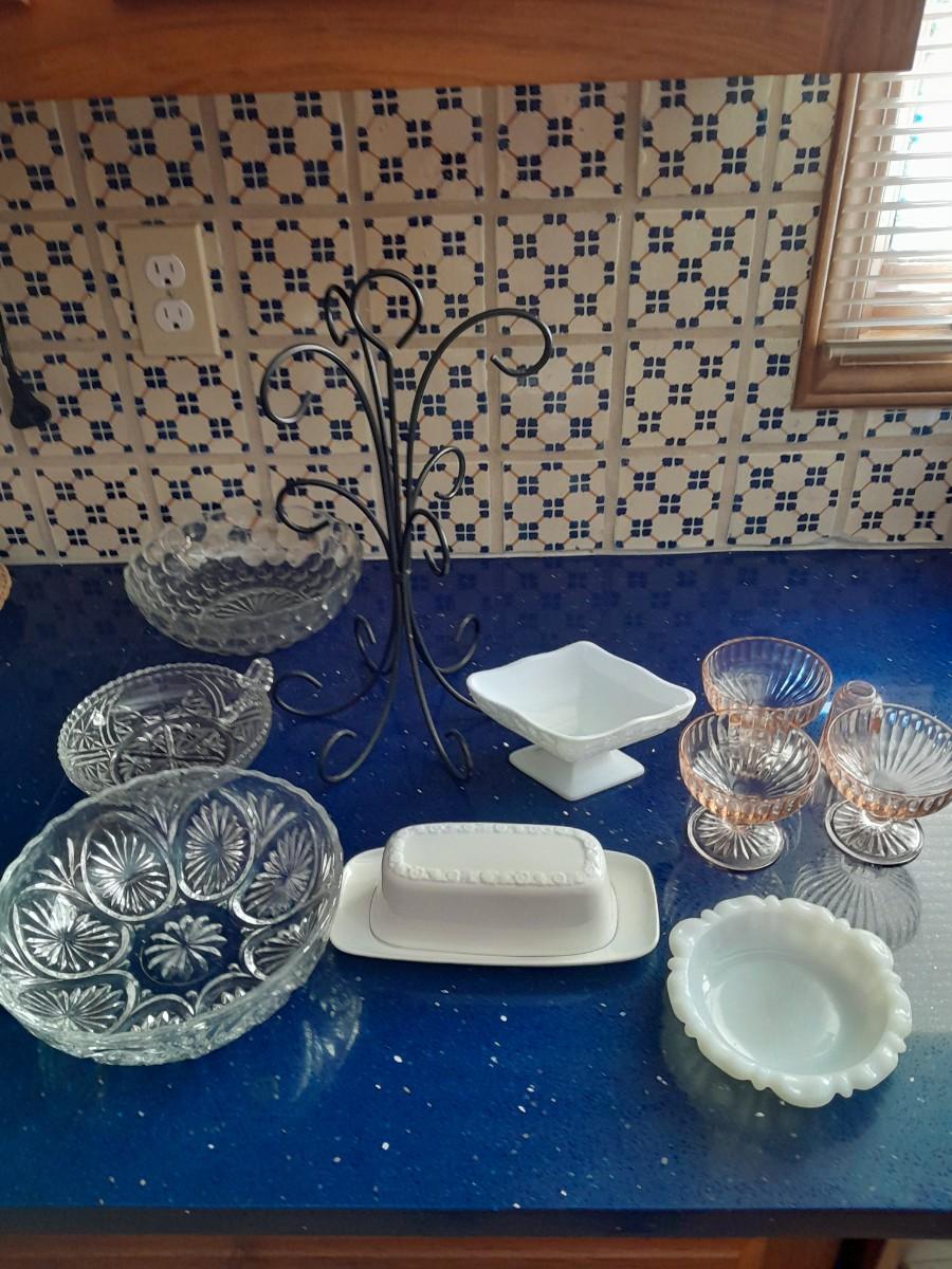 PINK DEPRESSION GLASS GLASSES AND VARIETY OF KITCHENWARE