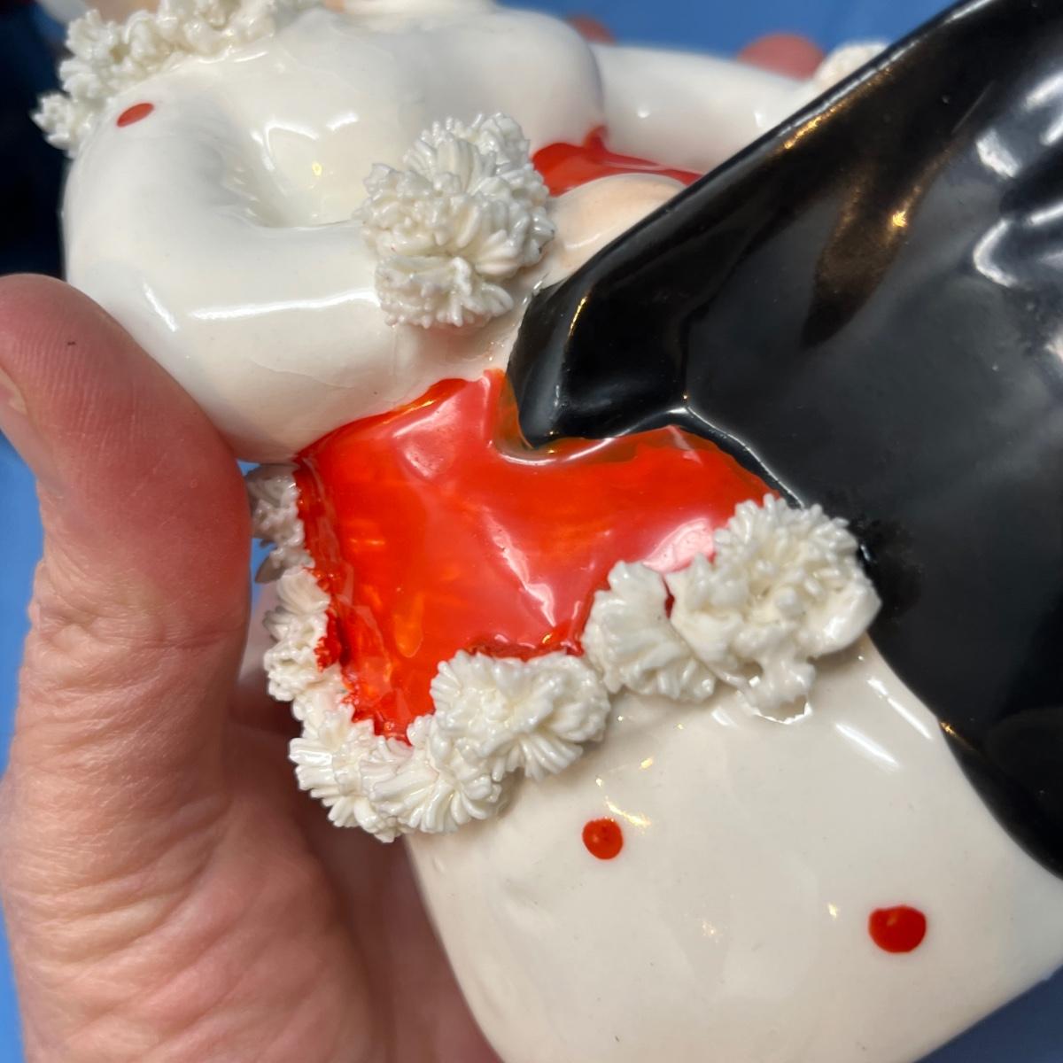 Spaghetti accents. Santa looks to have been re-painted on his stomach.