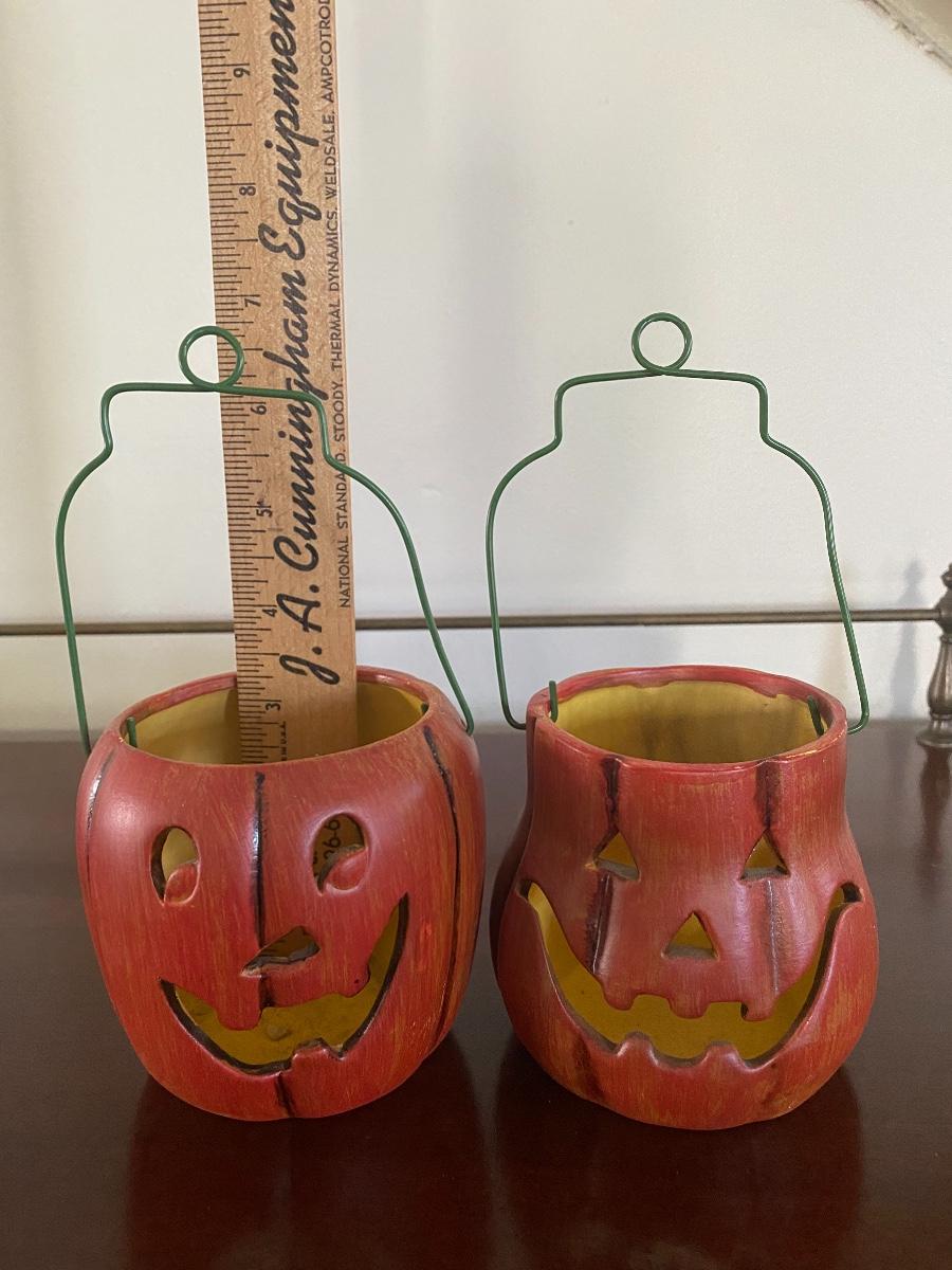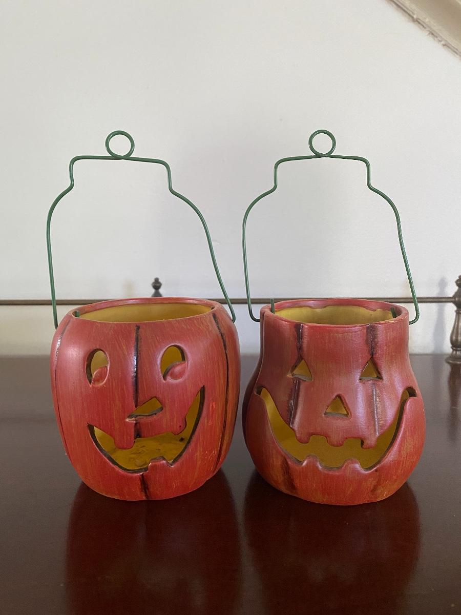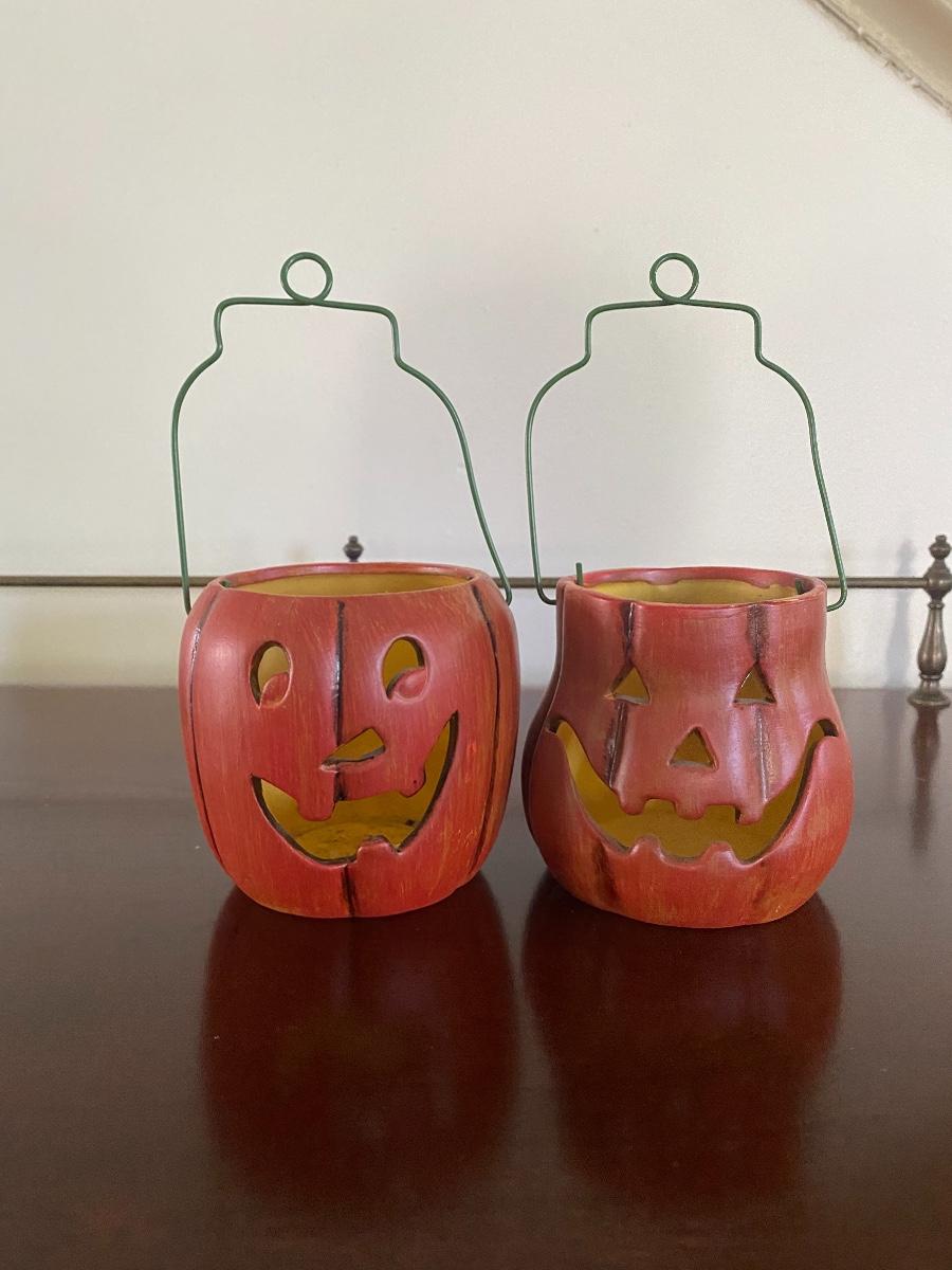 Lot includes two jack-o-lantern candle holders. Please see all pictures as they are the best representation of the items. The pictures show condition, measurements if taken, and what is included in the lot. Due to the large amount that we photograph and the time frame, we are not always able to take measurements. All items unless noted, are pre-owned and have been used. If you purchased furniture, you must bring help. We do not allow one person to carry large furniture out on their own. Bring help, tools and a truck for the safety of our client’s homes, and your personal safety. Company policy. Thank you.