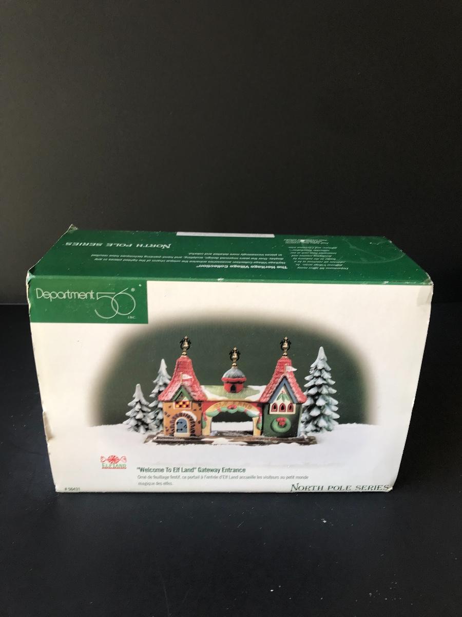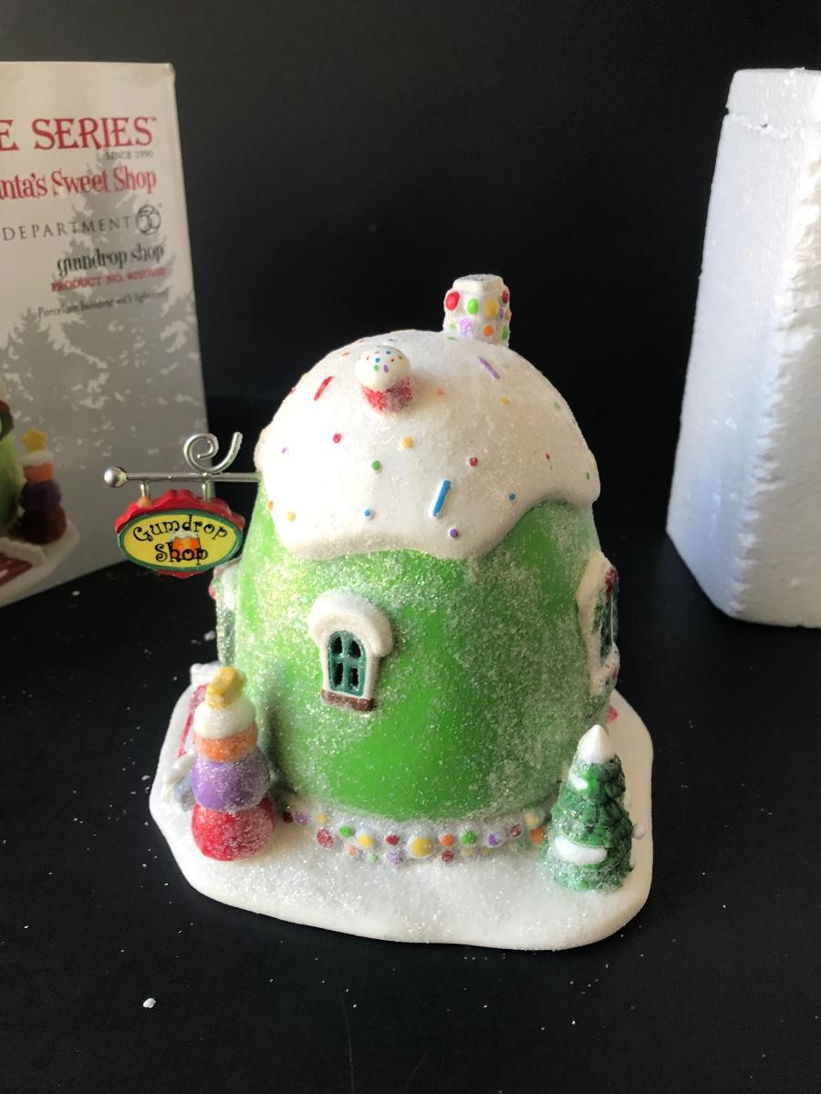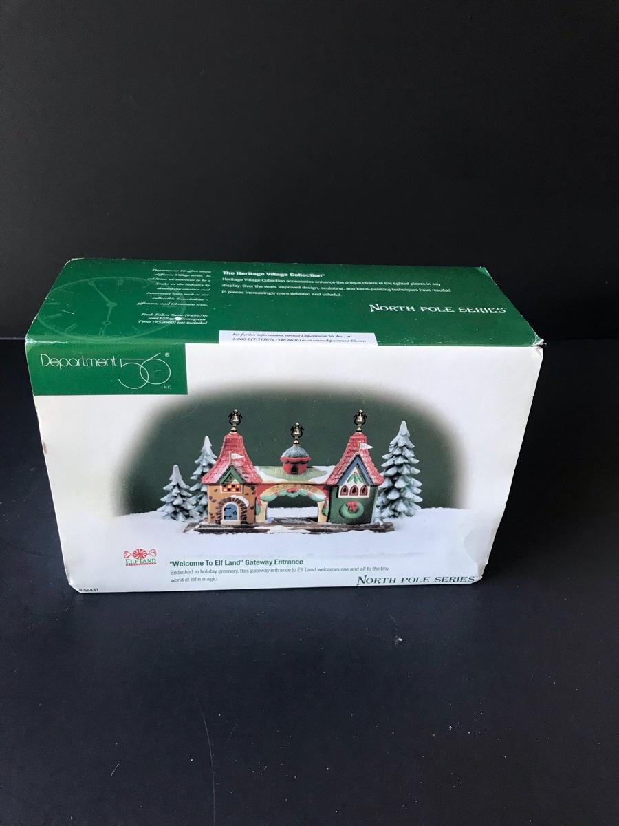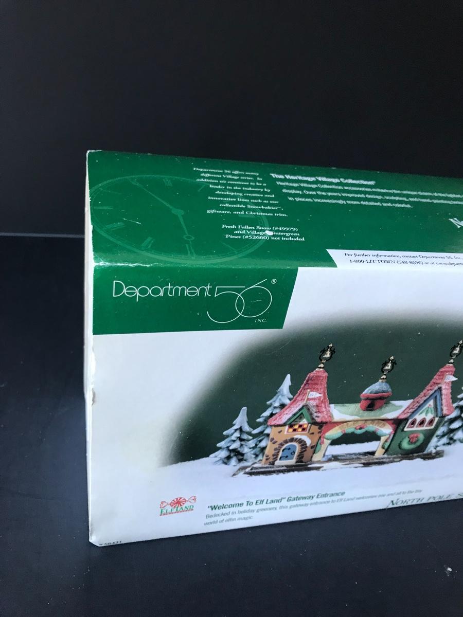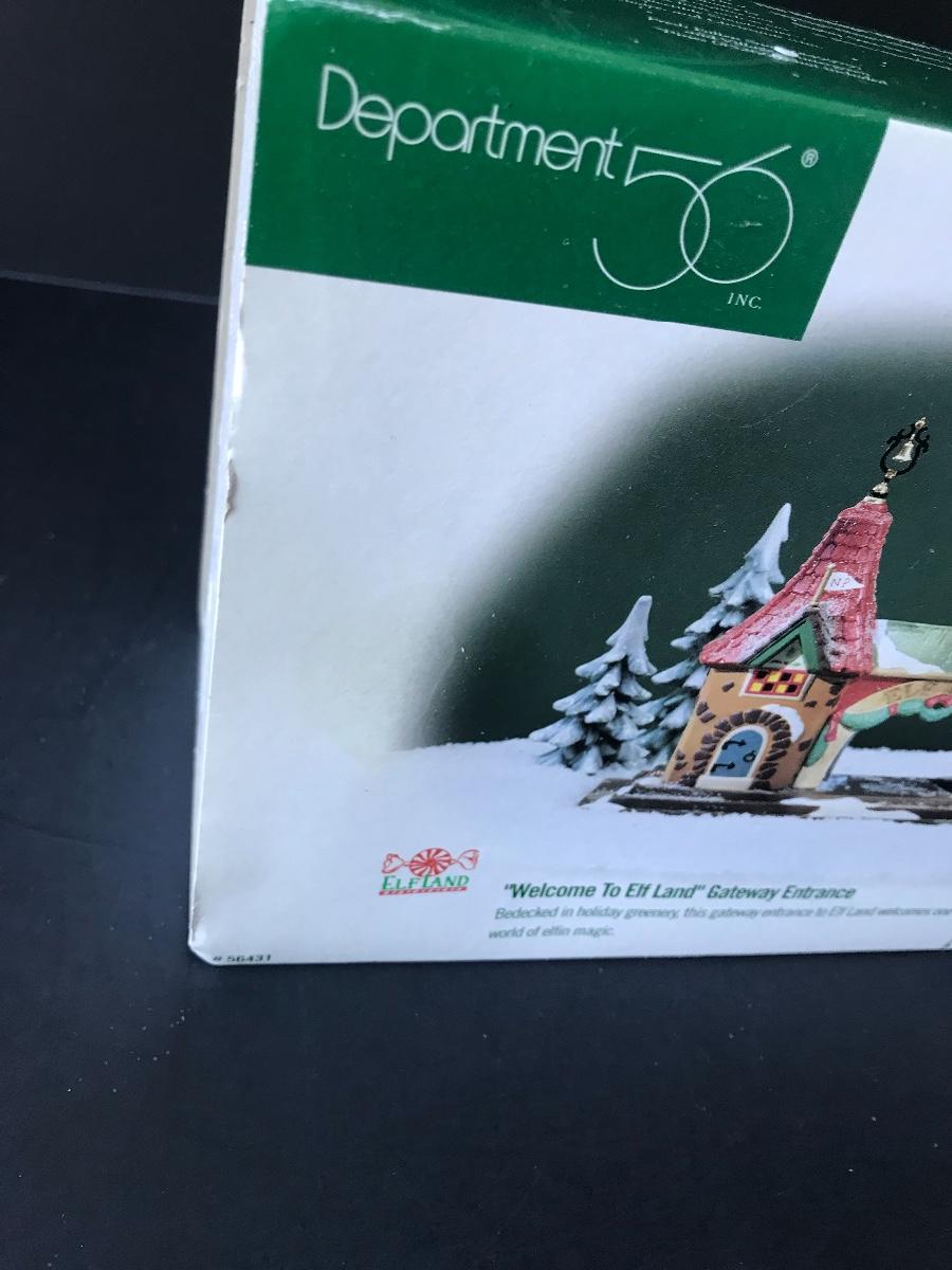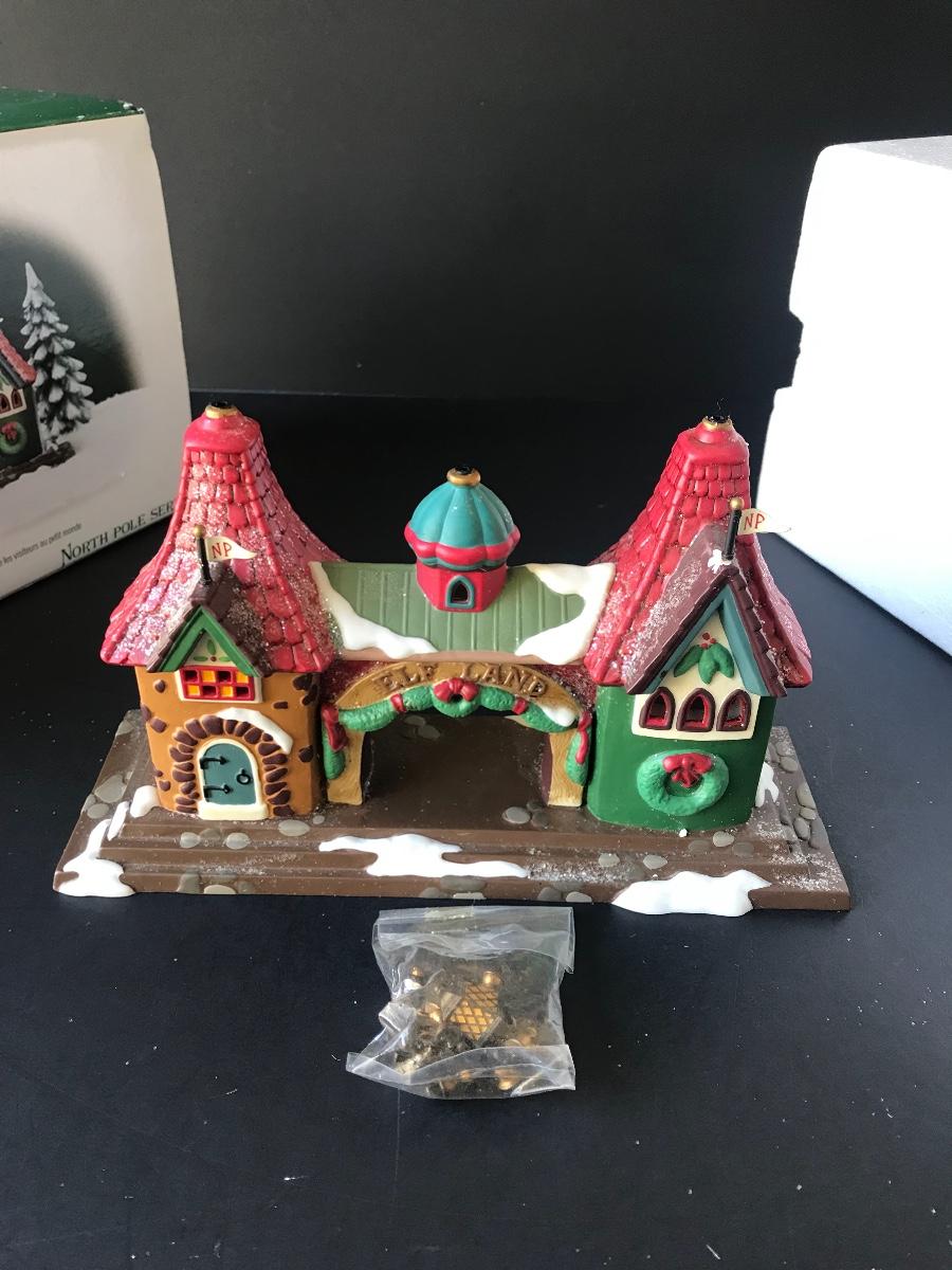 Department 56 Christmas Collectibles - Lot of 3 - Welcome To Elfland, Santa's Sweet Shop and Elf Bunkhouse. All Holiday items in this auction are as-seen. The client collected a lot of holiday pieces and some are new in box, some were displayed once and come with original box, and some have been displayed and come with no box. They are all pre-owned in some fashion and have been stored in an attic or on shelf in library. Please see all pictures. The pictures show condition, measurements if taken, and what is included in the lot. Due to the large amount that we photograph and the time frame, we are not always able to take measurements. All items unless noted, are pre-owned and have been used. Thank you