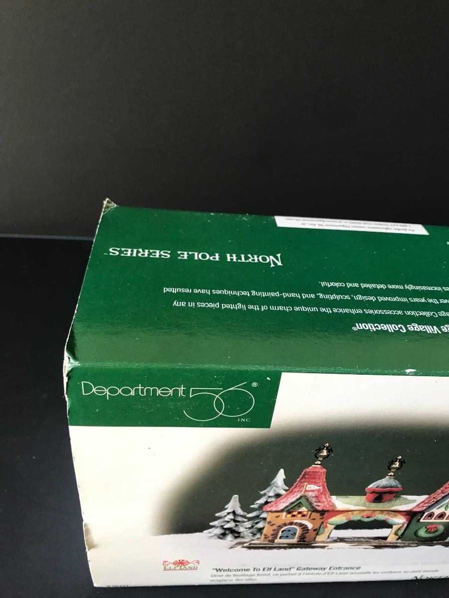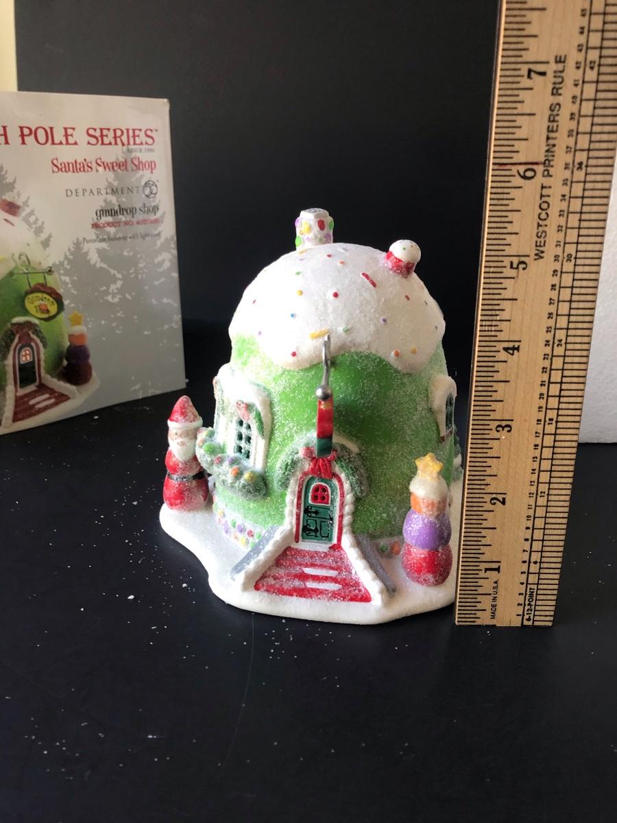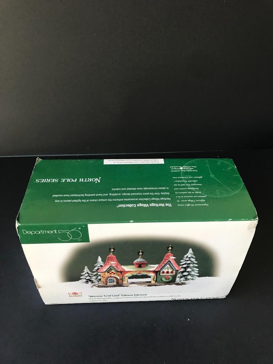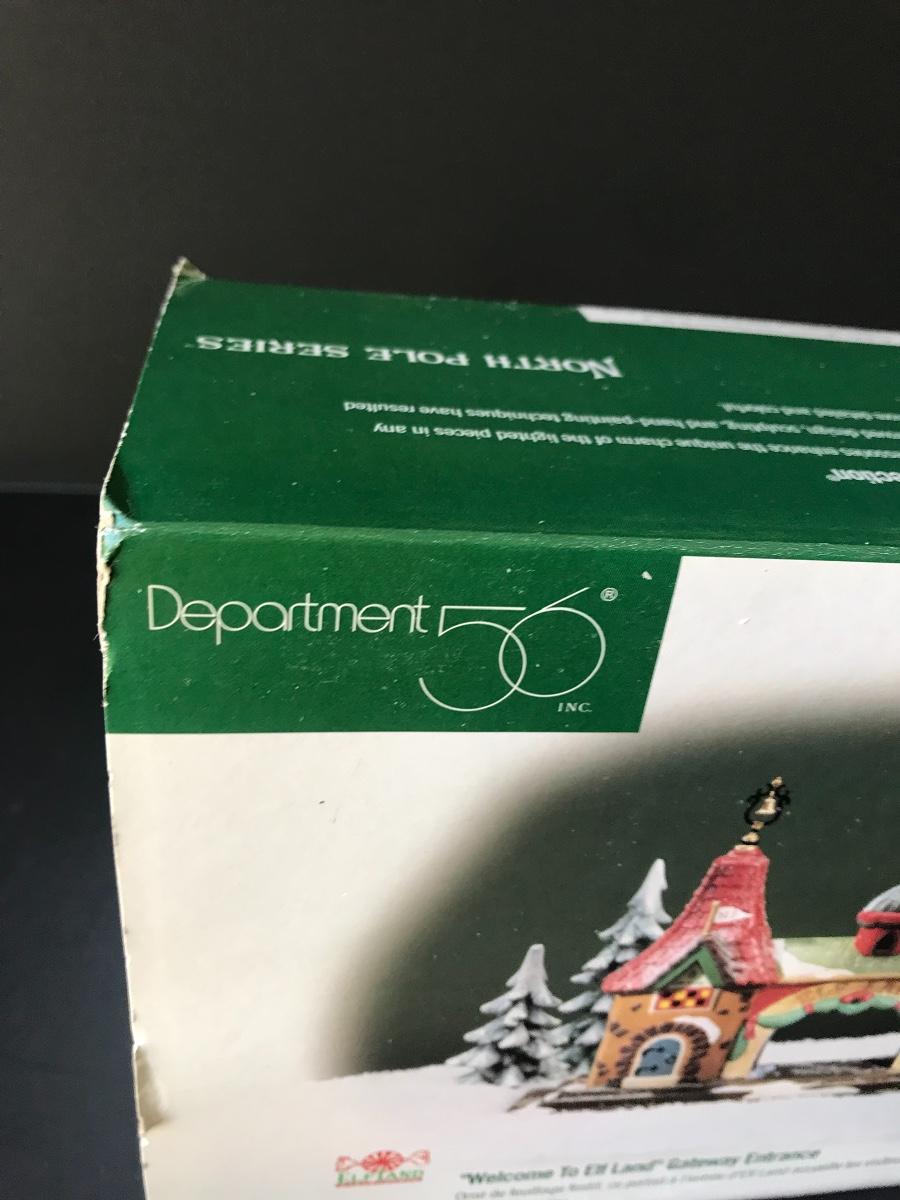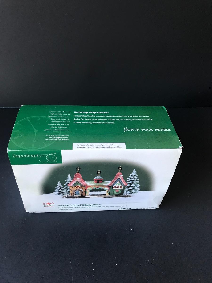 Department 56 Christmas Collectibles - Lot of 3 - Welcome To Elfland, Santa's Sweet Shop and Elf Bunkhouse. All Holiday items in this auction are as-seen. The client collected a lot of holiday pieces and some are new in box, some were displayed once and come with original box, and some have been displayed and come with no box. They are all pre-owned in some fashion and have been stored in an attic or on shelf in library. Please see all pictures. The pictures show condition, measurements if taken, and what is included in the lot. Due to the large amount that we photograph and the time frame, we are not always able to take measurements. All items unless noted, are pre-owned and have been used. Thank you