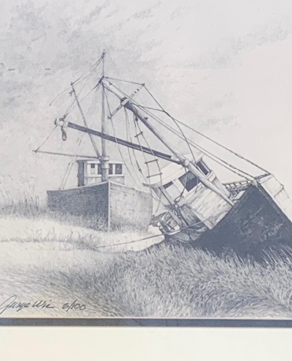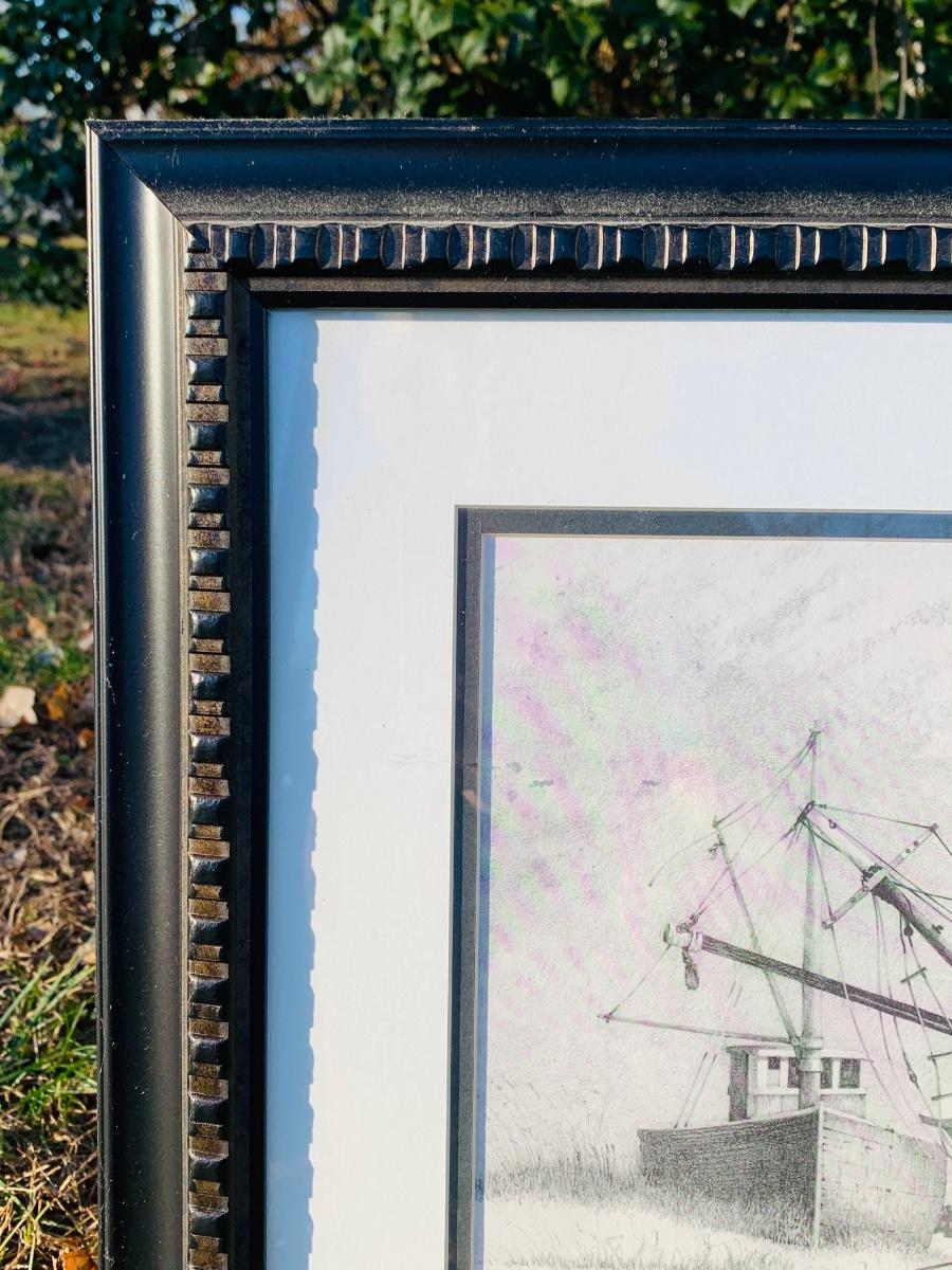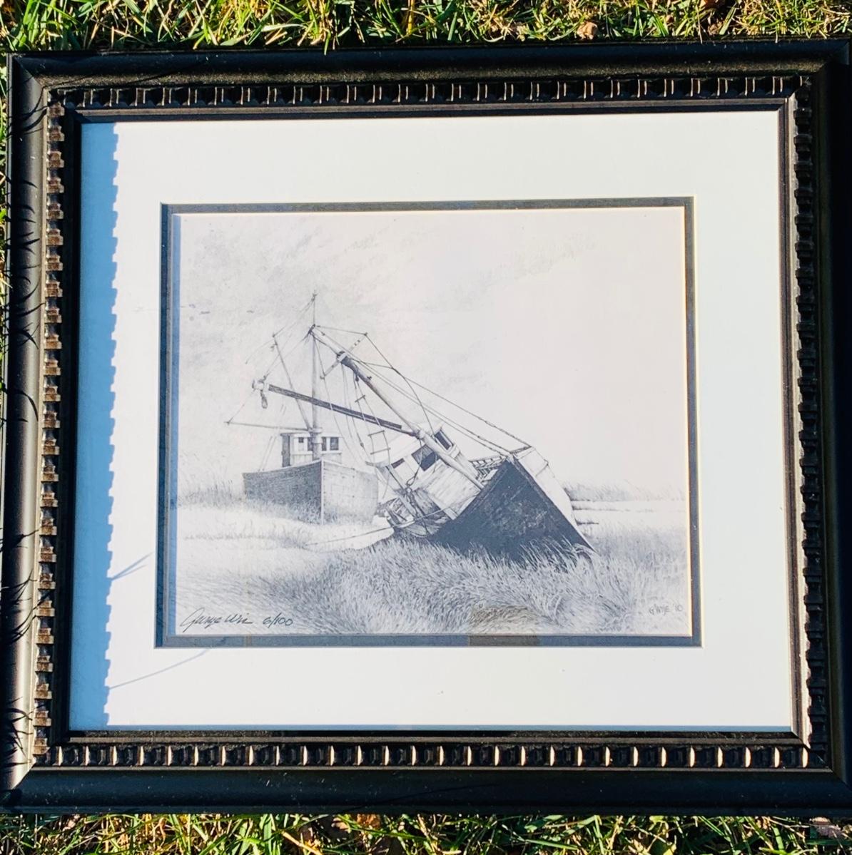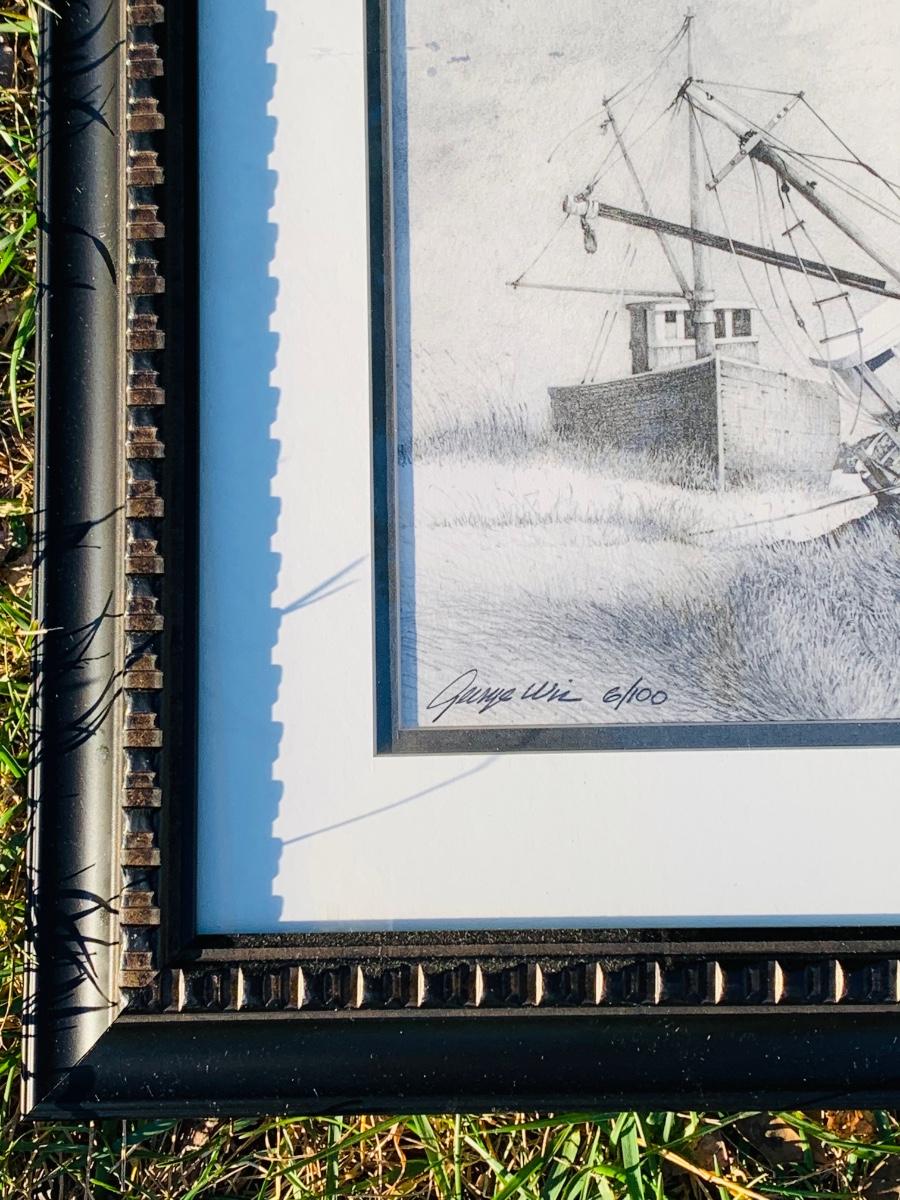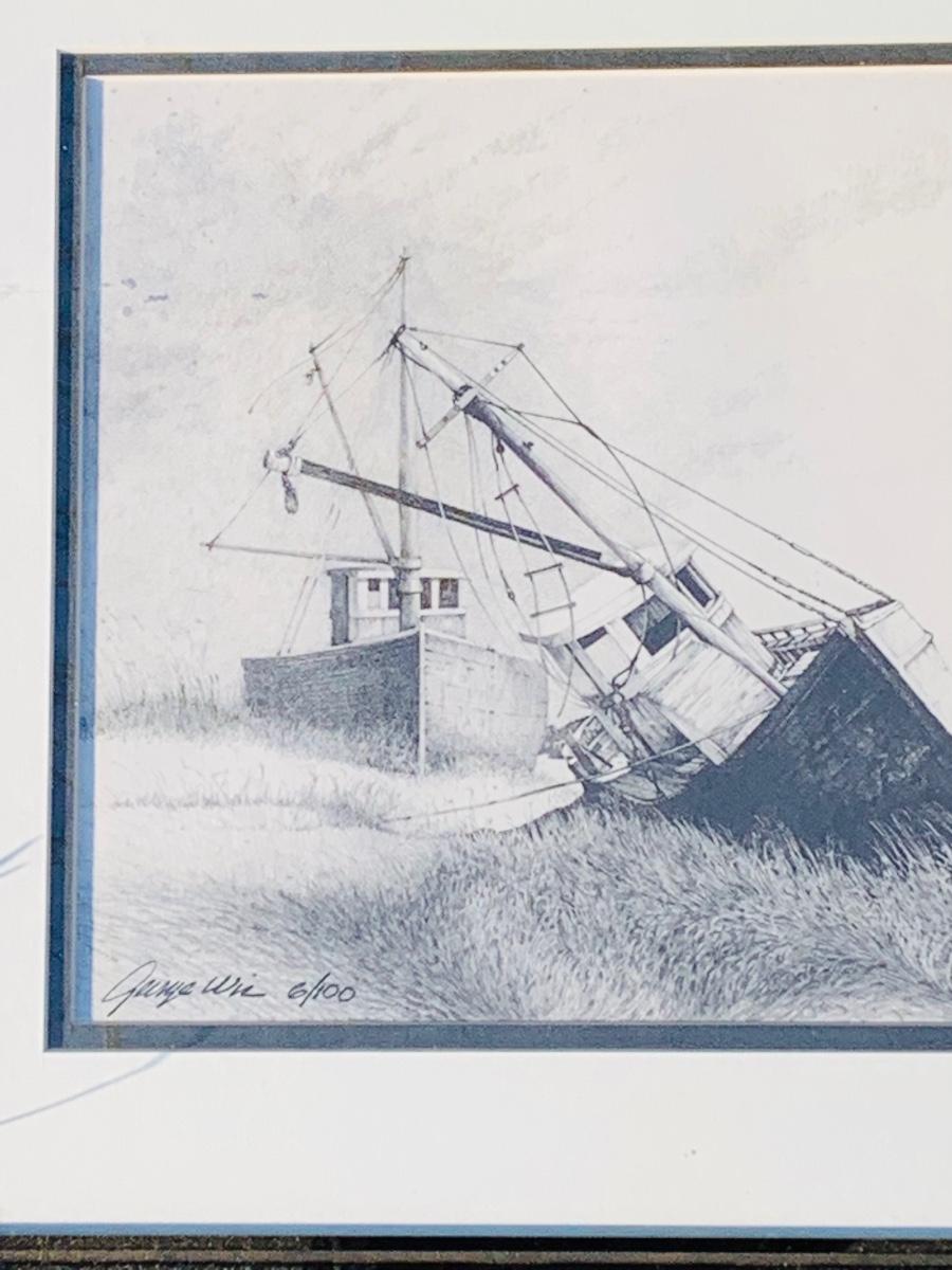 Nautical themed etching signed, numbered and dated along with an awesome rope/knotted versatile basket.