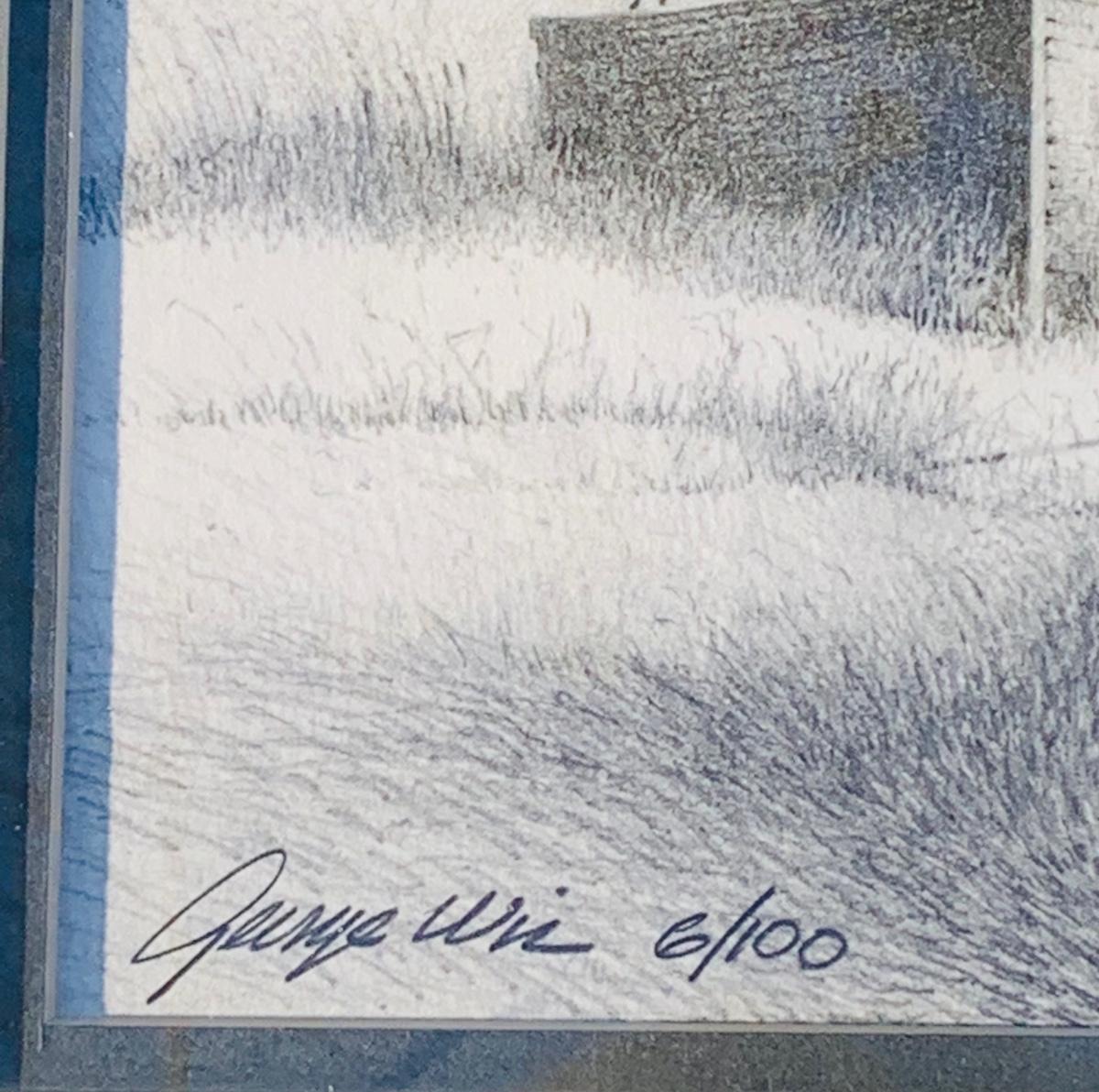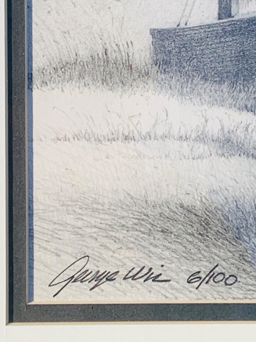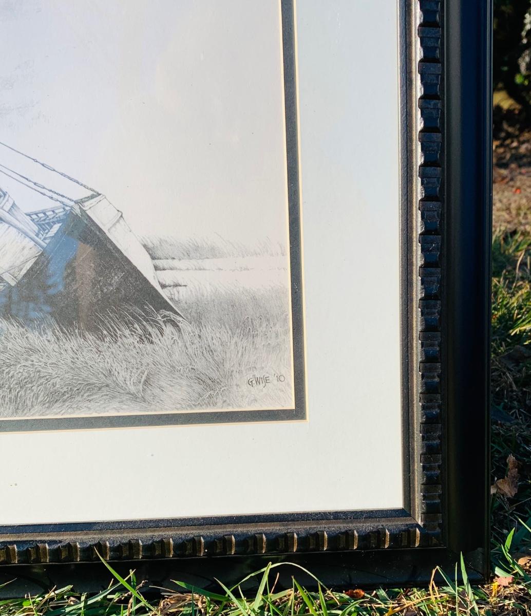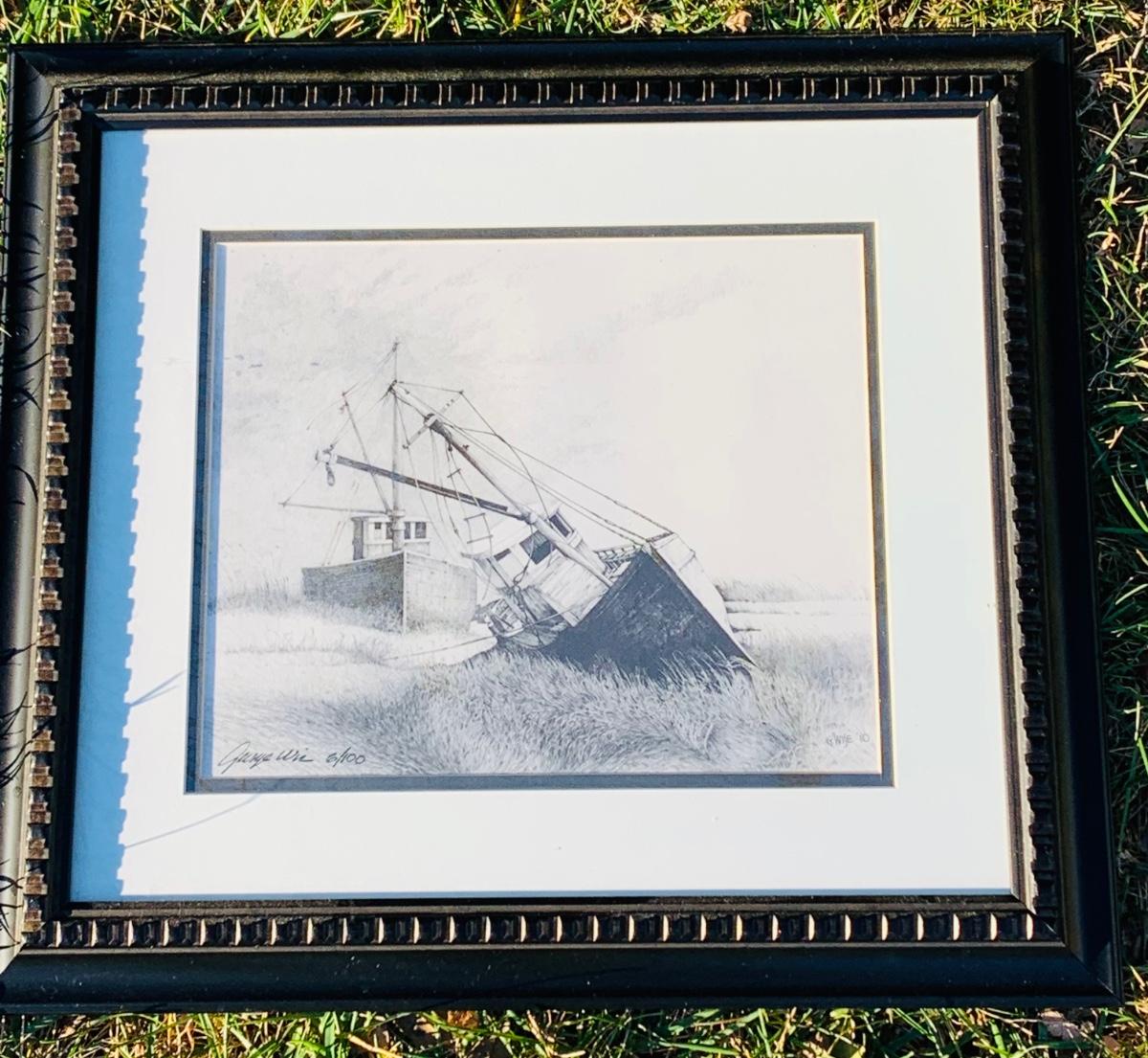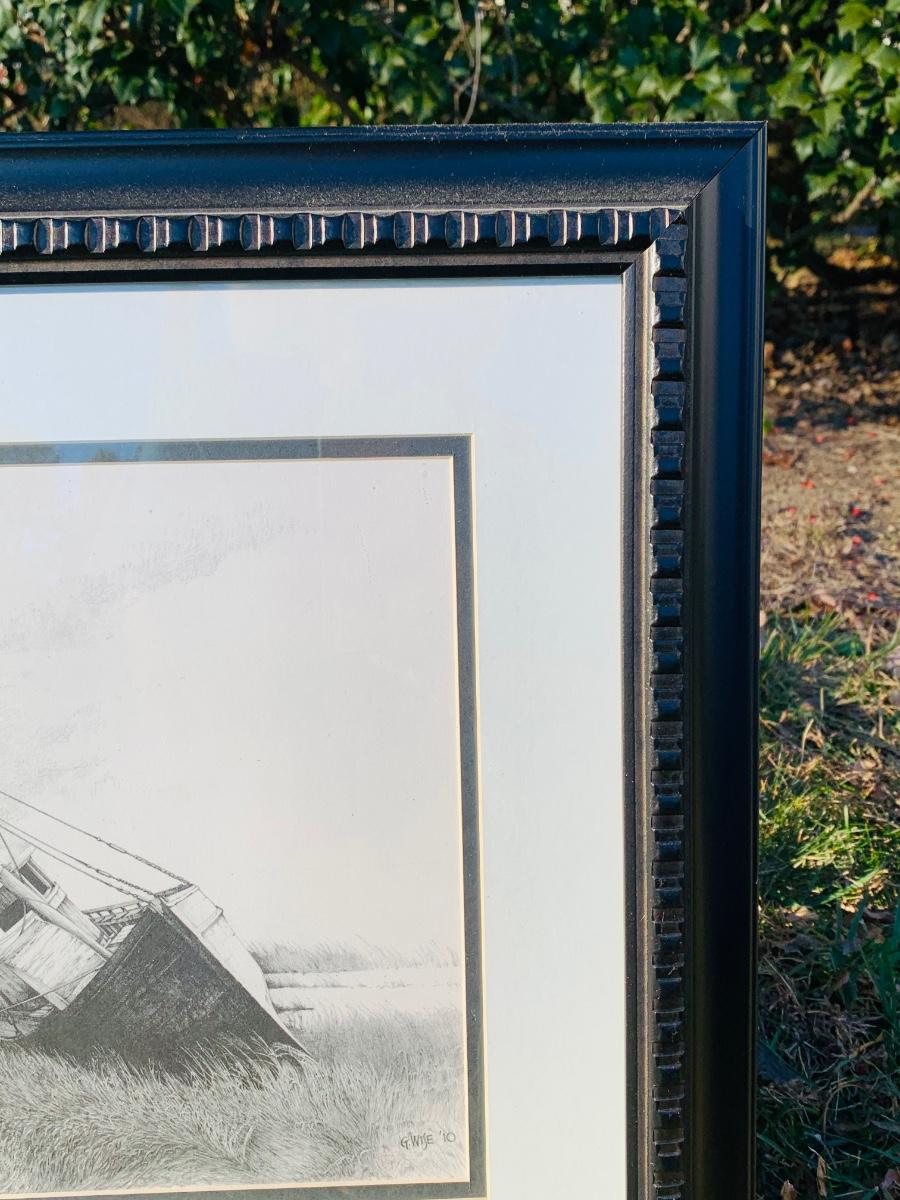 Nautical themed etching signed, numbered and dated along with an awesome rope/knotted versatile basket.