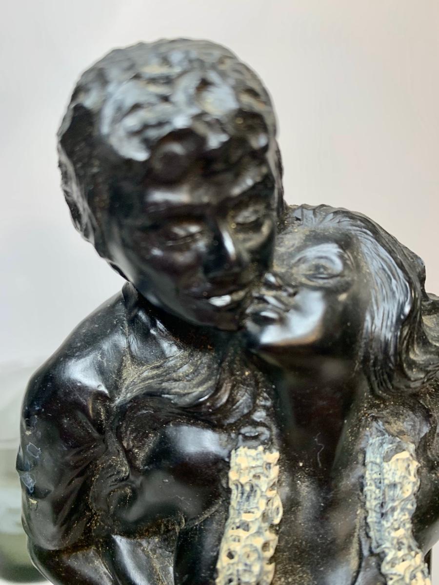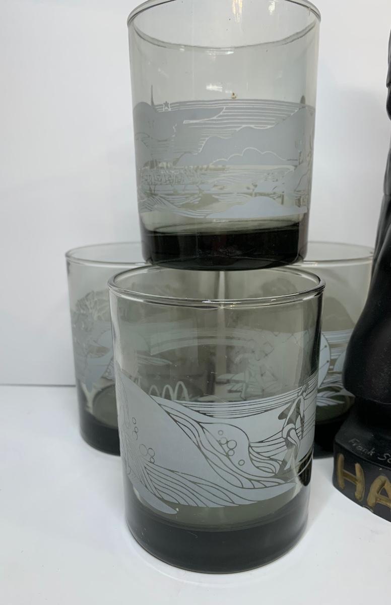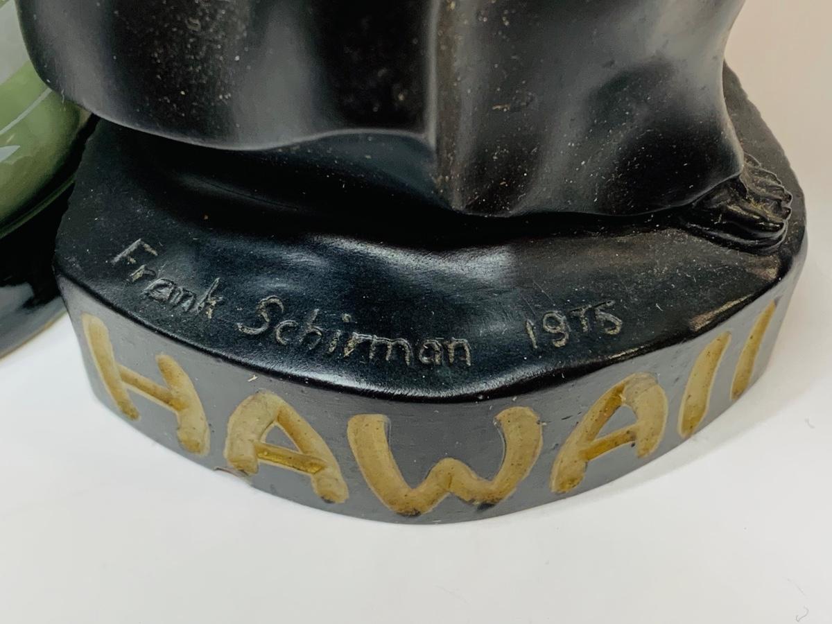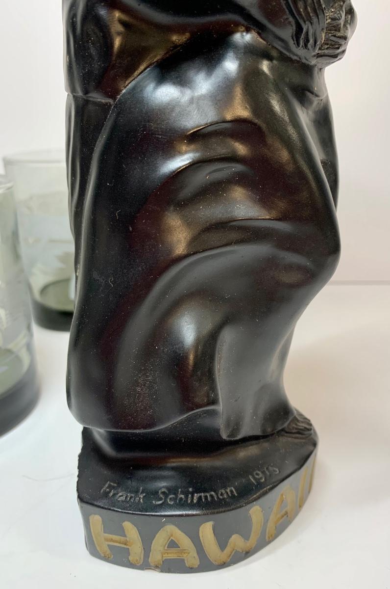 Lot 438: Vintage Black Coral Sculpture: "Pilialoha" & McDonald's Hawaii Glasses