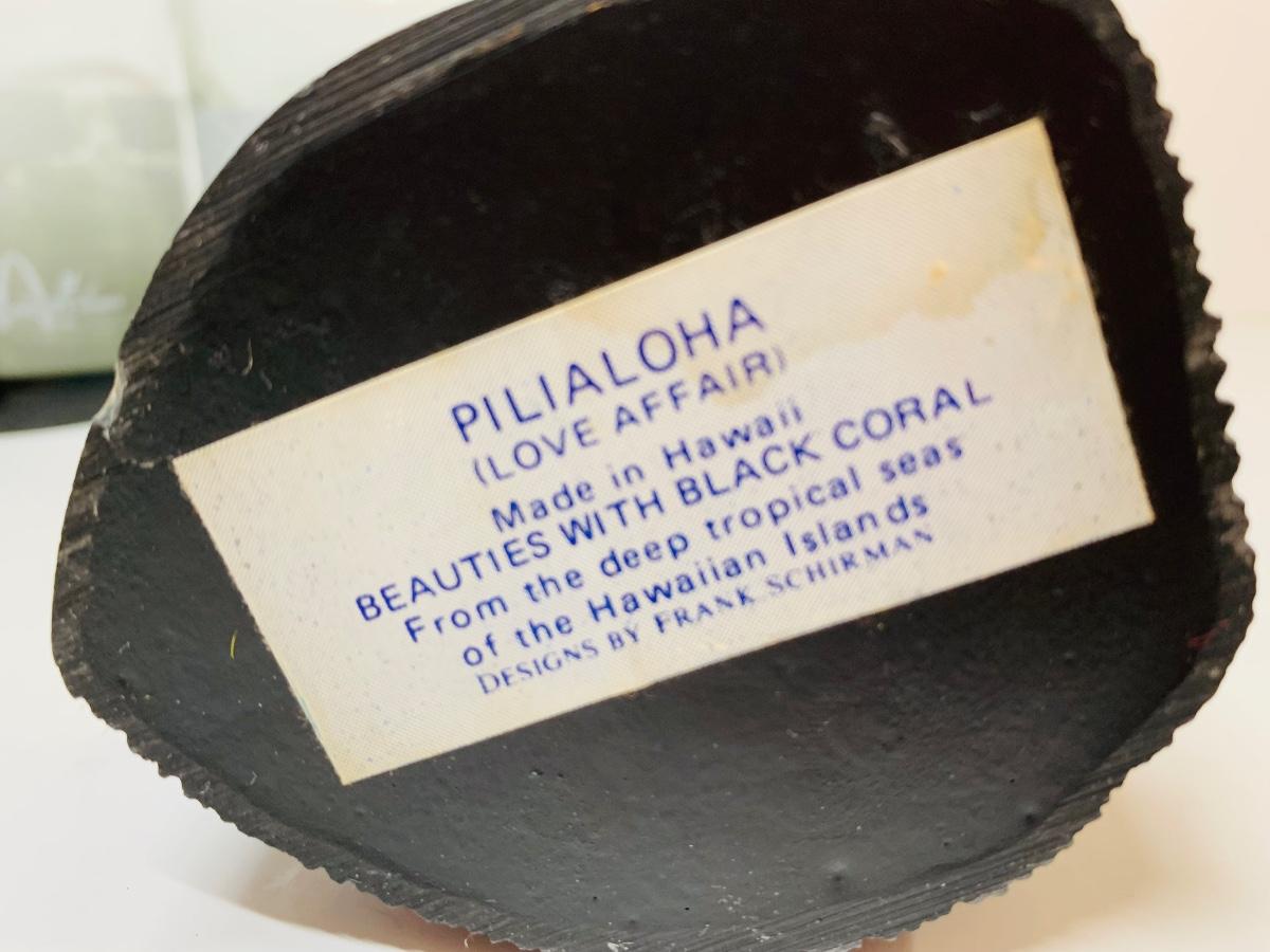 Lot 438:  Vintage Black Coral Sculpture: "Pilialoha" & McDonald's  Hawaii Glasses