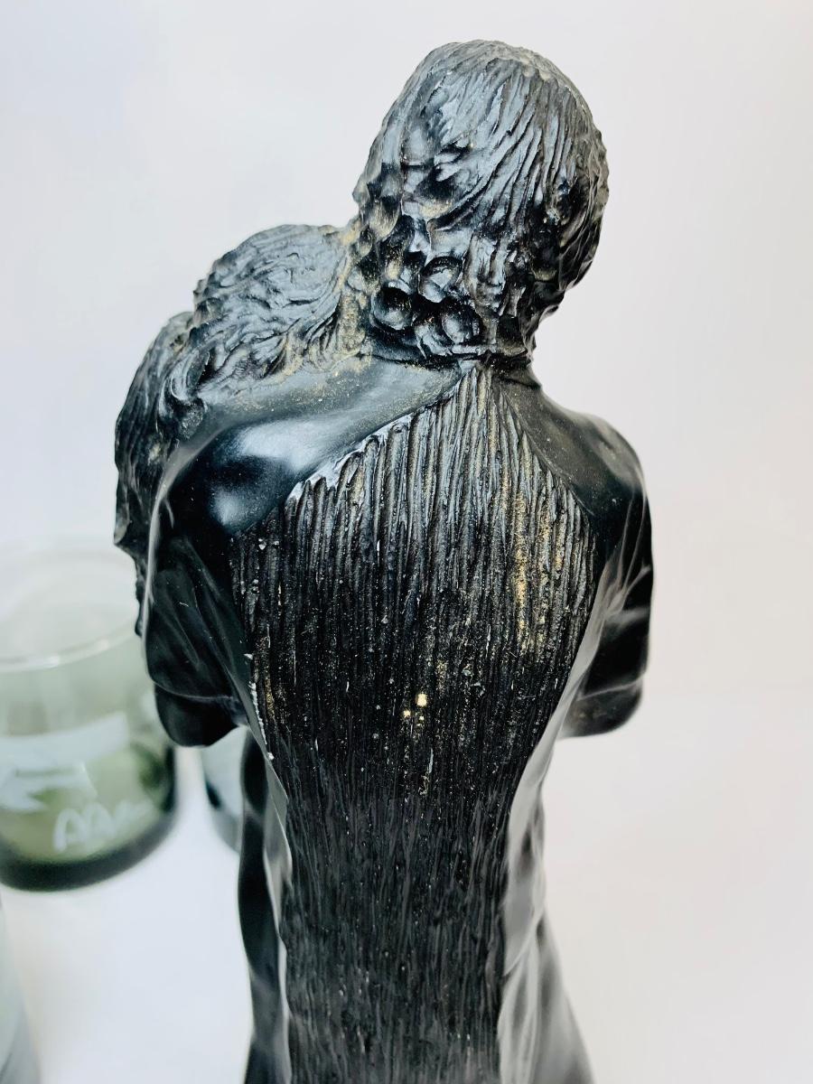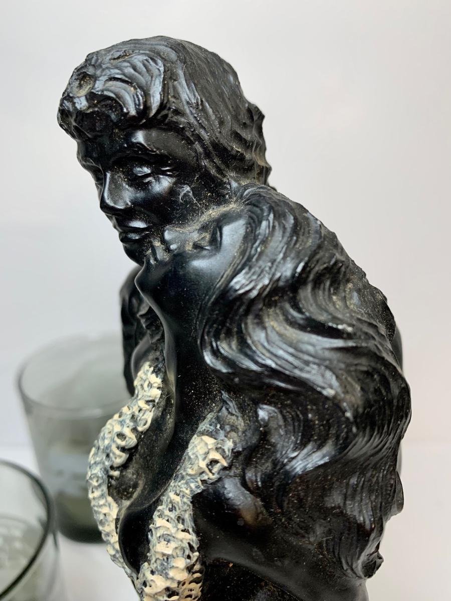 Beautiful black coral sculpture made in Hawaii designed by Frank Schirman. along with McDonald's Glasses "Hawaii"