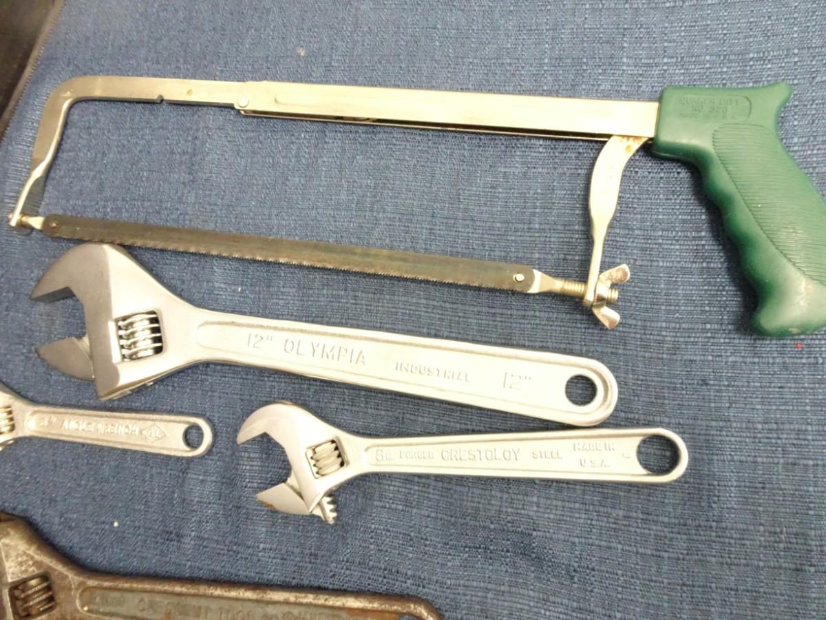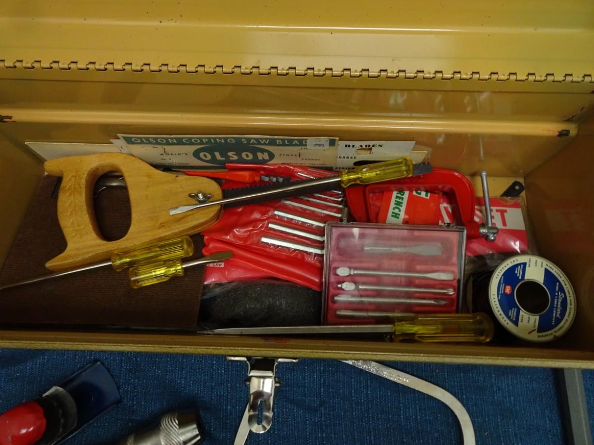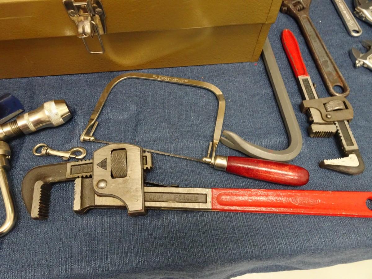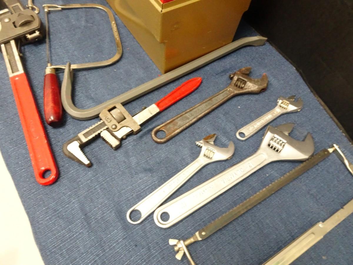 LOT 438 TOOL BOX, TOOLS AND WRENCHES