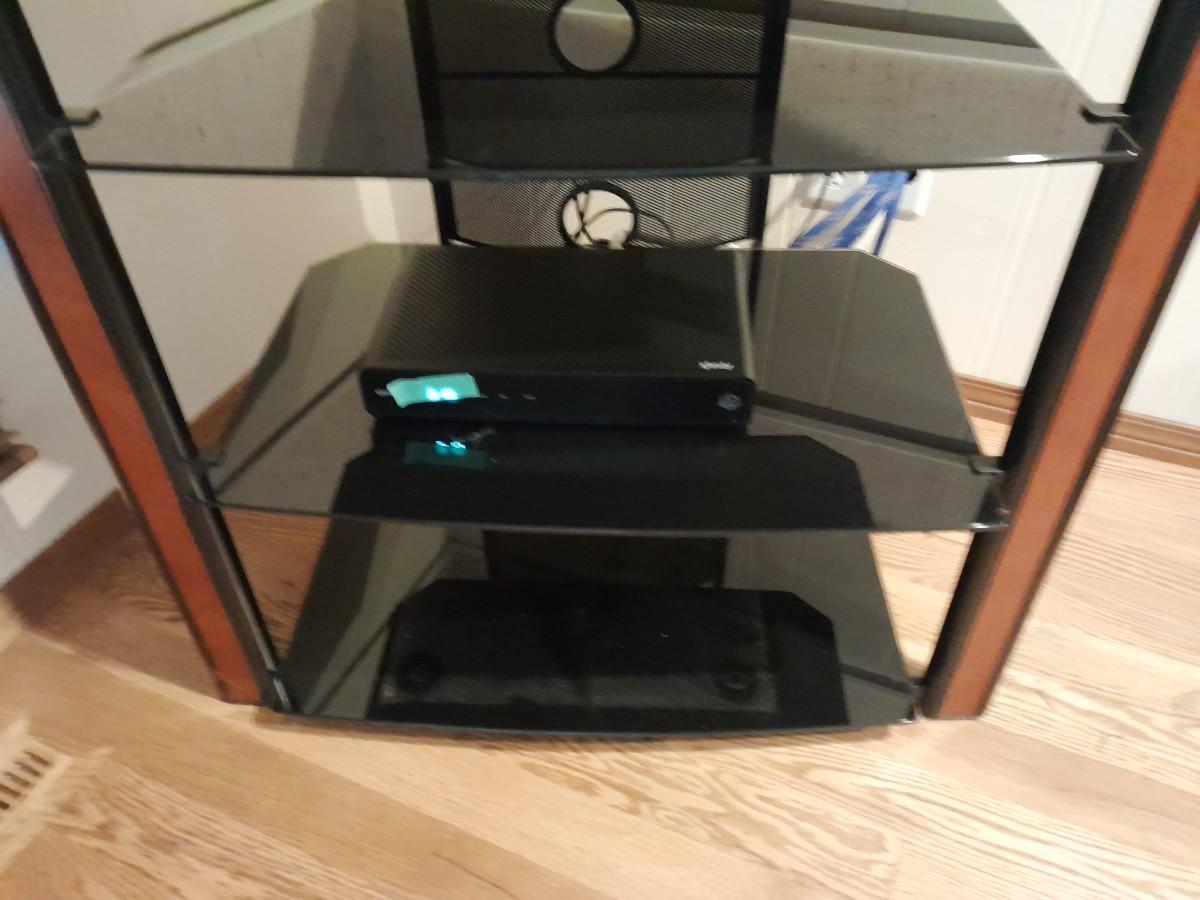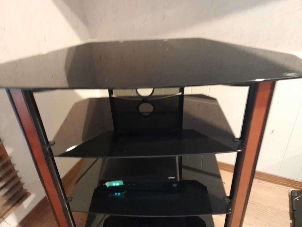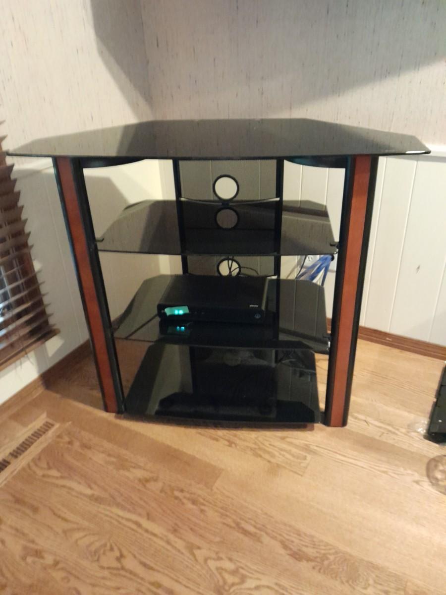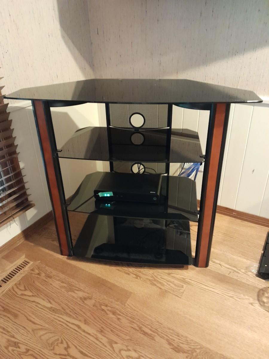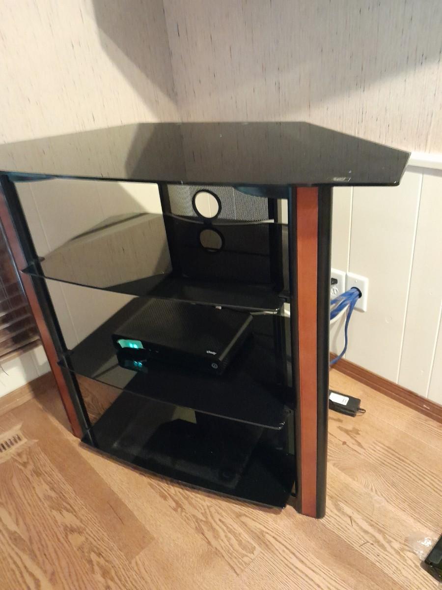 CORNER MEDIA CABINET WITH TEMPERED GLASS SHELVES (electronic device not included) 36" X 20" X 42"