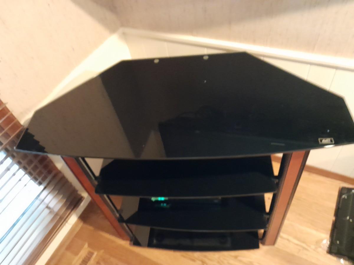 LOT 438 CORNER MEDIA CABINET WITH TEMPERED GLASS SHELVES