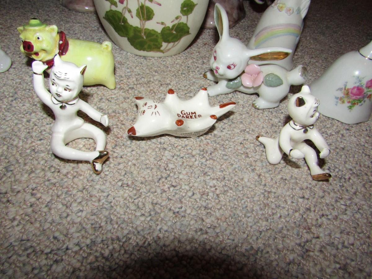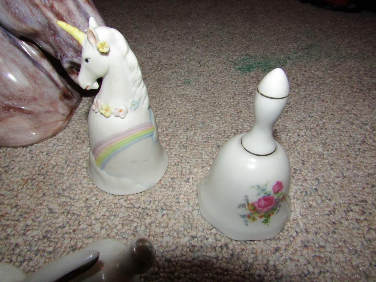 GUM PARKER, CANDLE HUGGERS, VASES, BELLS, HORSE HEAD BOOK ENDS, FIGURINES